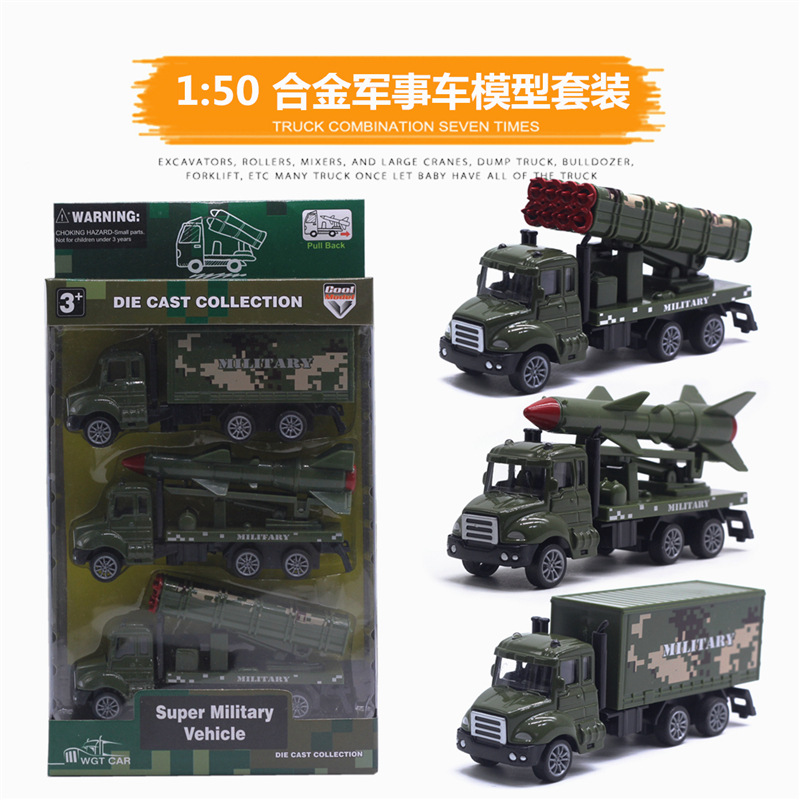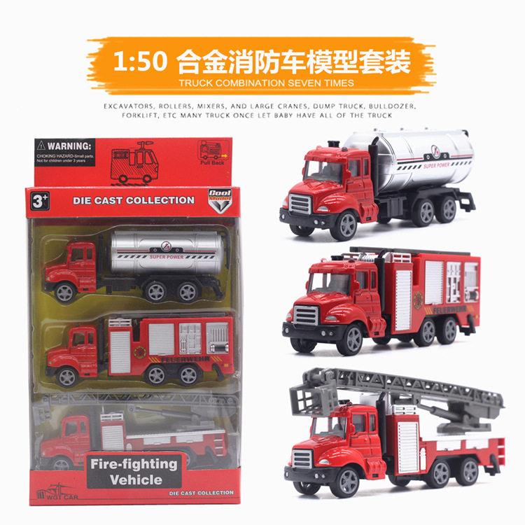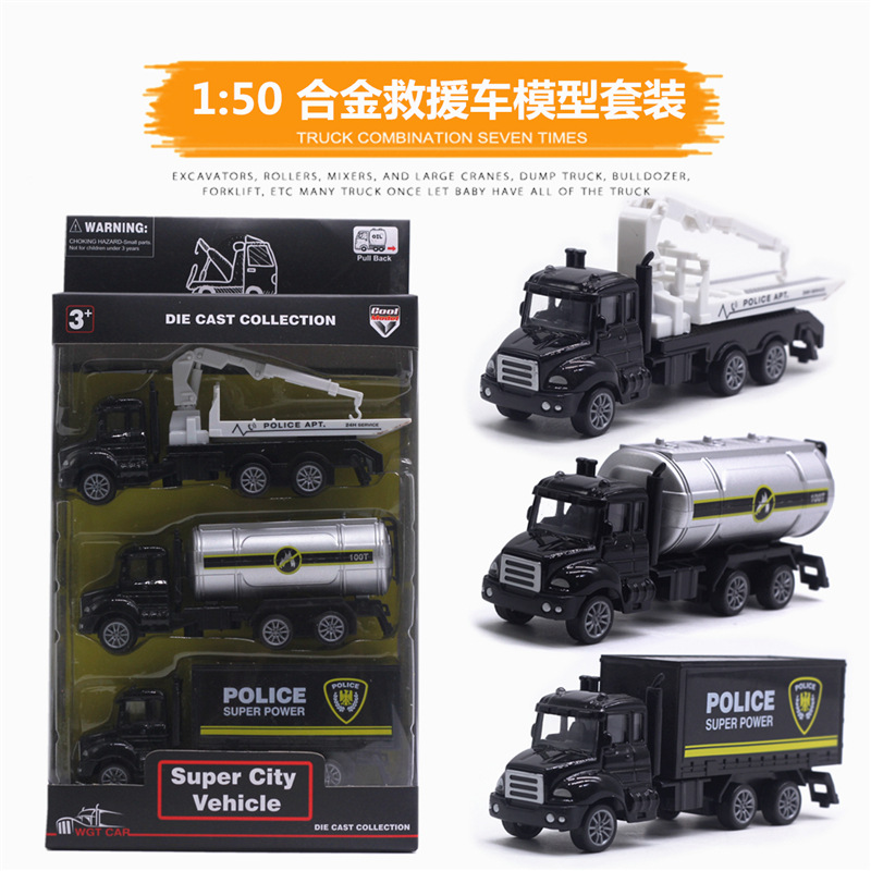 【商品名称】1:50合金回力车模三件套装(消防/工程/运输/军事/救援车)
