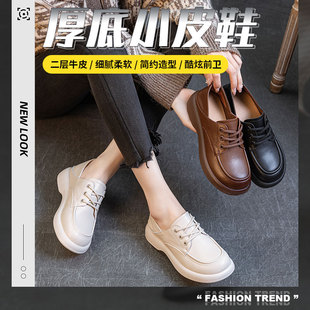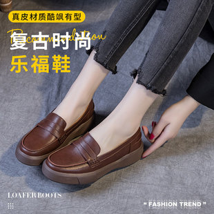 2026년 신상 레트로 로퍼, 천연 가죽 부드러운 두꺼운 밑창 신발, 브라운 봄 가죽 신발, 여성용 다용도 영국 스타일 신발스토어 가기