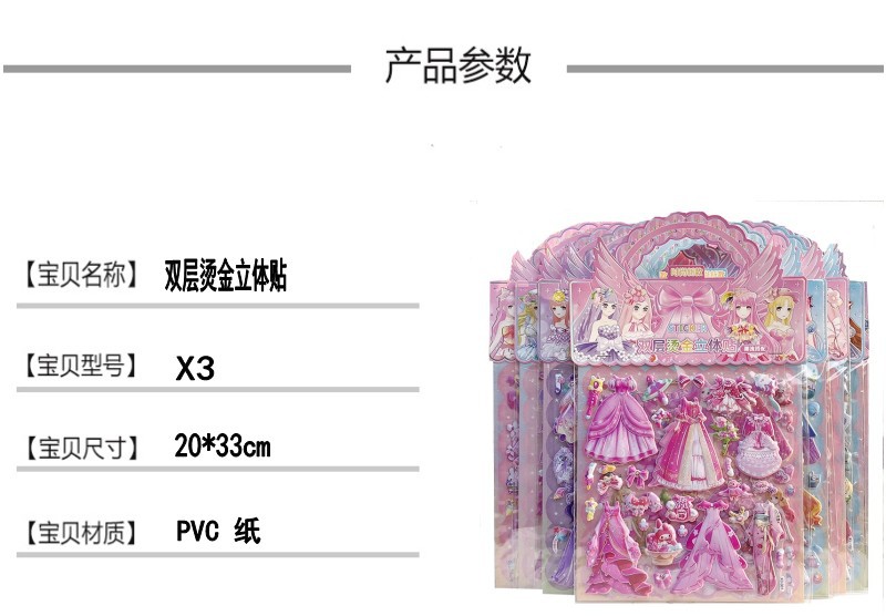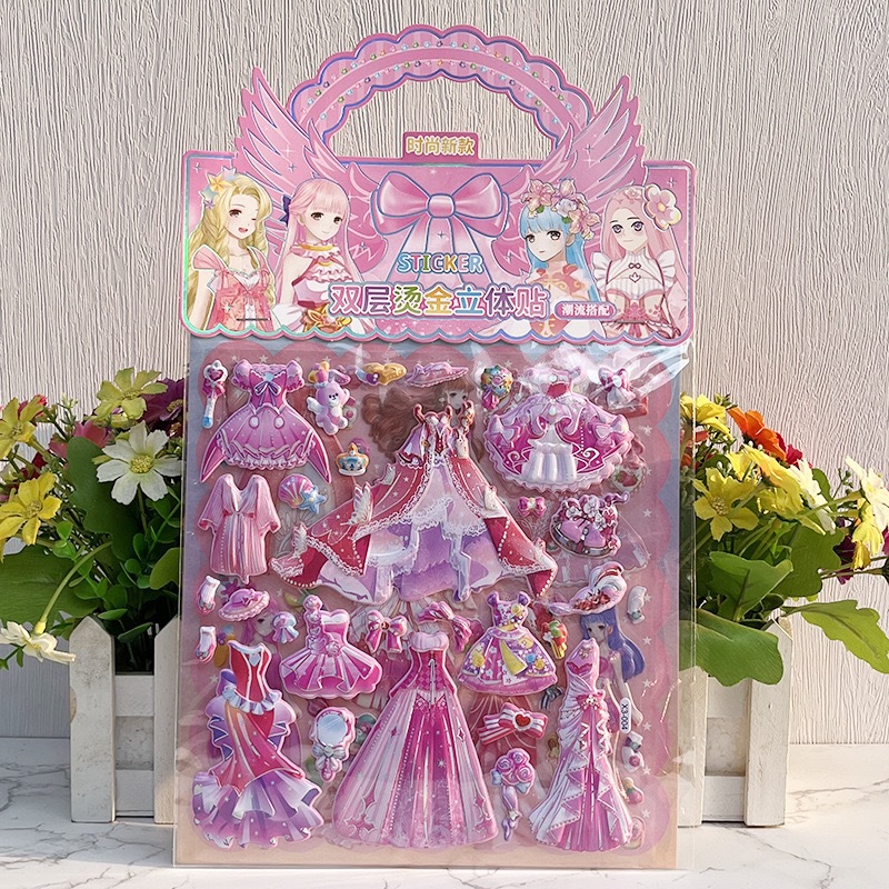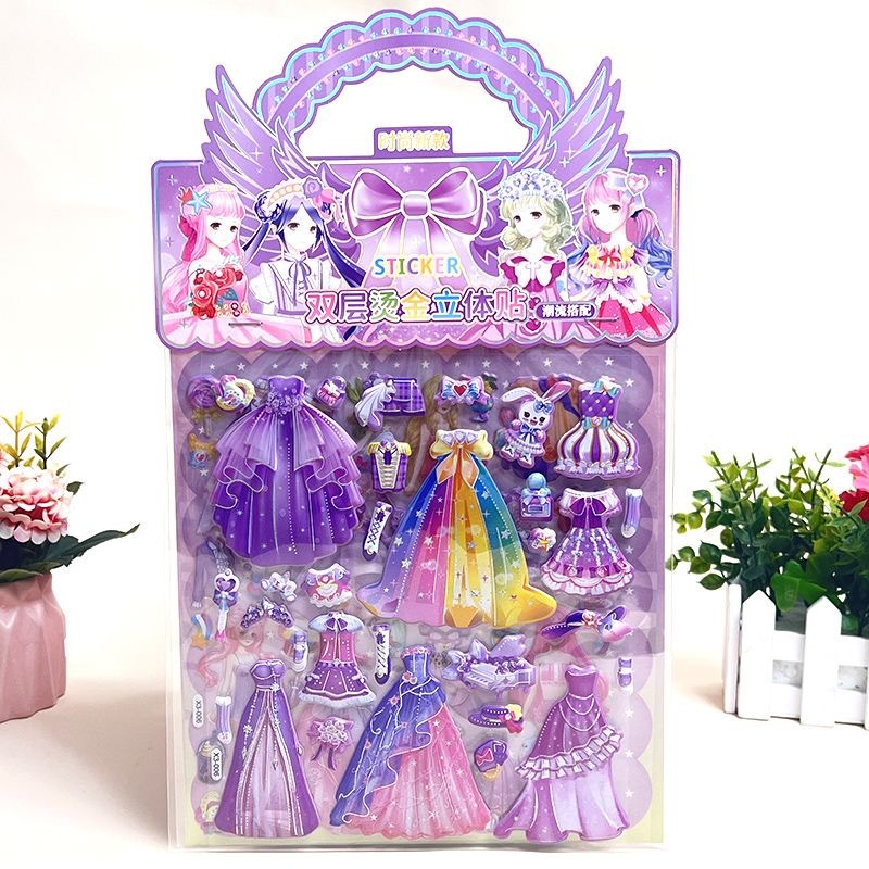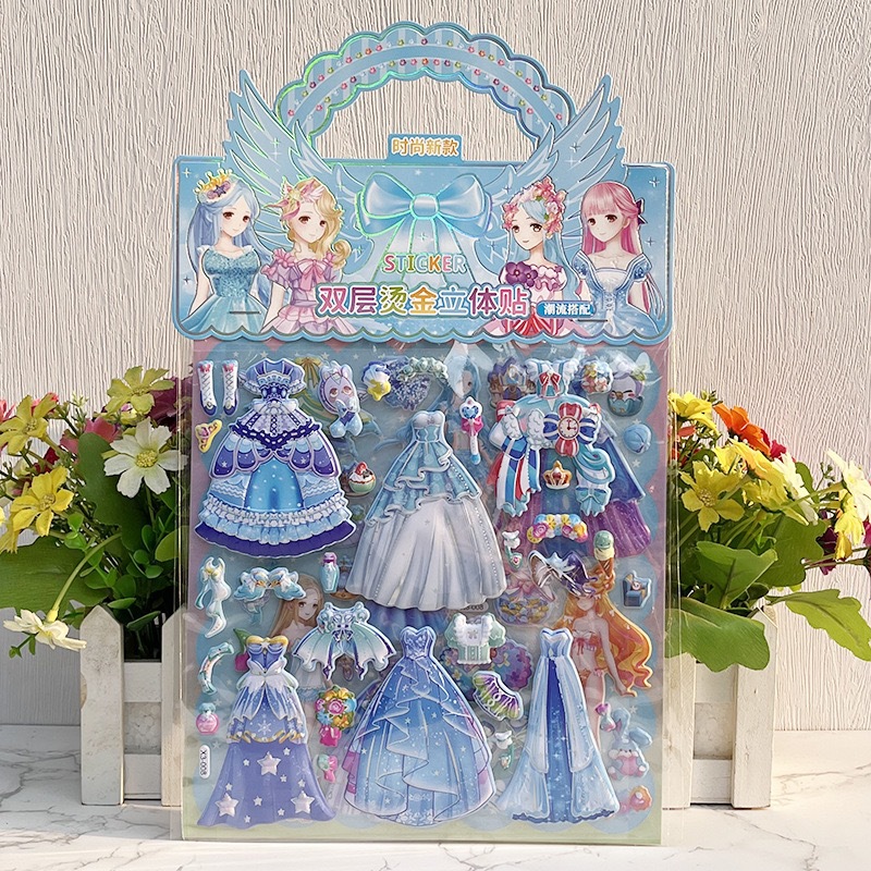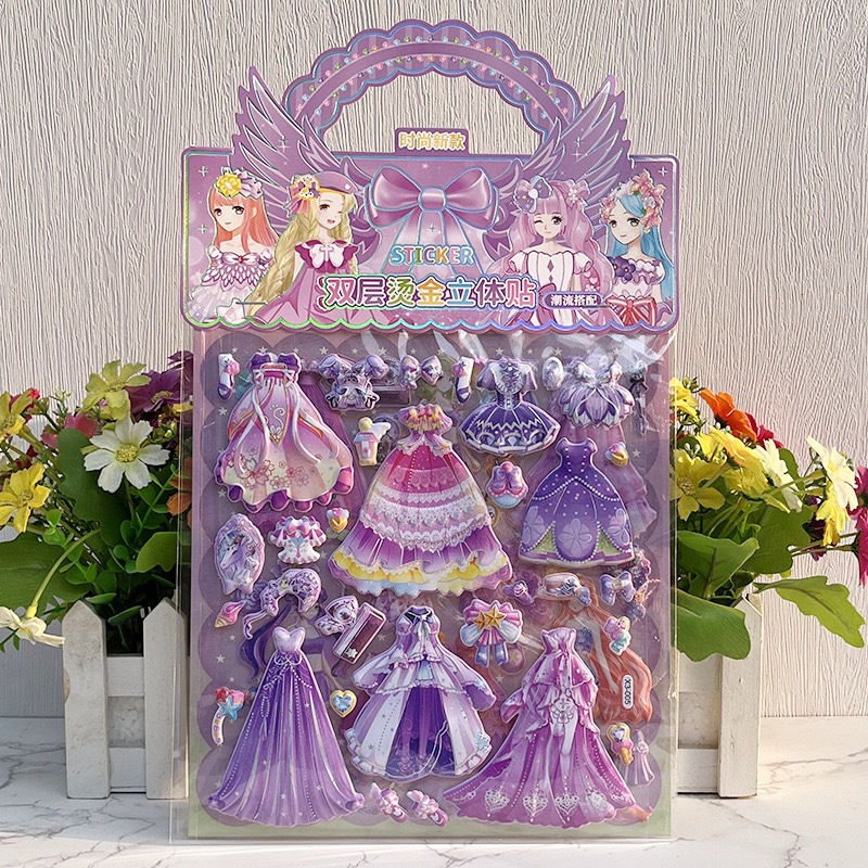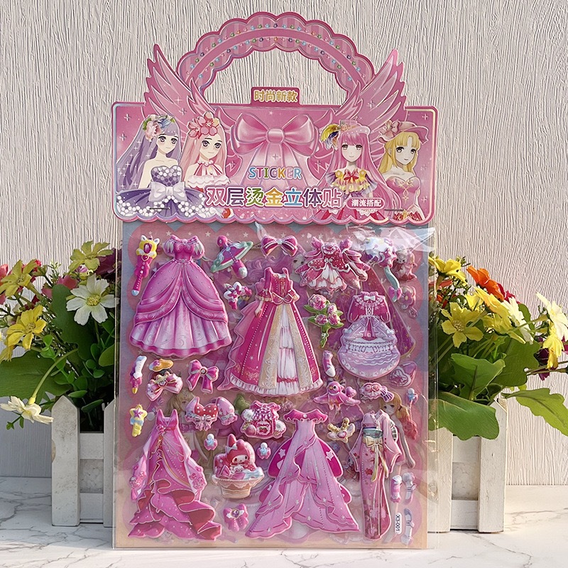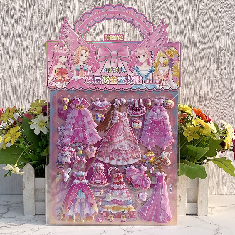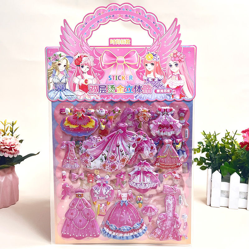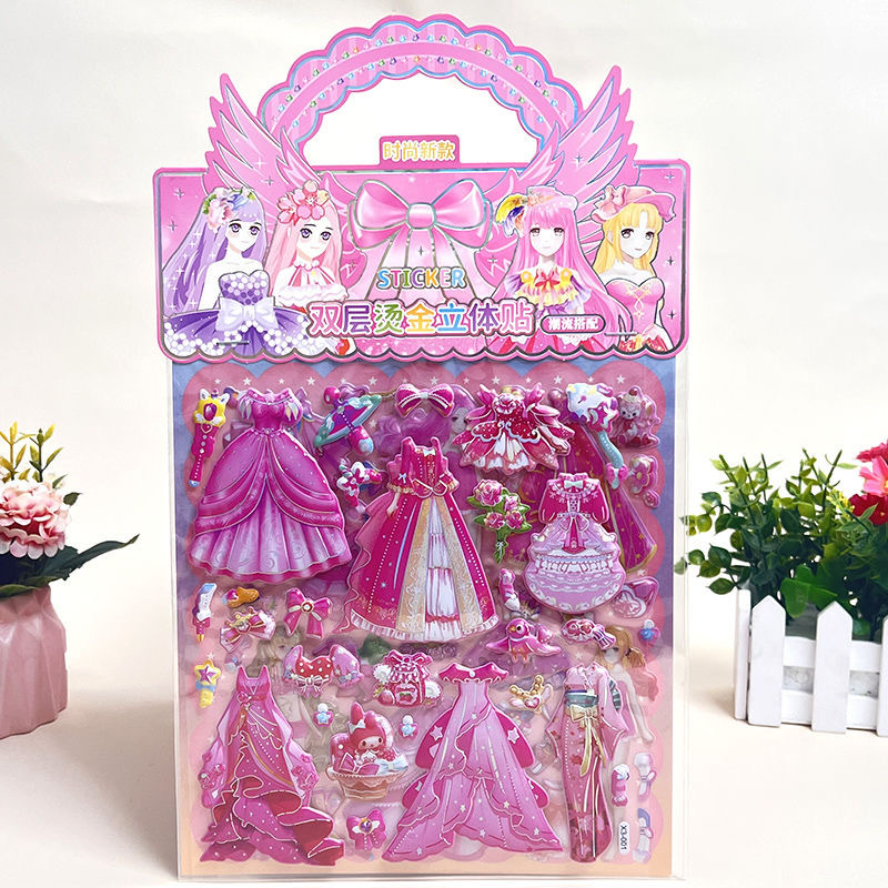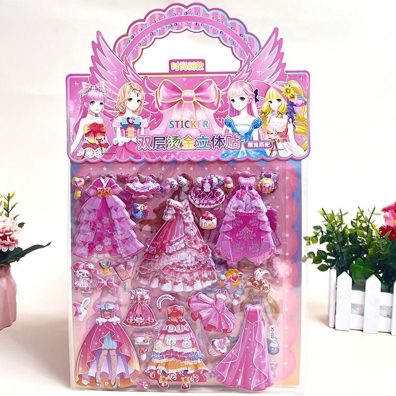 어린이 공주 드레스 업 스티커 도금 더블 레이어 3 차원 만화 보상 스티커 소녀 옷 거품 스티커 장난감스토어 가기