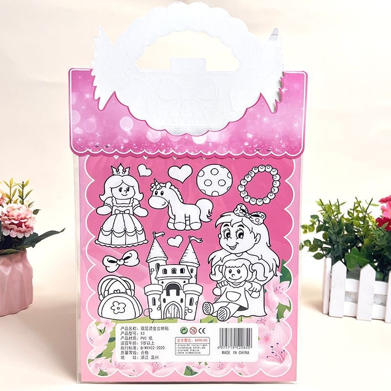 어린이 공주 드레스 업 스티커 도금 더블 레이어 3 차원 만화 보상 스티커 소녀 옷 거품 스티커 장난감