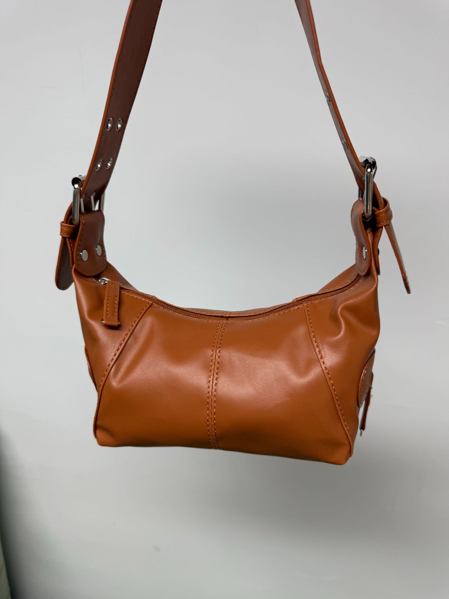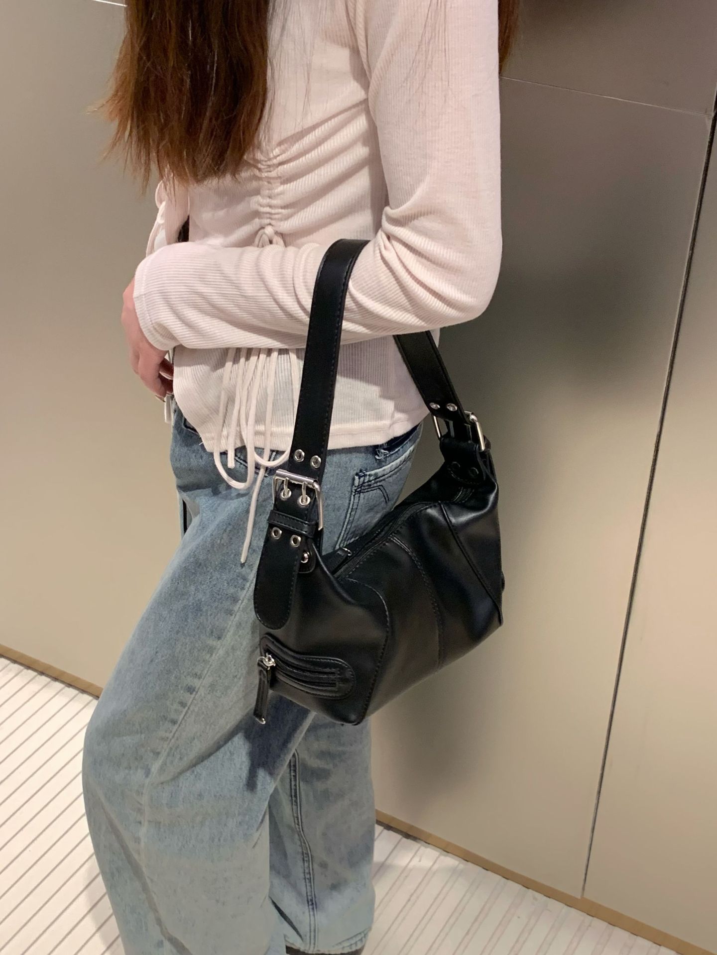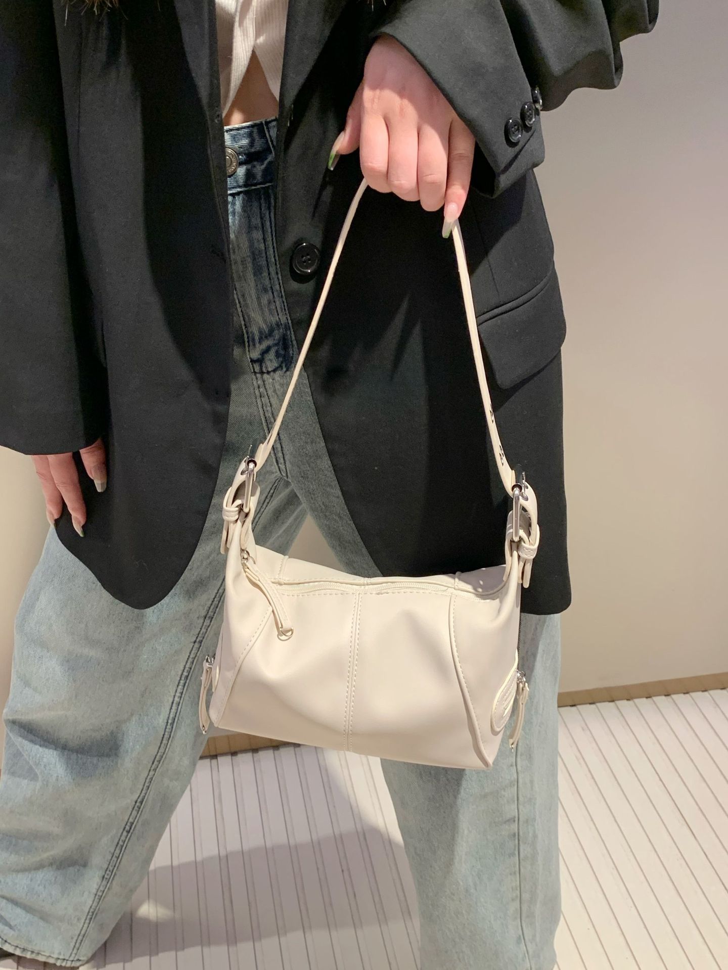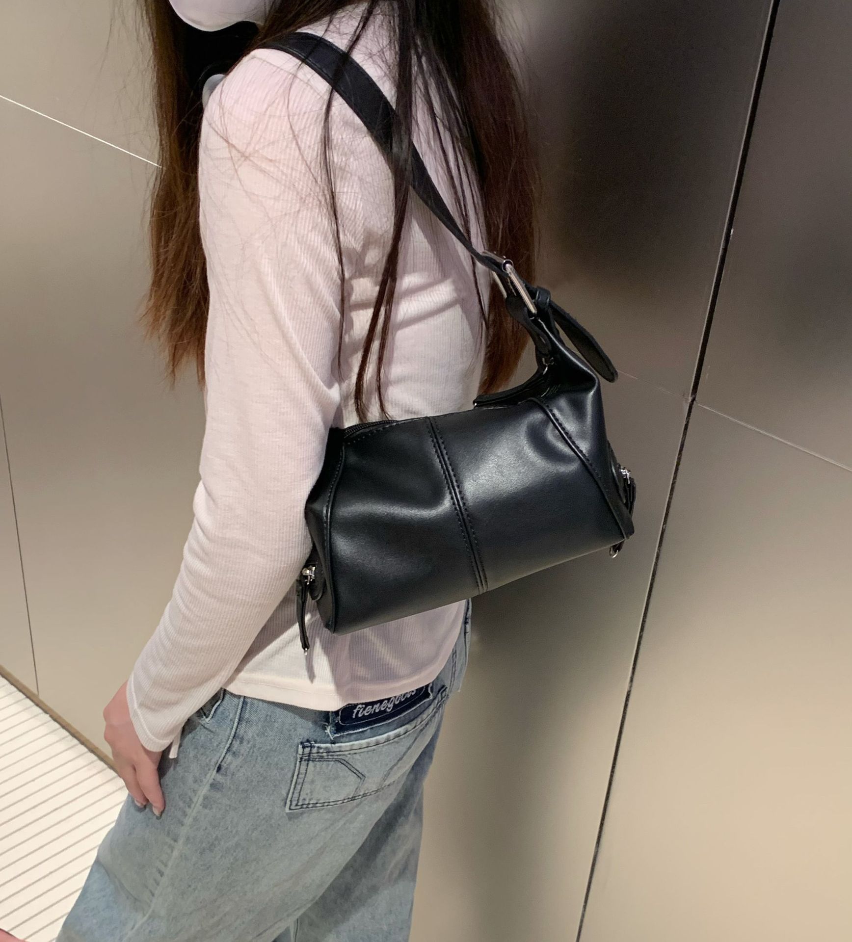 멋진 당김 소녀 틈새 디자인 가죽 지퍼 어깨 핸드 언더암 가방 레트로 유럽과 미국의 2025 새 가방스토어 가기