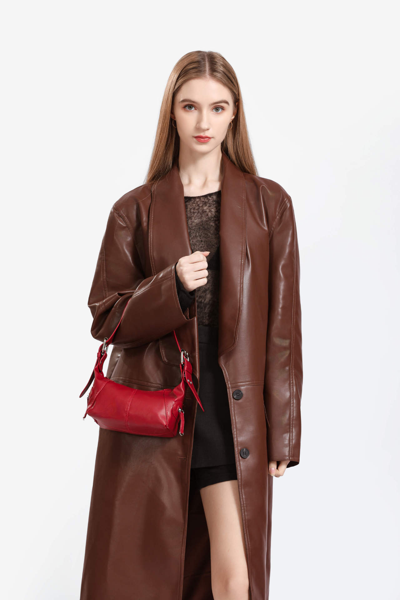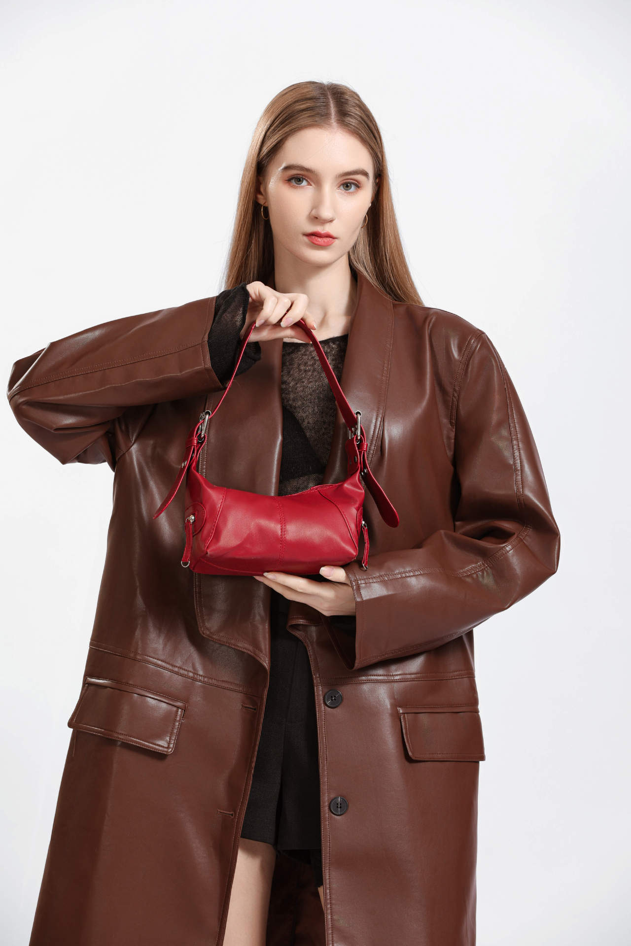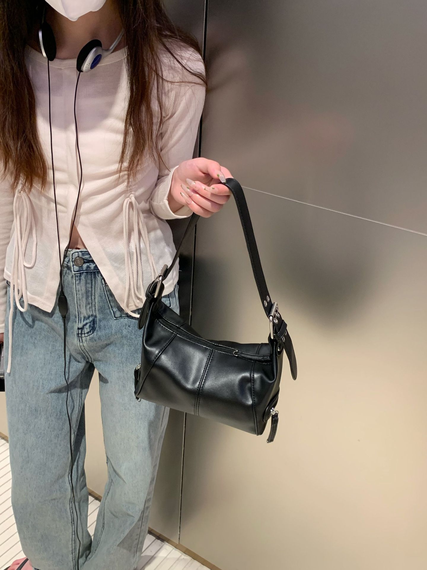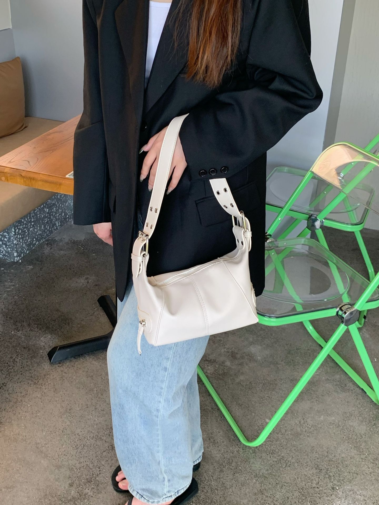 멋진 당김 소녀 틈새 디자인 가죽 지퍼 어깨 핸드 언더암 가방 레트로 유럽과 미국의 2025 새 가방스토어 가기