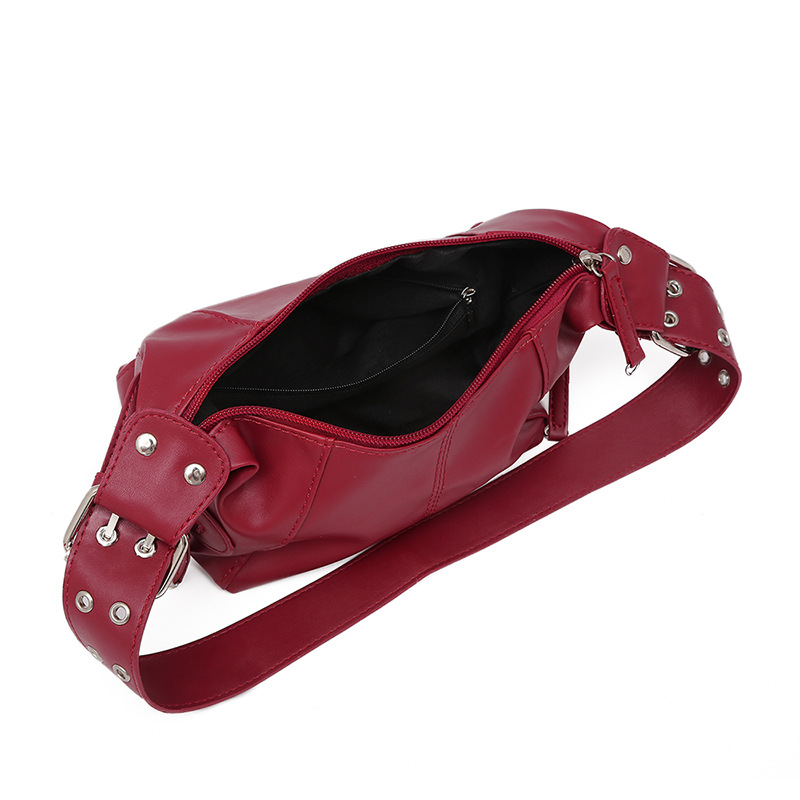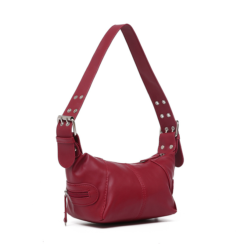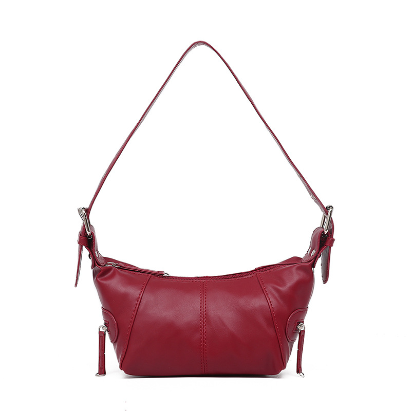 멋진 당김 소녀 틈새 디자인 가죽 지퍼 어깨 핸드 언더암 가방 레트로 유럽과 미국의 2025 새 가방