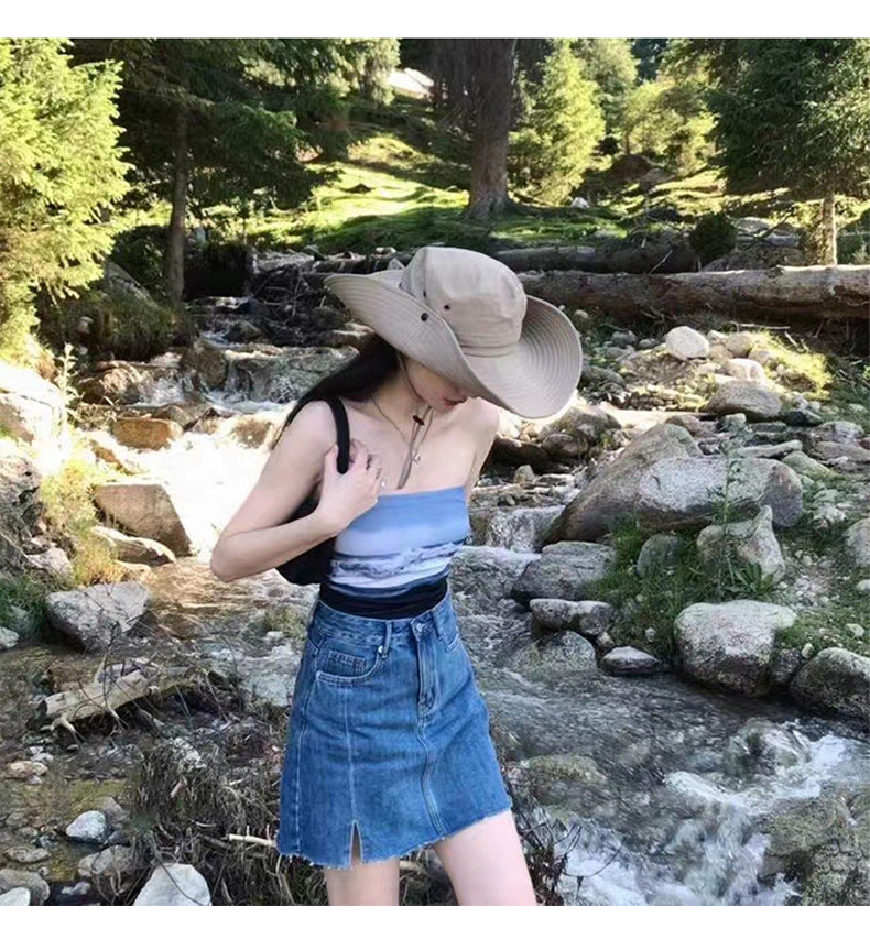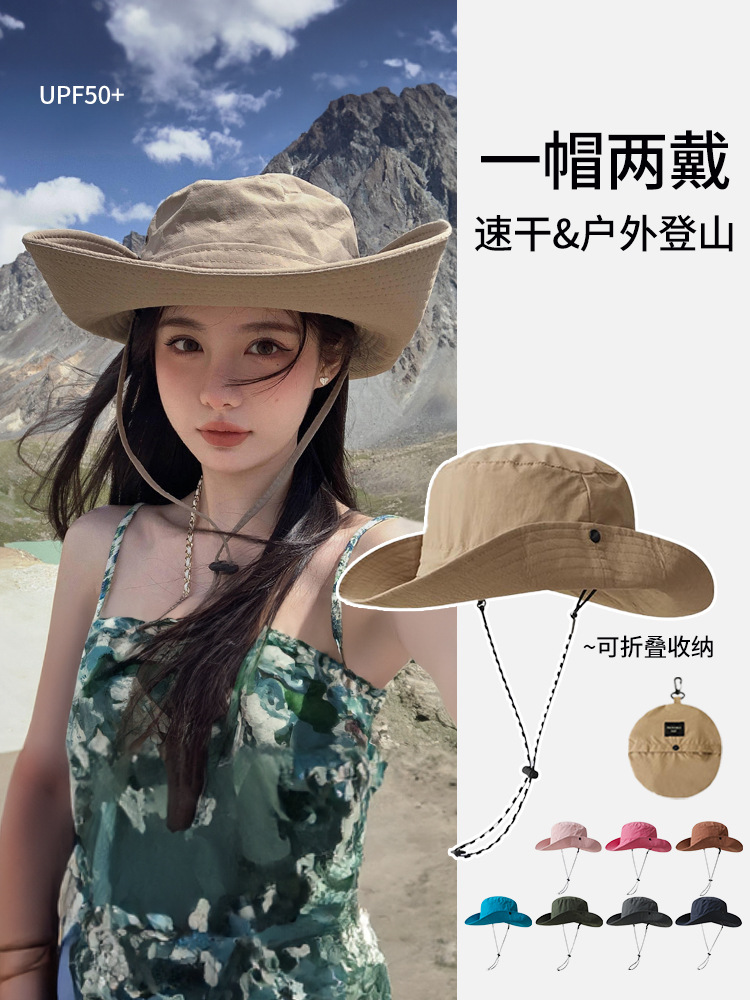 접이식 어부 모자 빠른 건조 방수 서양 데님 스타일 등산 모자 UV 방지 서부 사천 여행 분지 모자 남성과 여성