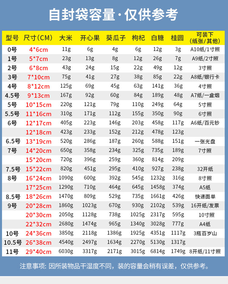 小号自封袋