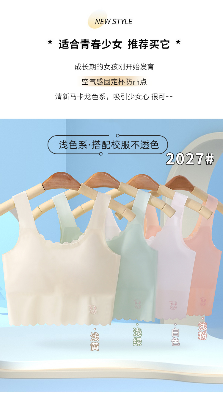 2027 편안한 소녀 브라 중학교 학생 초등학교 학생 스포츠 소녀 속옷 큰 어린이 소녀 원활한 조끼스토어 가기