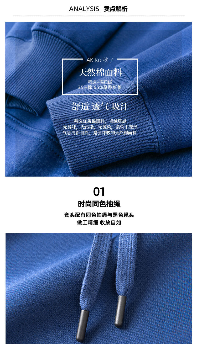 Kranin Blue 300g 가을, 겨울 벨벳 후드 티셔츠 솔리드 컬러 캐주얼 두꺼운 스포츠 후드 남성과 여성 쿨스토어 가기