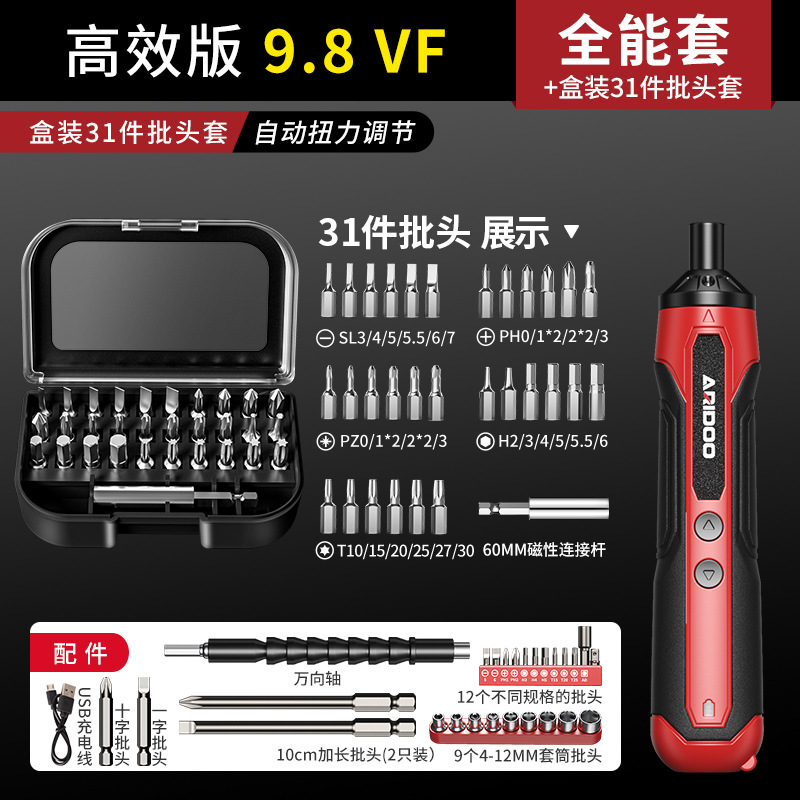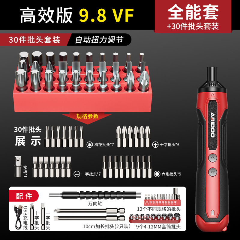 • 고효율 버전 9.8Vf [자동 토크 조정] 모든 라운드 세트 30 조각 배치 헤드 세트