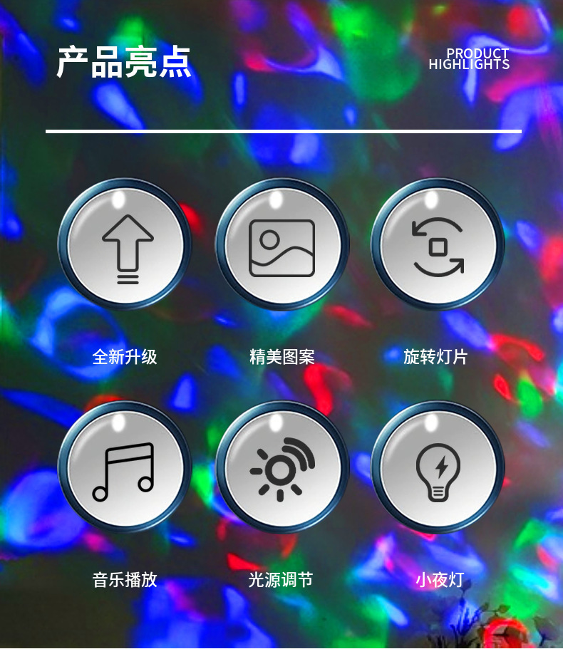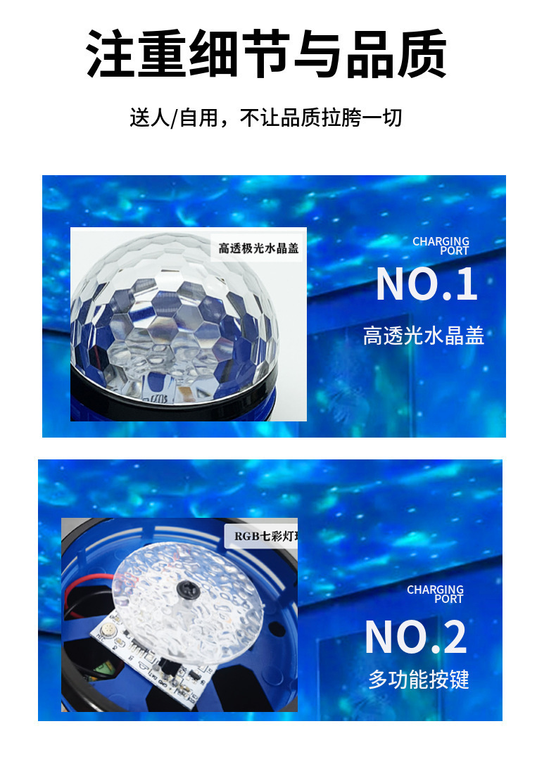국경 간 오로라 밤 빛 크리스탈 별이 빛나는 하늘 장식 조명 플러그인 자기 걷는 마술 공 분위기 빛 원격 제어 물 리플 프로젝션 램프