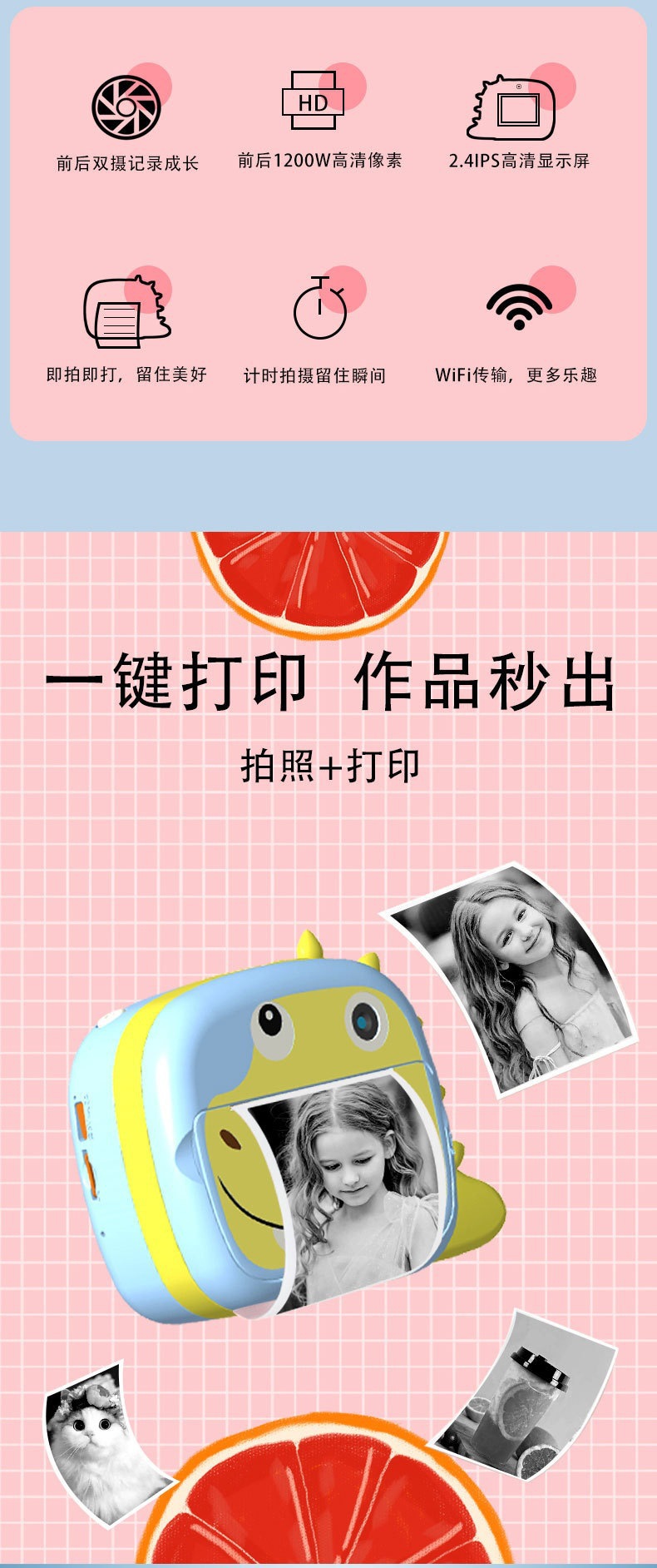 새로운 어린이 폴라로이드 고화질 디지털 카메라 전면 및 후면 듀얼 카메라 인쇄 Wi-Fi 학생 선물 카메라 장난감스토어 가기