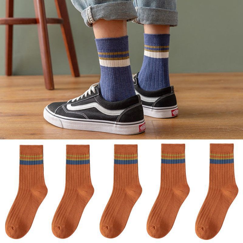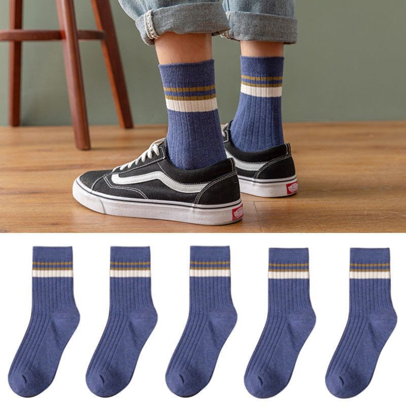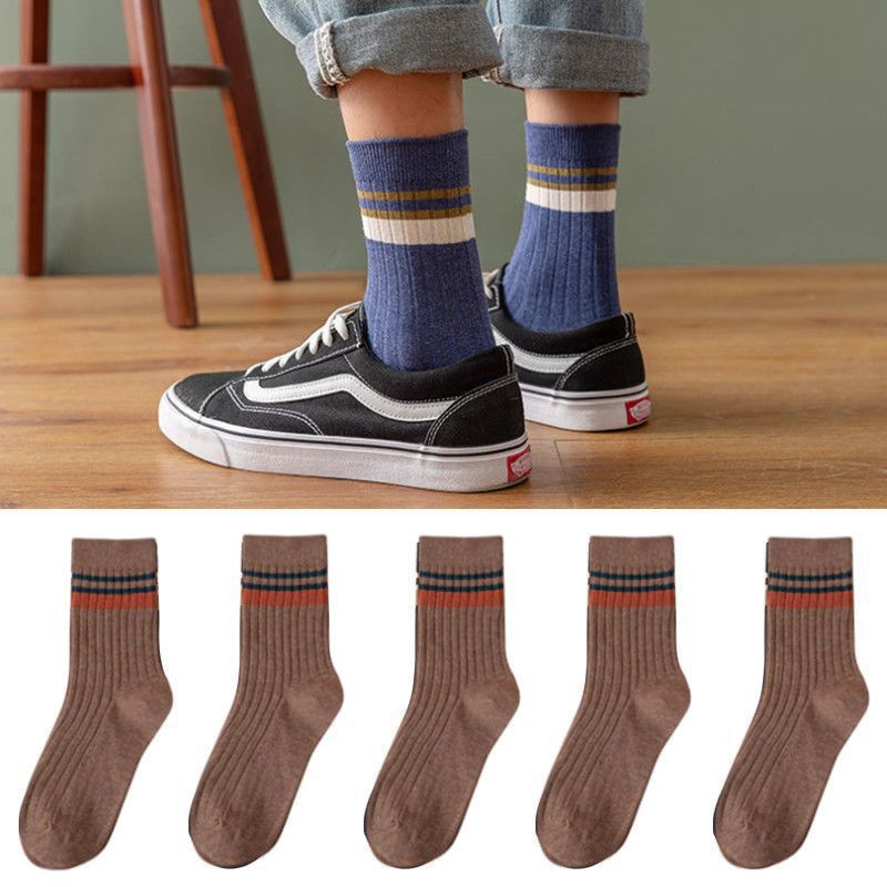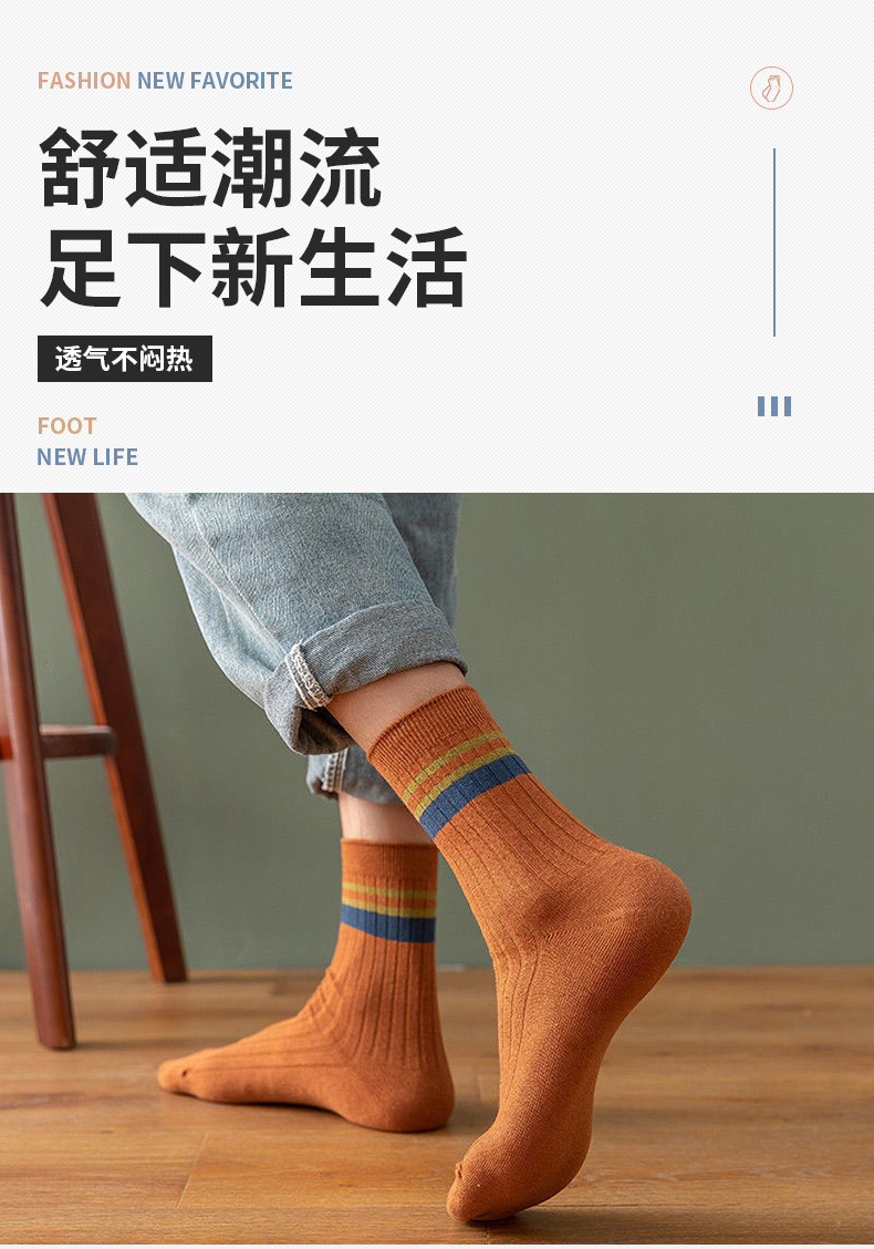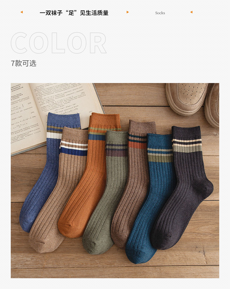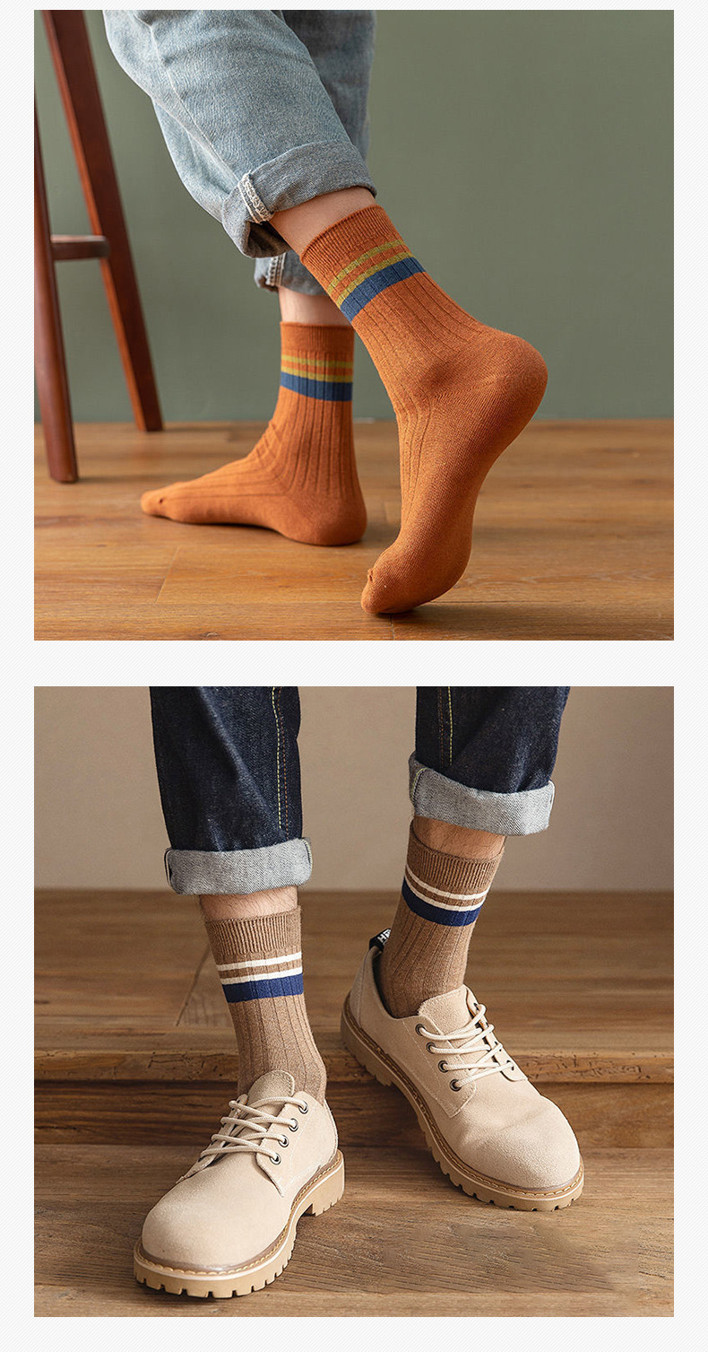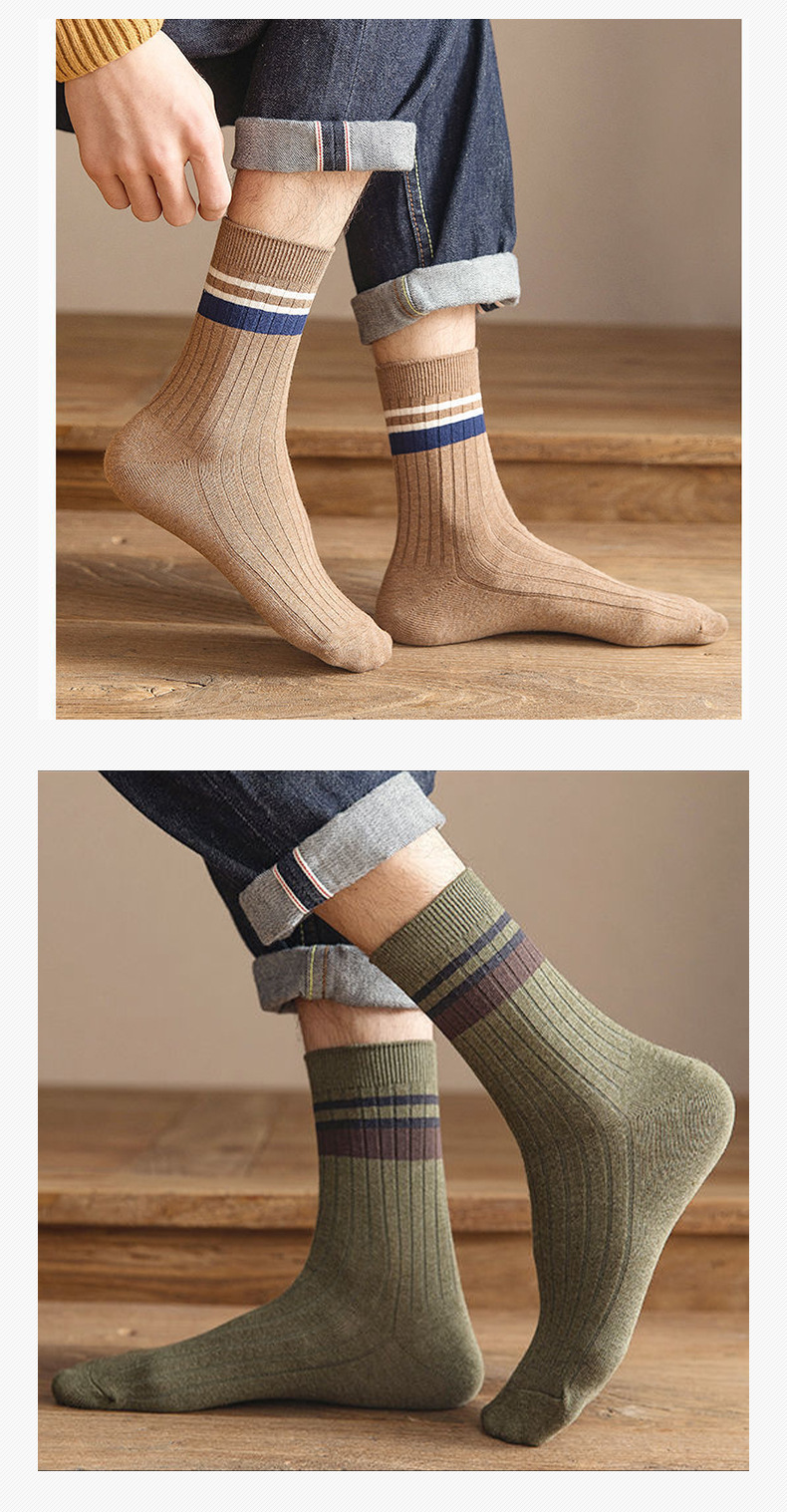 2024 새로운 남성 단색 중반 종아리 길이 양말 봄과 가을 남성 긴 양말 겨울 탈취제 땀 흡수성 스티칭 스트라이프 양말스토어 가기