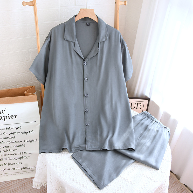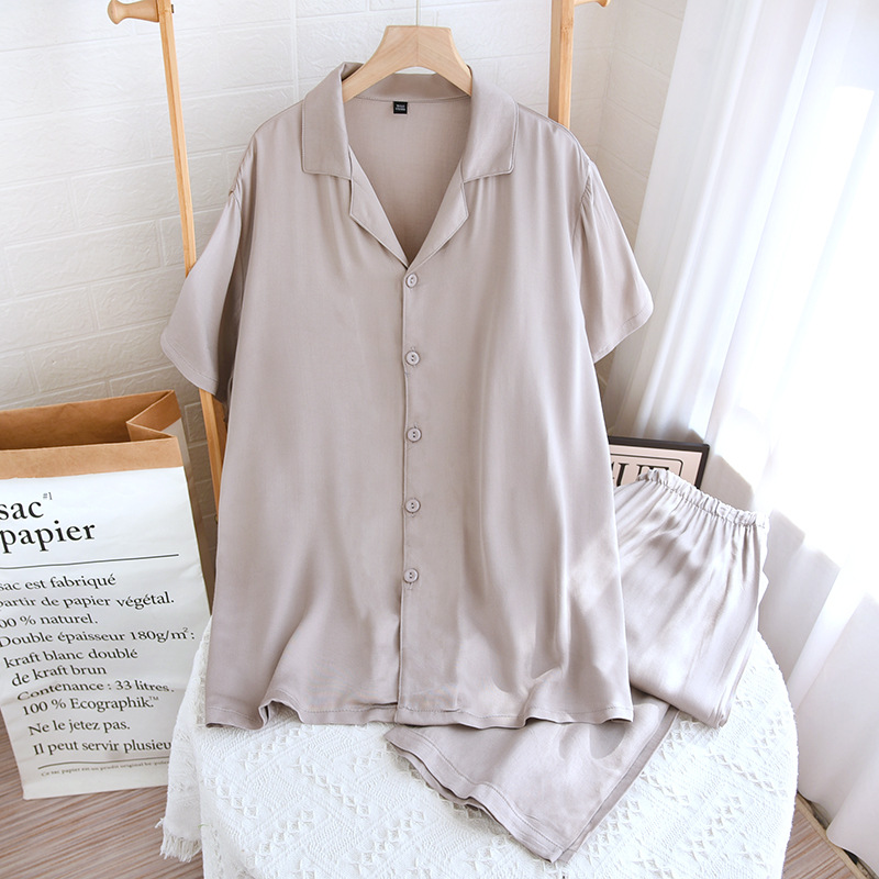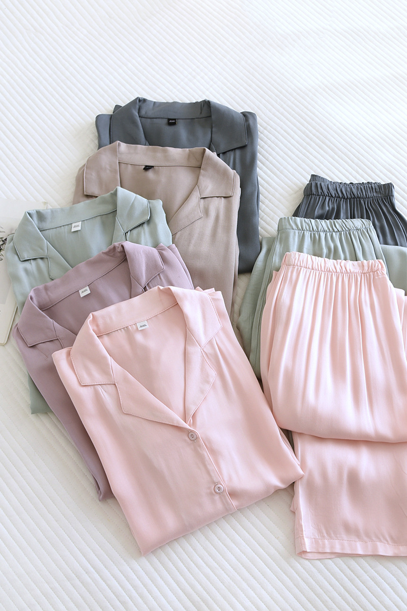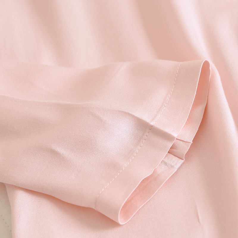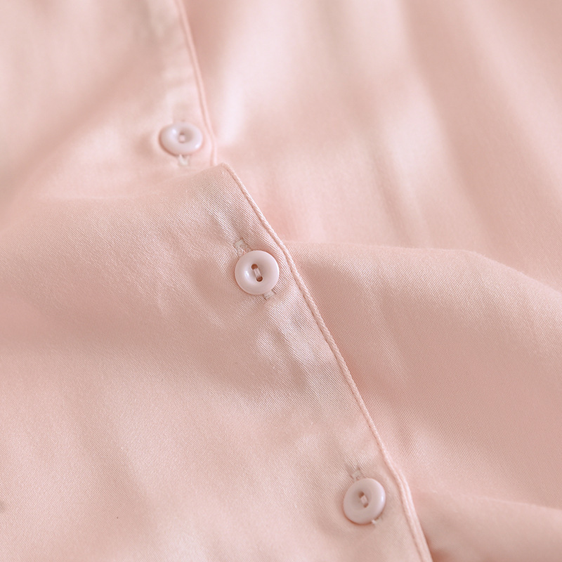 고품질의 새틴 코튼 실크 커플 파자마 여성의 봄과 여름 얇은 단색 홈 의류 남성용 긴팔 바지 세트