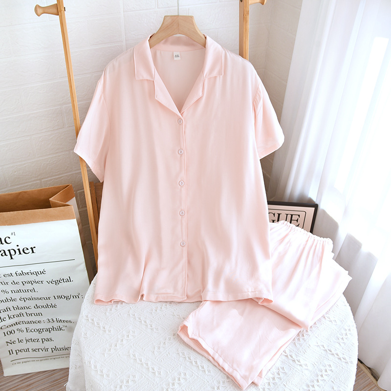 고품질의 새틴 코튼 실크 커플 파자마 여성의 봄과 여름 얇은 단색 홈 의류 남성용 긴팔 바지 세트스토어 가기