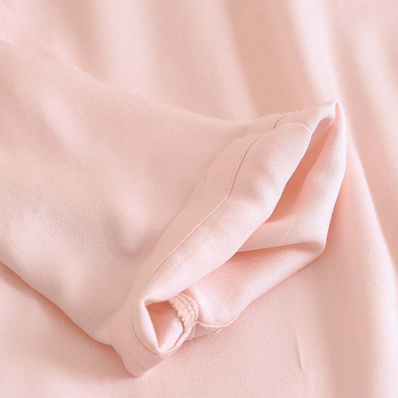 • 새틴 단색 여성의 짧은 긴 세트-오렌지 파우더