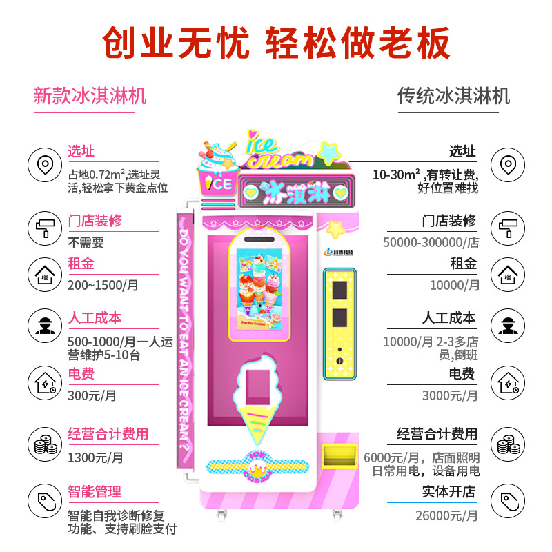 완전 자동 아이스크림 기계 상업 소프트 아이스크림 작은 자동 판매 아이스크림 기계 보조 산업 빛 혁신 돈 버는 프로젝트스토어 가기