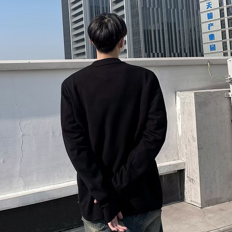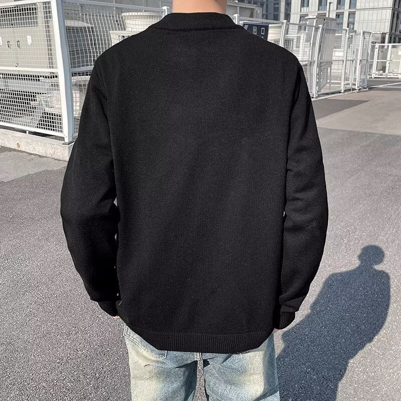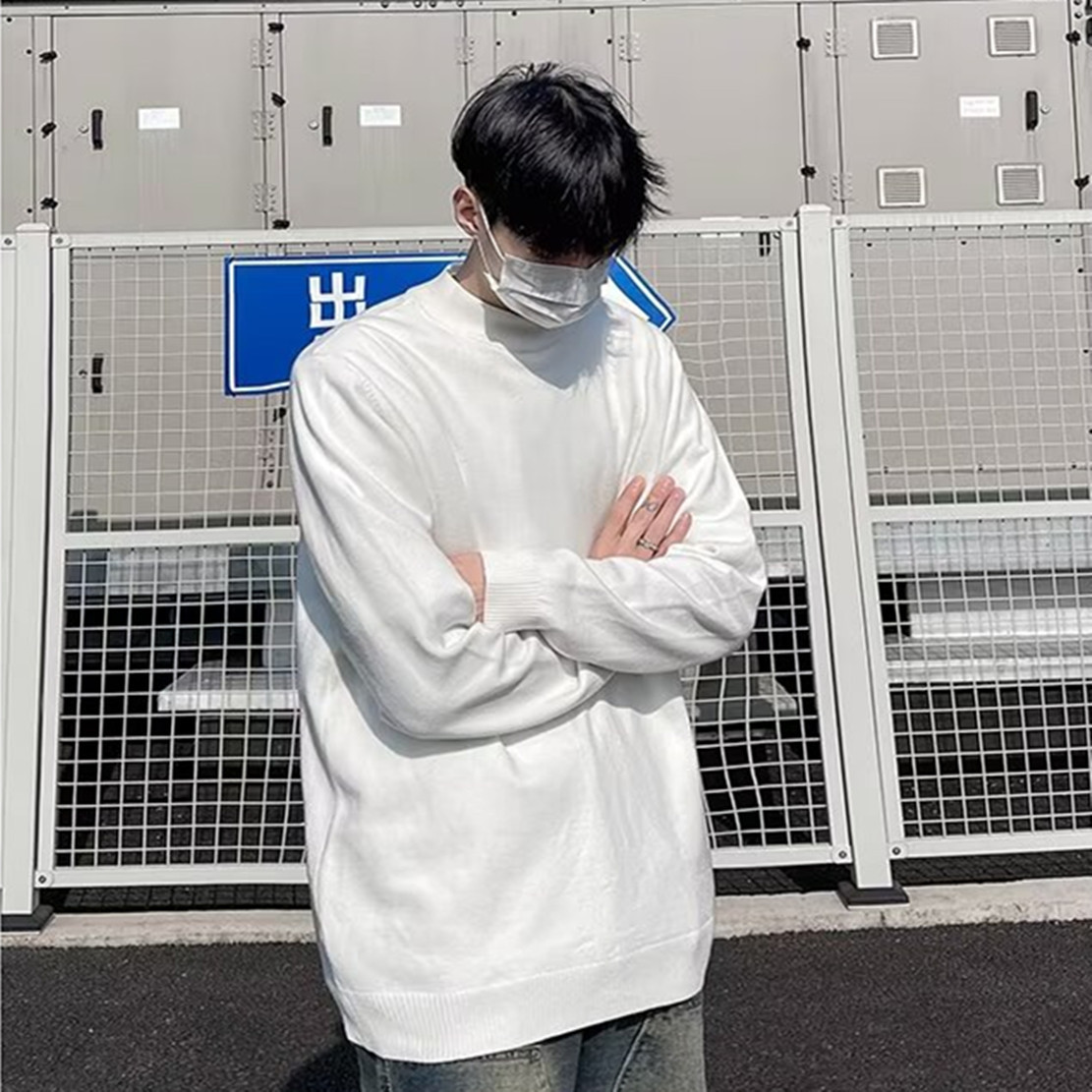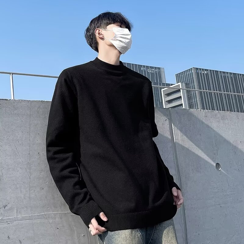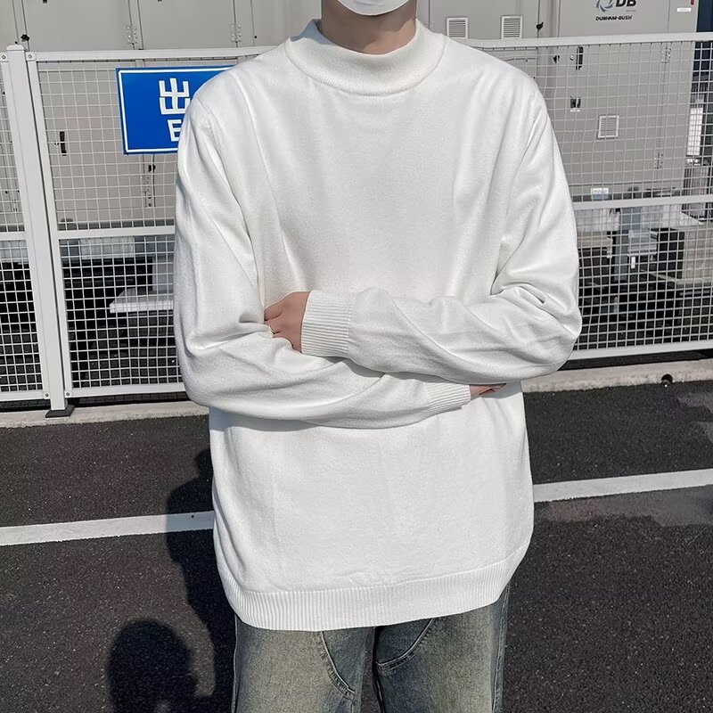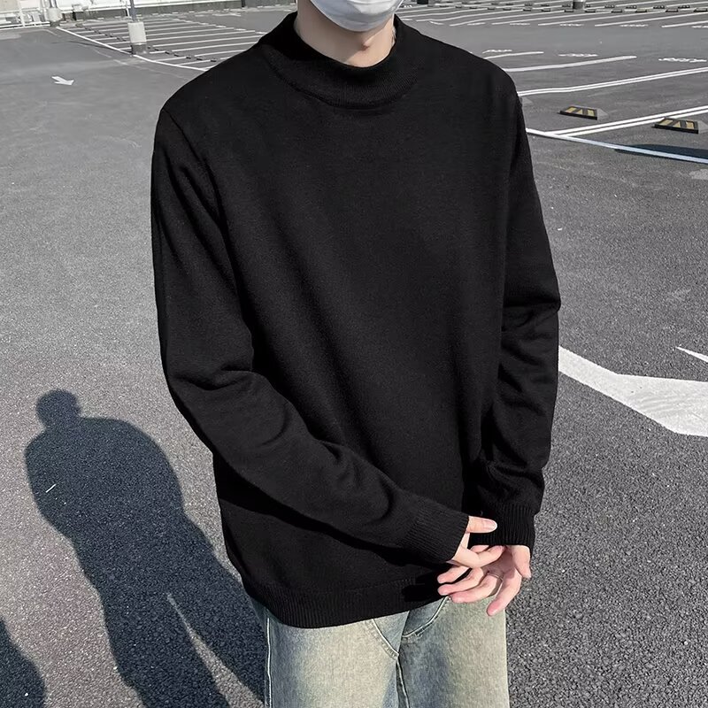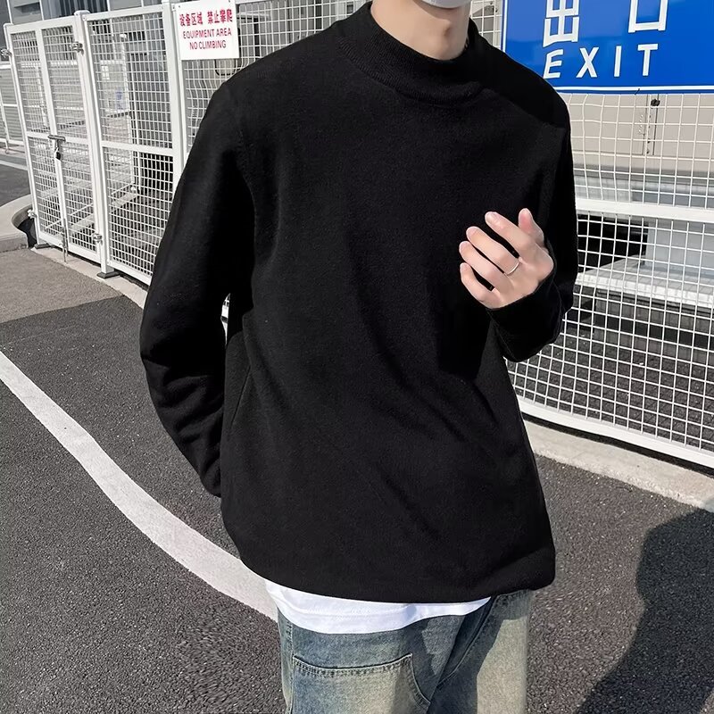 가을과 겨울 2024 반 터틀넥 스웨터 남성 한국 스타일의 느슨한 캐주얼 단색 미드 칼라 니트 바닥 셔츠 긴 소매스토어 가기