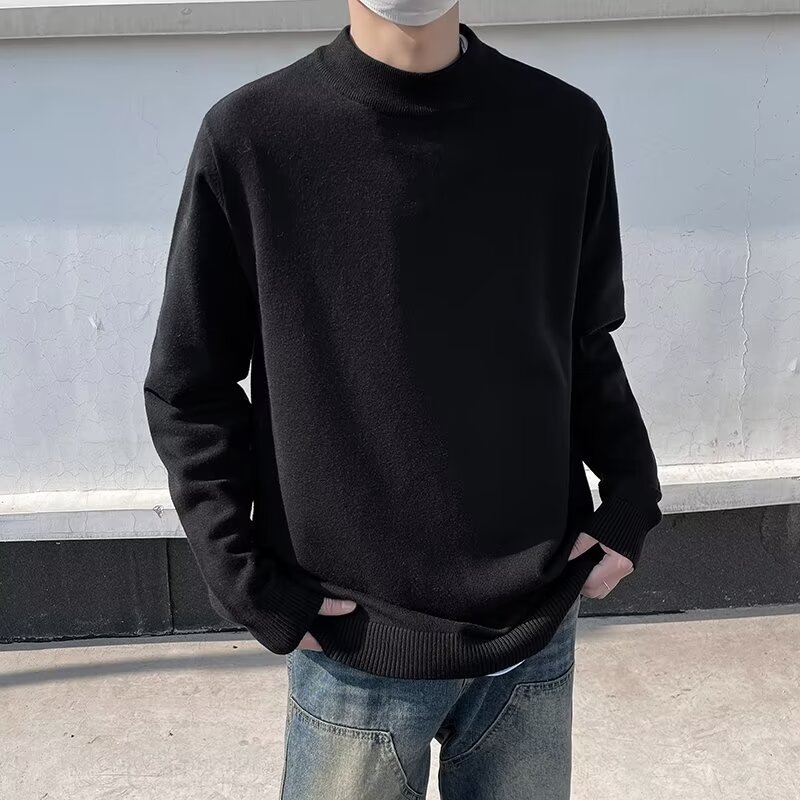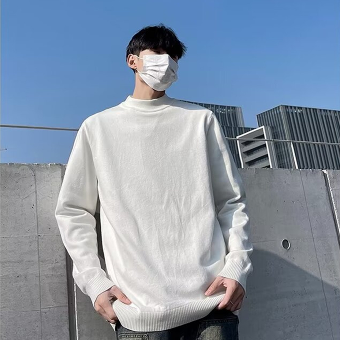 가을과 겨울 2024 반 터틀넥 스웨터 남성 한국 스타일의 느슨한 캐주얼 단색 미드 칼라 니트 바닥 셔츠 긴 소매