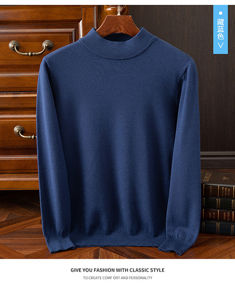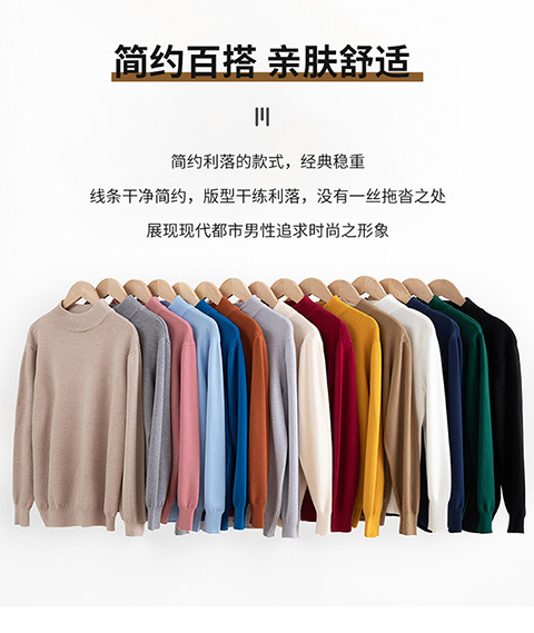 남성 풀오버 바닥 셔츠 캐주얼 비즈니스 스웨터 가을과 겨울 반 터틀넥 느슨한 패션 단색 긴 소매 스웨터