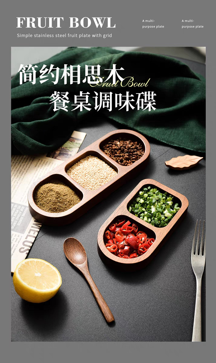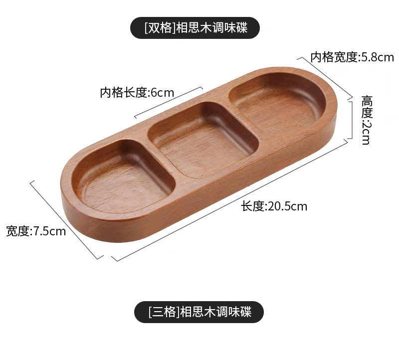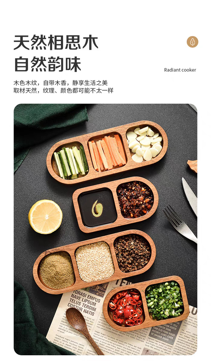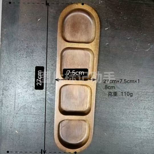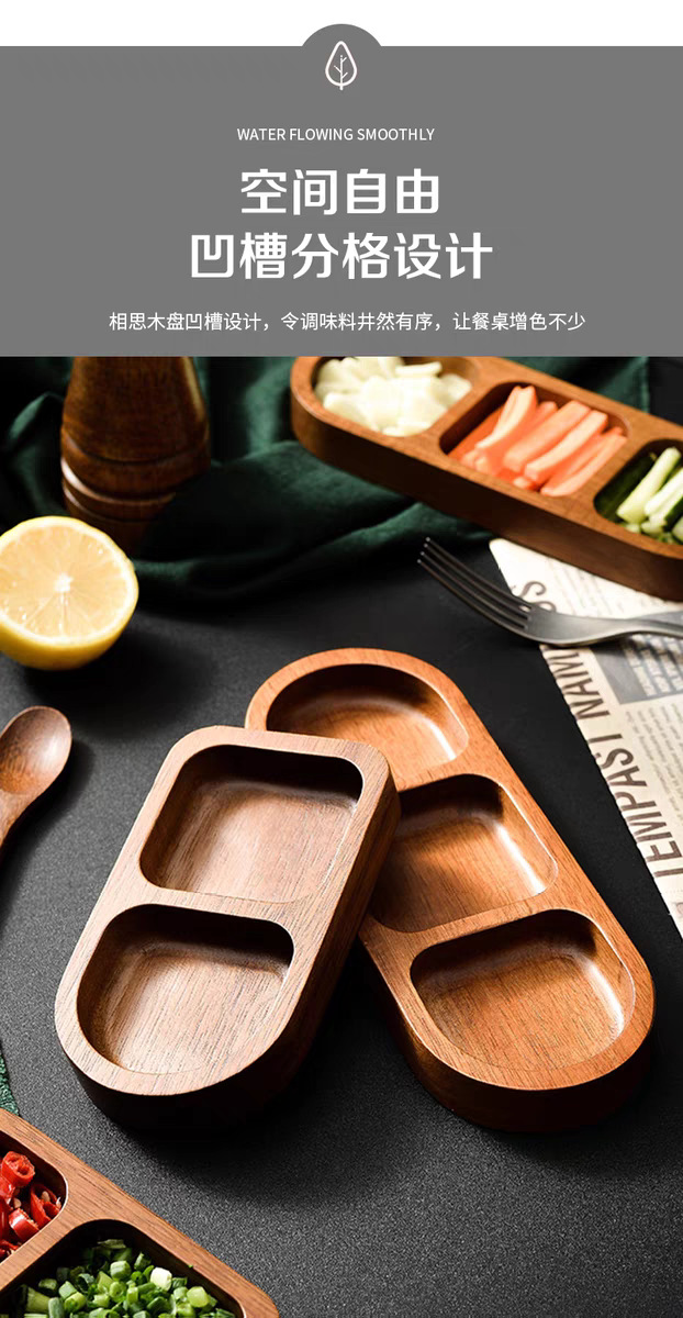 아카시아 나무 접시, 그리드 조미료 요리, 가정용 스낵 요리, 바베큐 3 그리드 소스 요리, 단단한 나무 접시스토어 가기