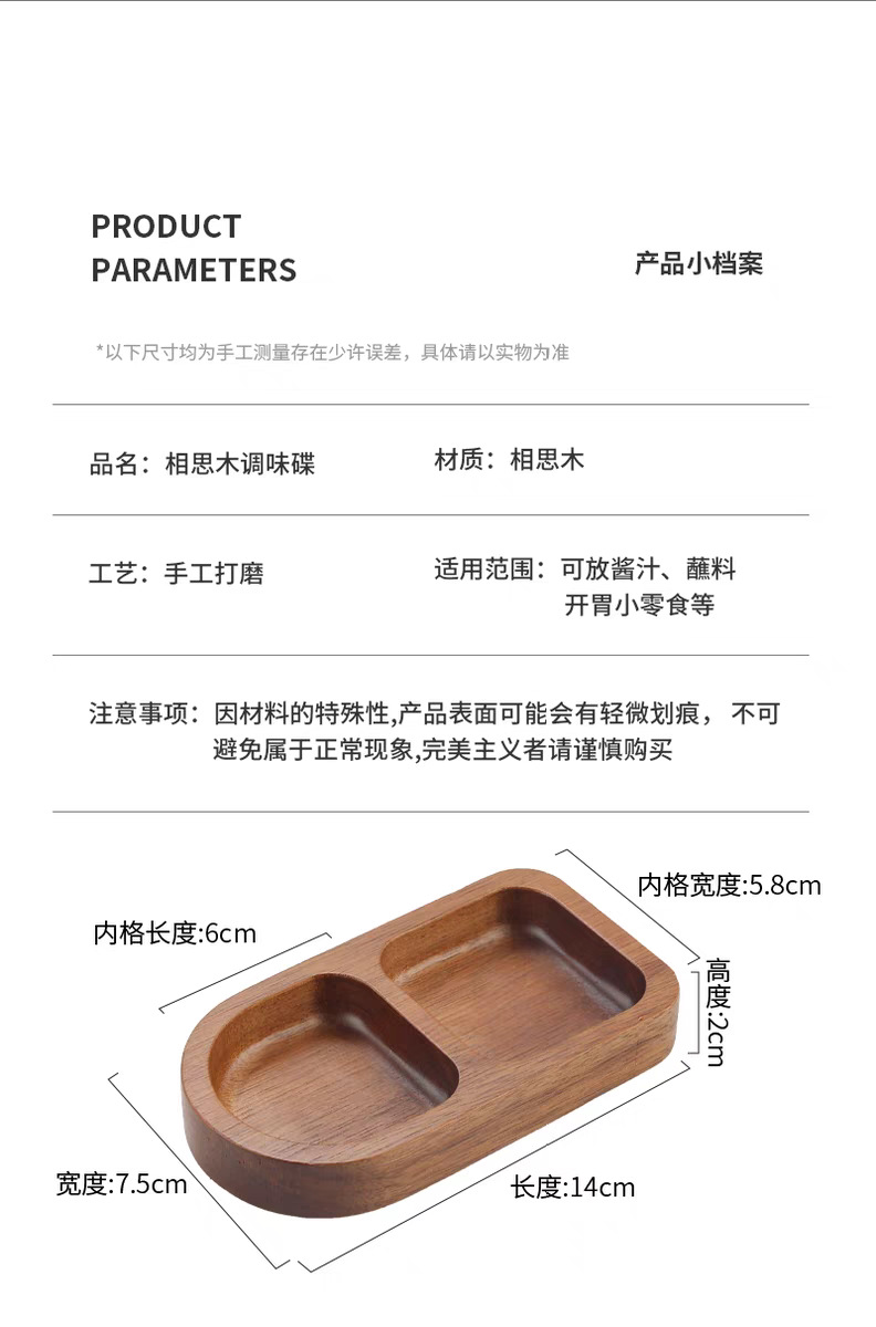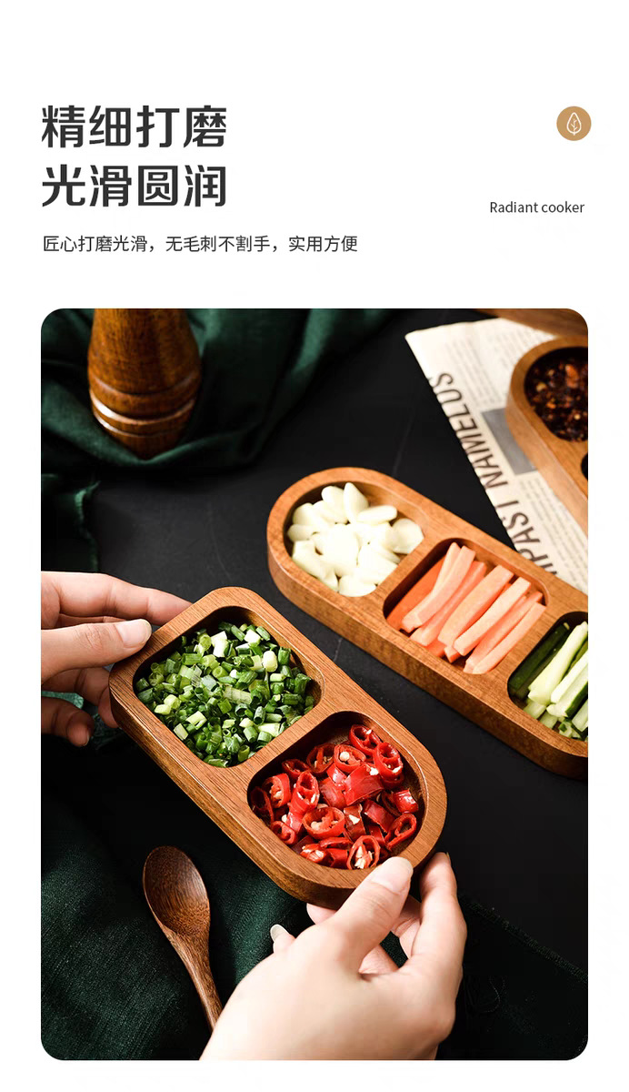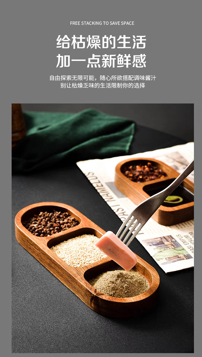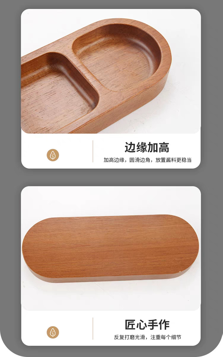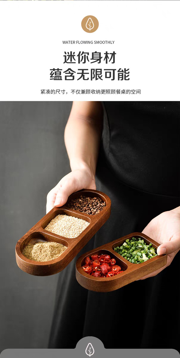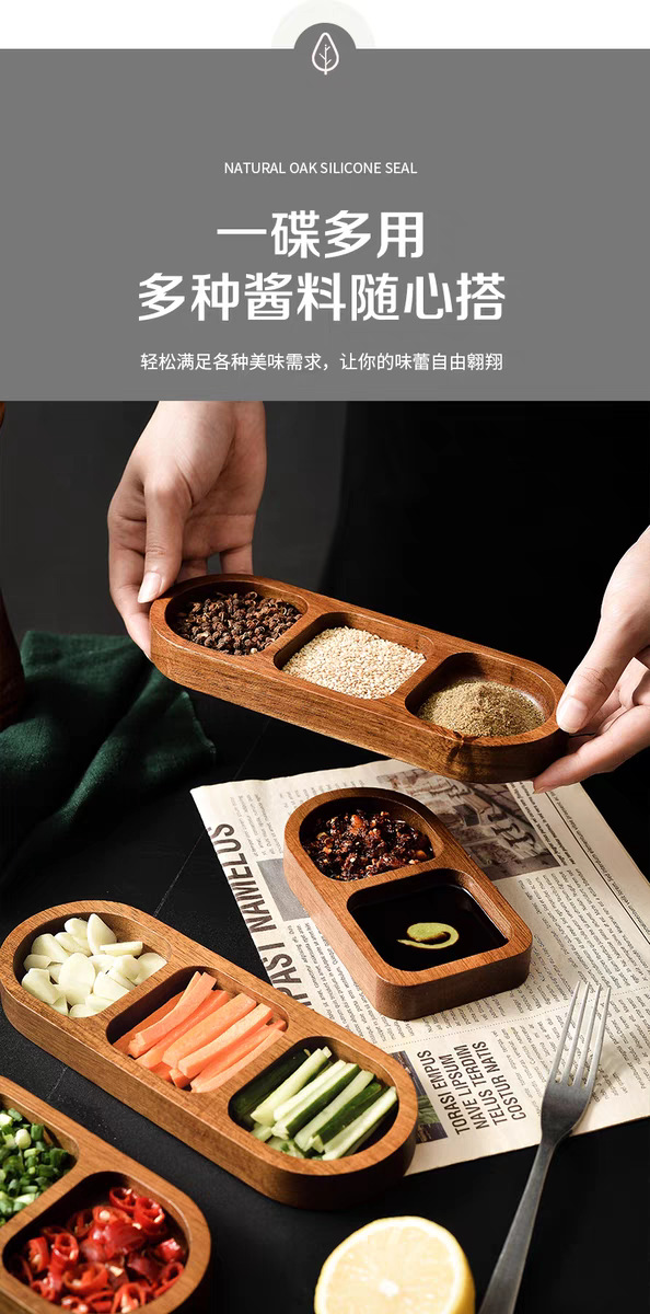 아카시아 나무 접시, 그리드 조미료 요리, 가정용 스낵 요리, 바베큐 3 그리드 소스 요리, 단단한 나무 접시