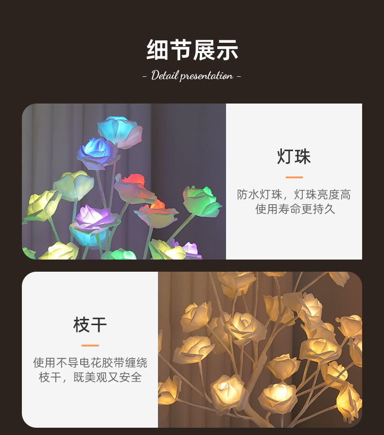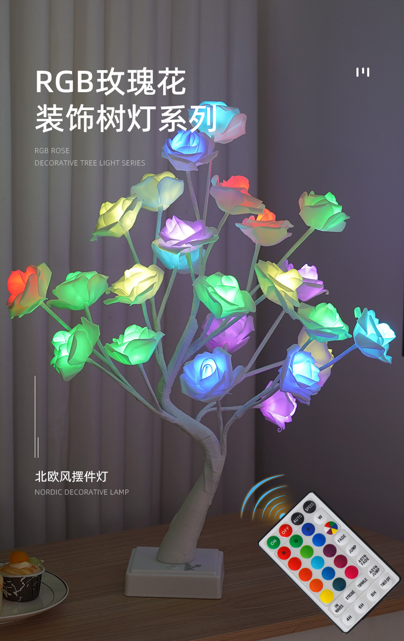 RGB 장미 나무 빛 LED 발렌타인 데이 방 장식 빛 실내 및 야외 파티 분위기 장면 레이아웃 빛나는 나무스토어 가기