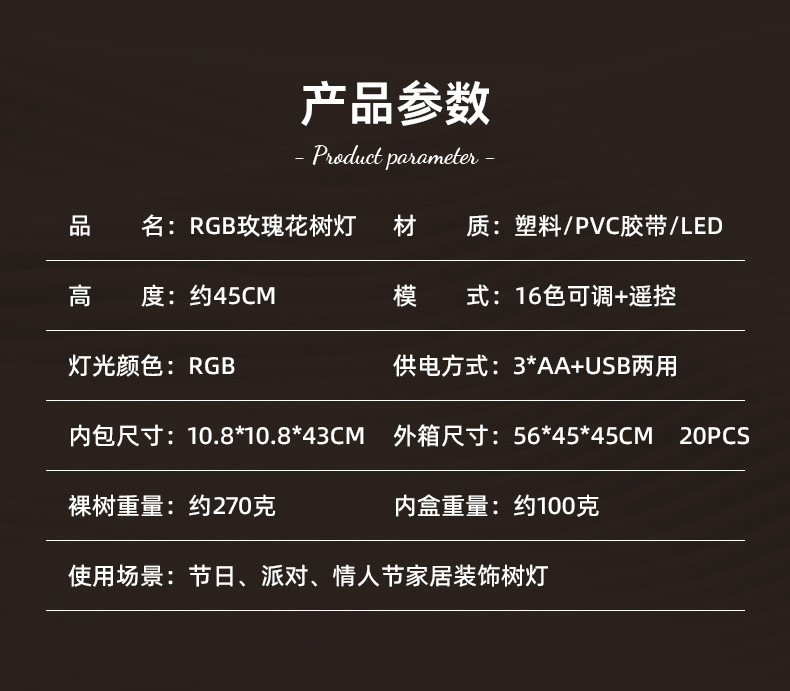 RGB 장미 나무 빛 LED 발렌타인 데이 방 장식 빛 실내 및 야외 파티 분위기 장면 레이아웃 빛나는 나무