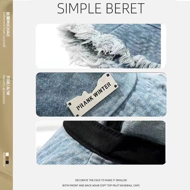 2024 새로운 패션 패션 데님 어부 모자 세탁 오래 된 버킷 캡 페이스 쇼 작은 한 펑 큰 모자스토어 가기