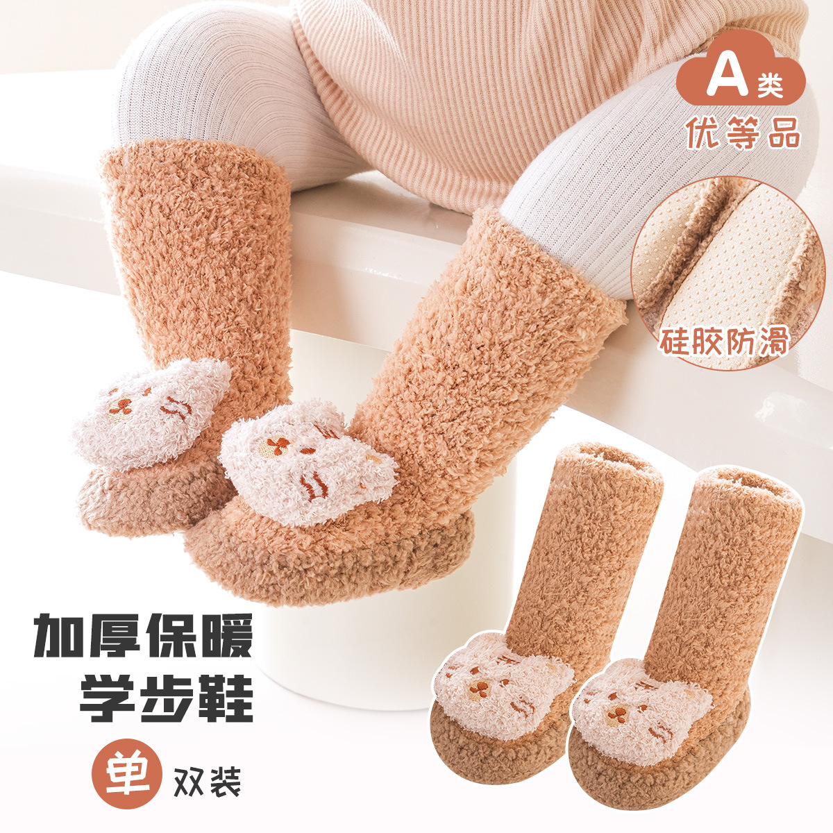 아기 양말, 가을 겨울 두꺼운 방한 양말, 실리콘 미끄럼 방지 걸음마 신발 양말, 겨울 두꺼운 아기 바닥 양말스토어 가기