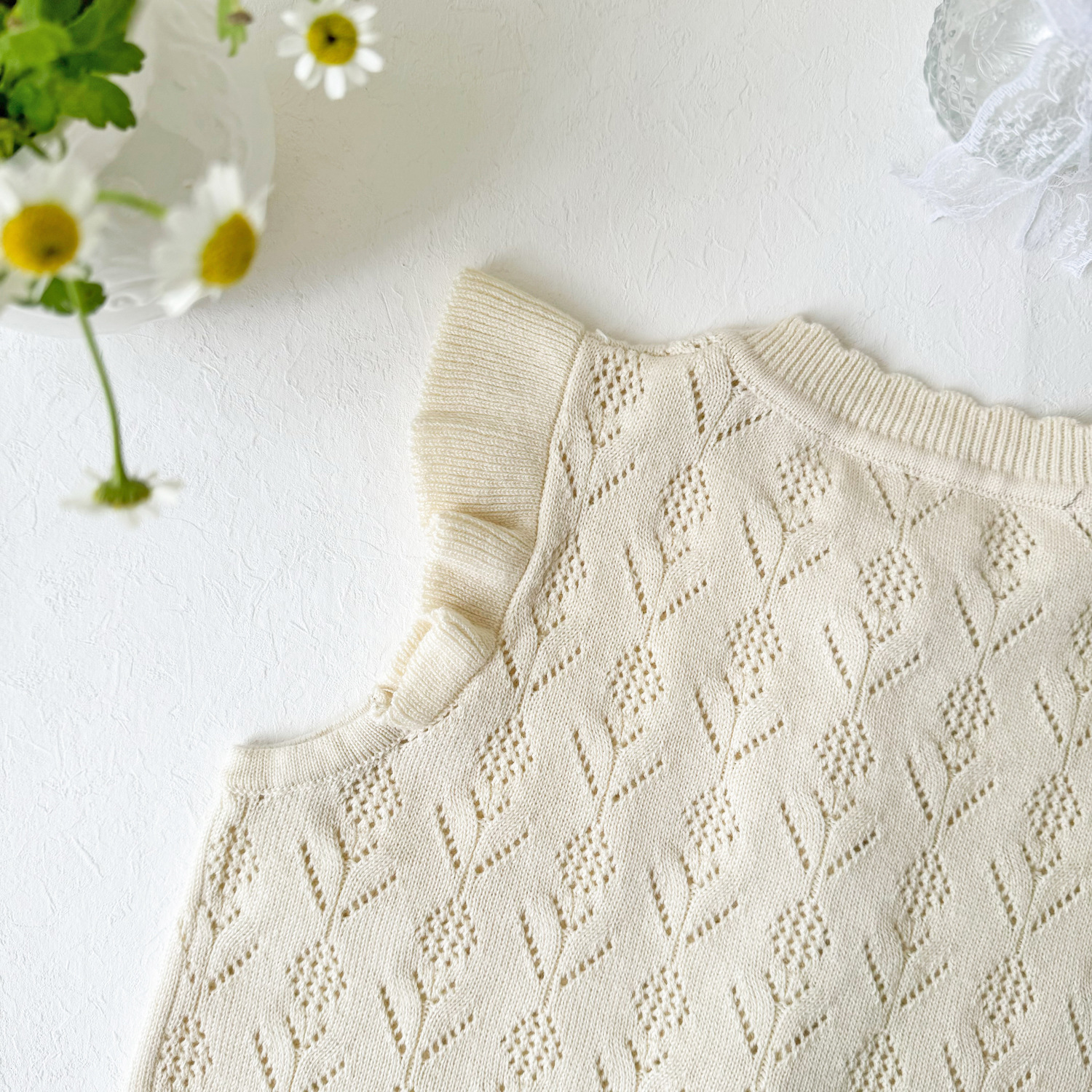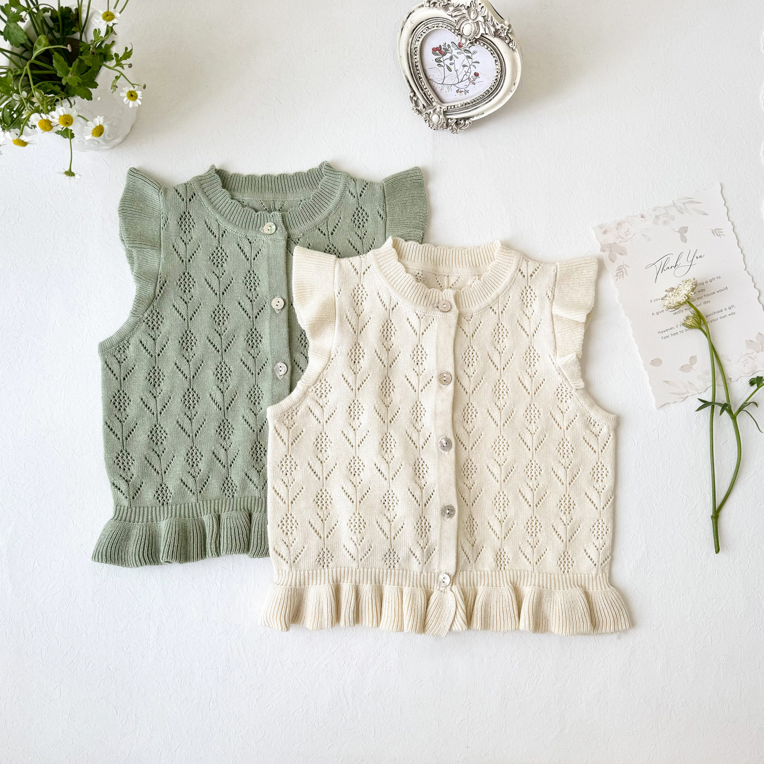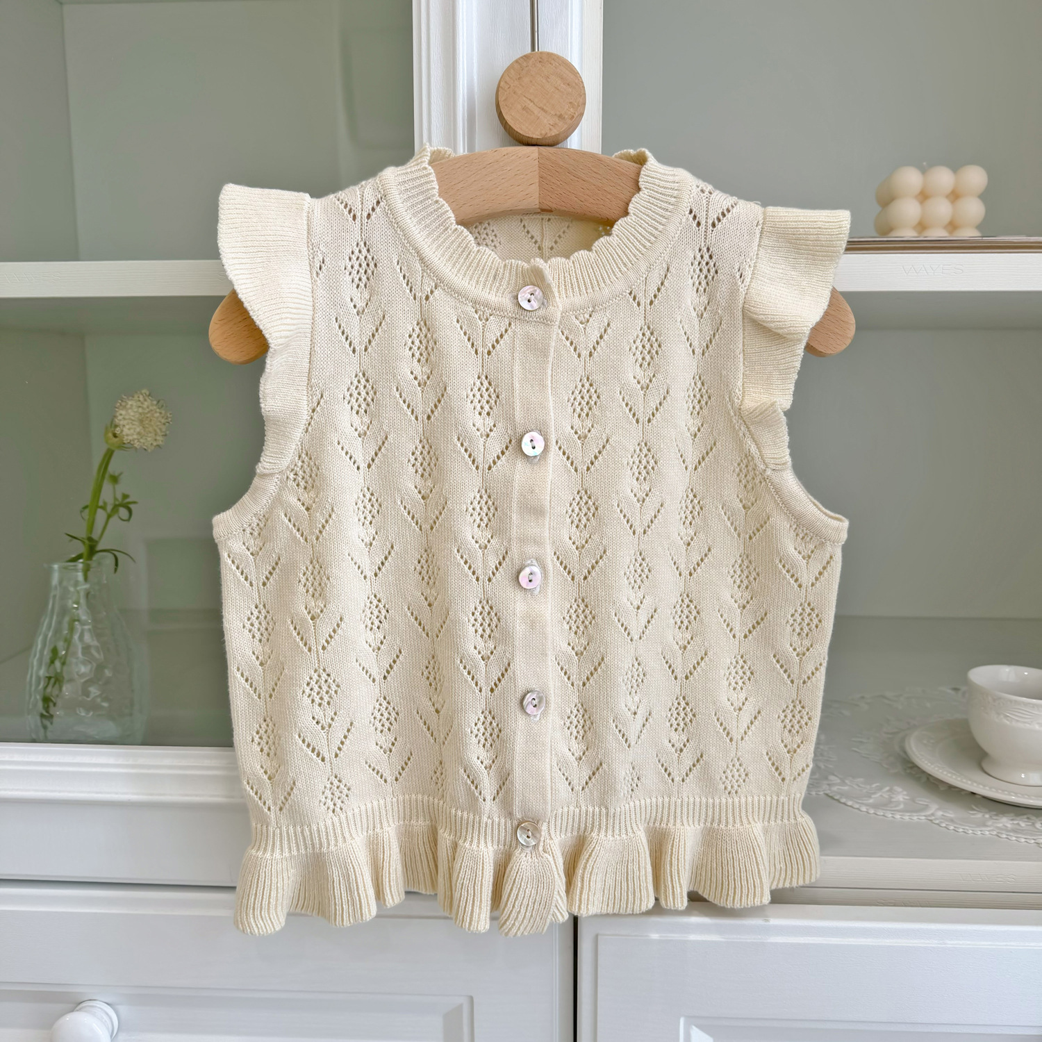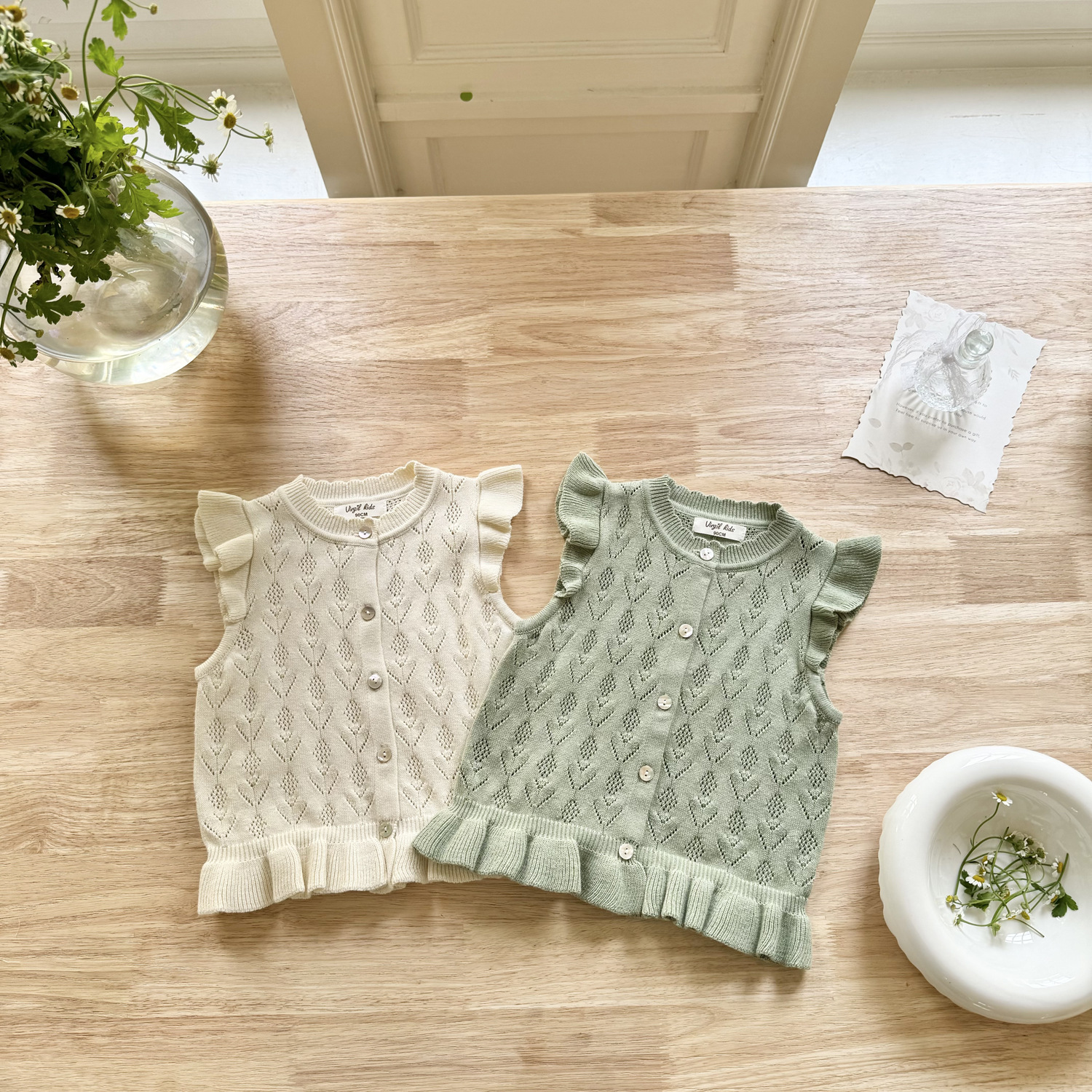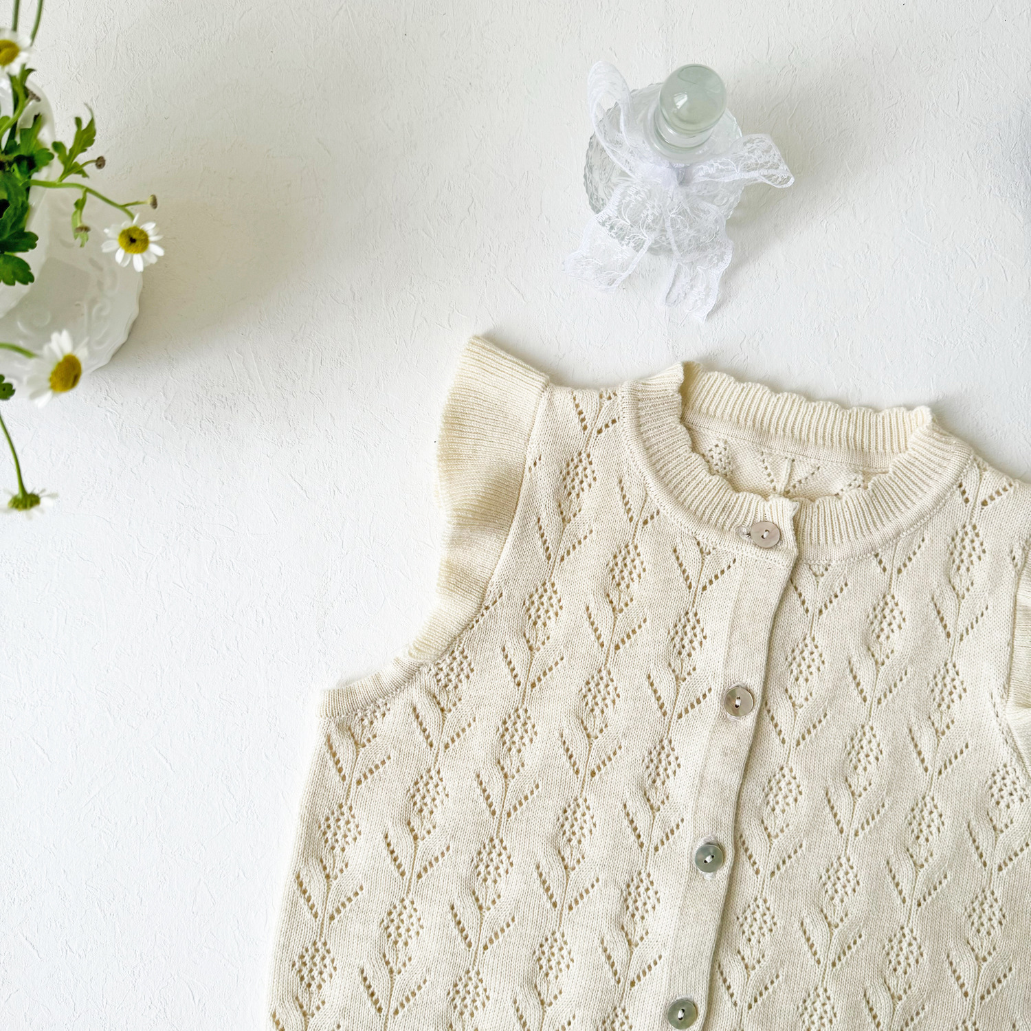 2026 봄 신상품 크로스보더 여아용 펀칭 니트 조끼 면 모직 플라잉 슬리브 가디건 조끼 ins 스타일 여아 조끼스토어 가기