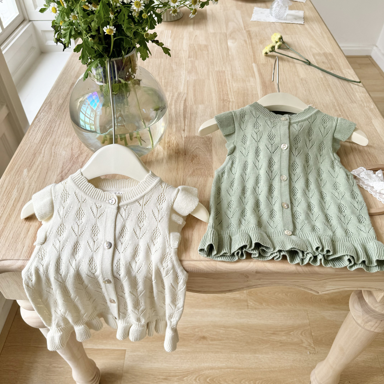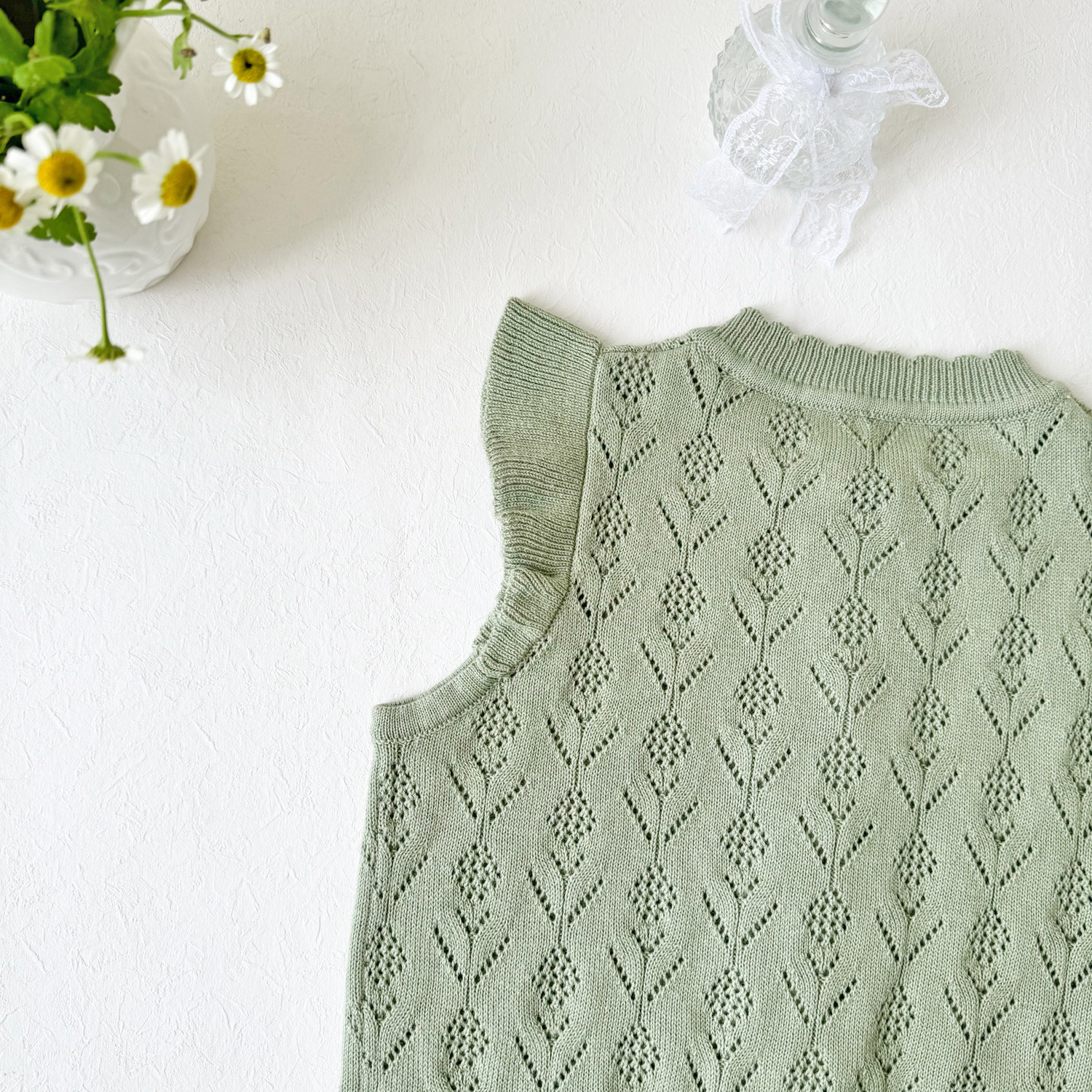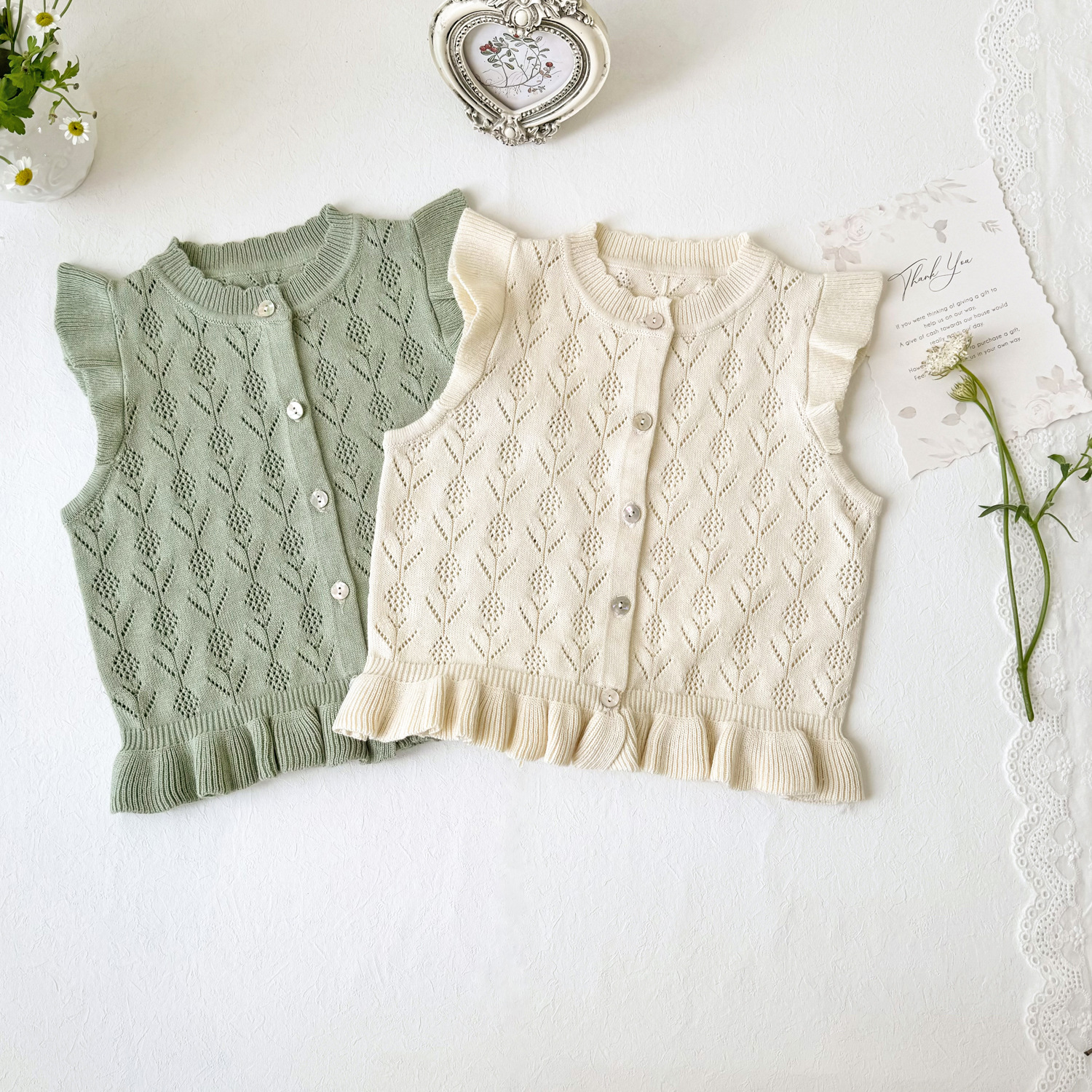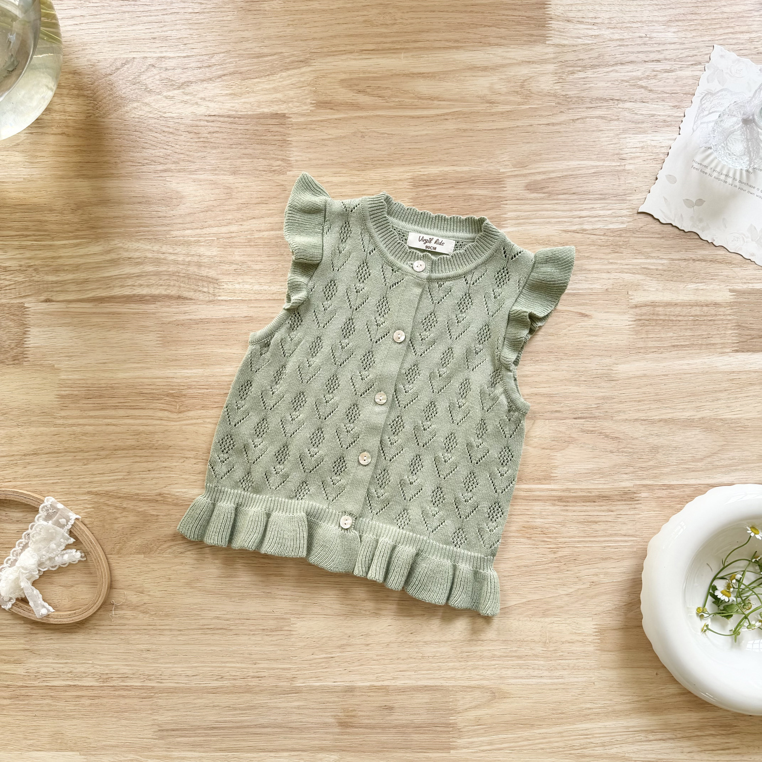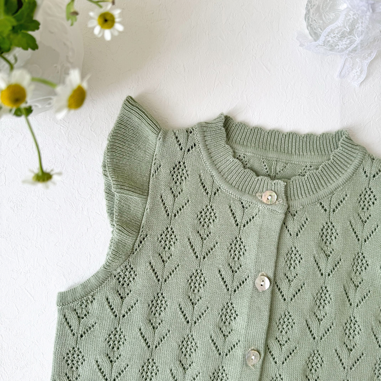 2026 봄 신상품 크로스보더 여아용 펀칭 니트 조끼 면 모직 플라잉 슬리브 가디건 조끼 ins 스타일 여아 조끼스토어 가기