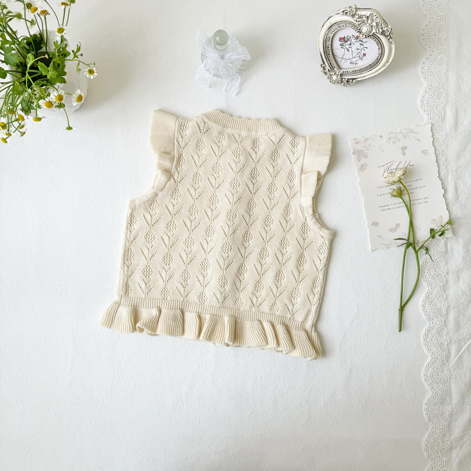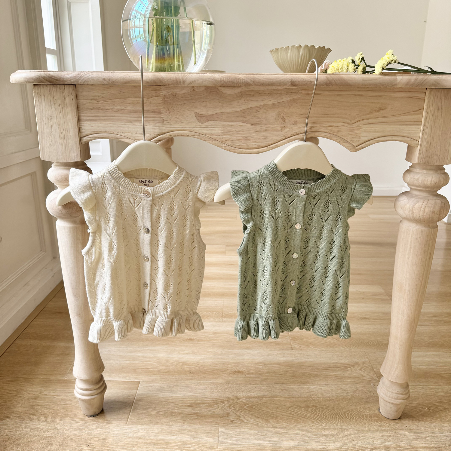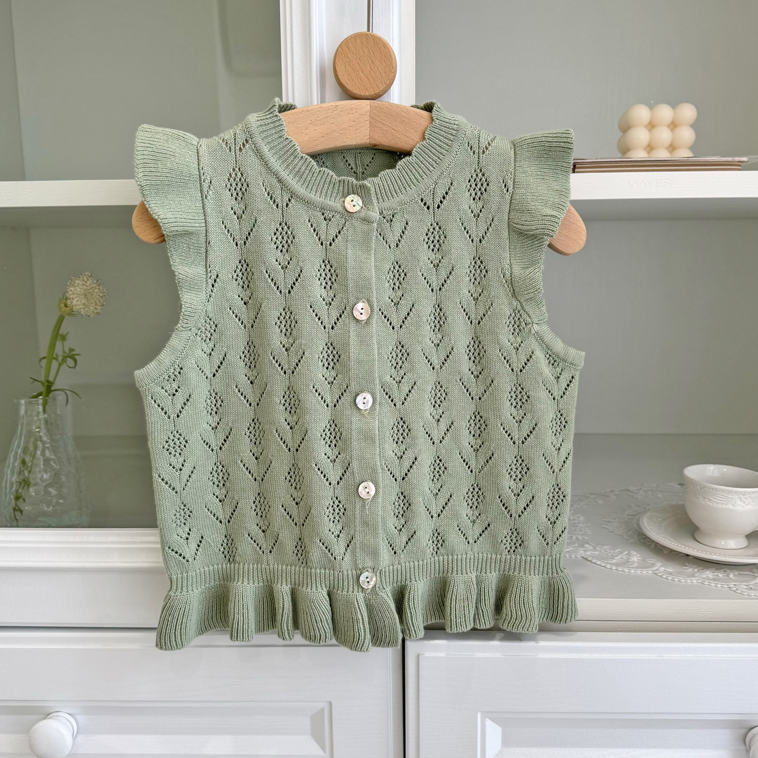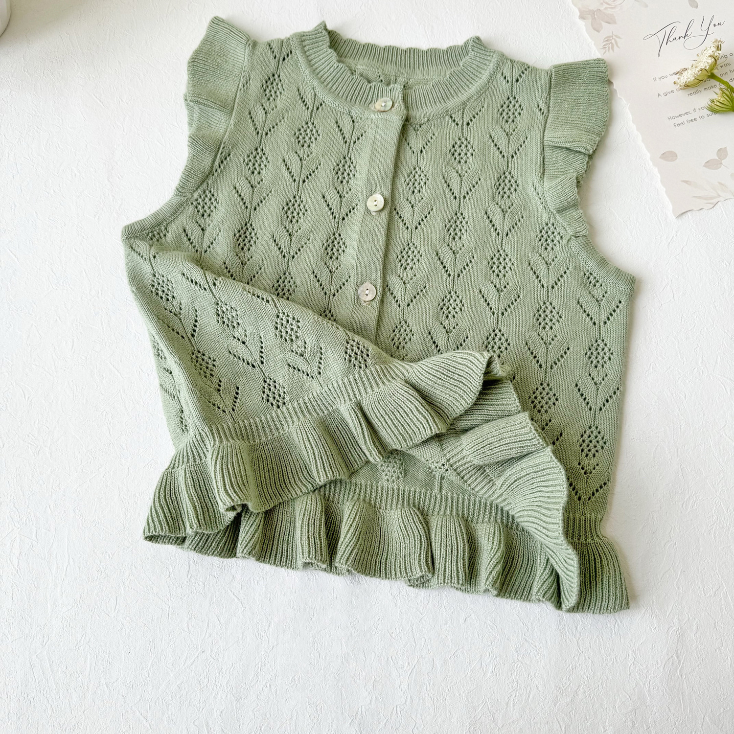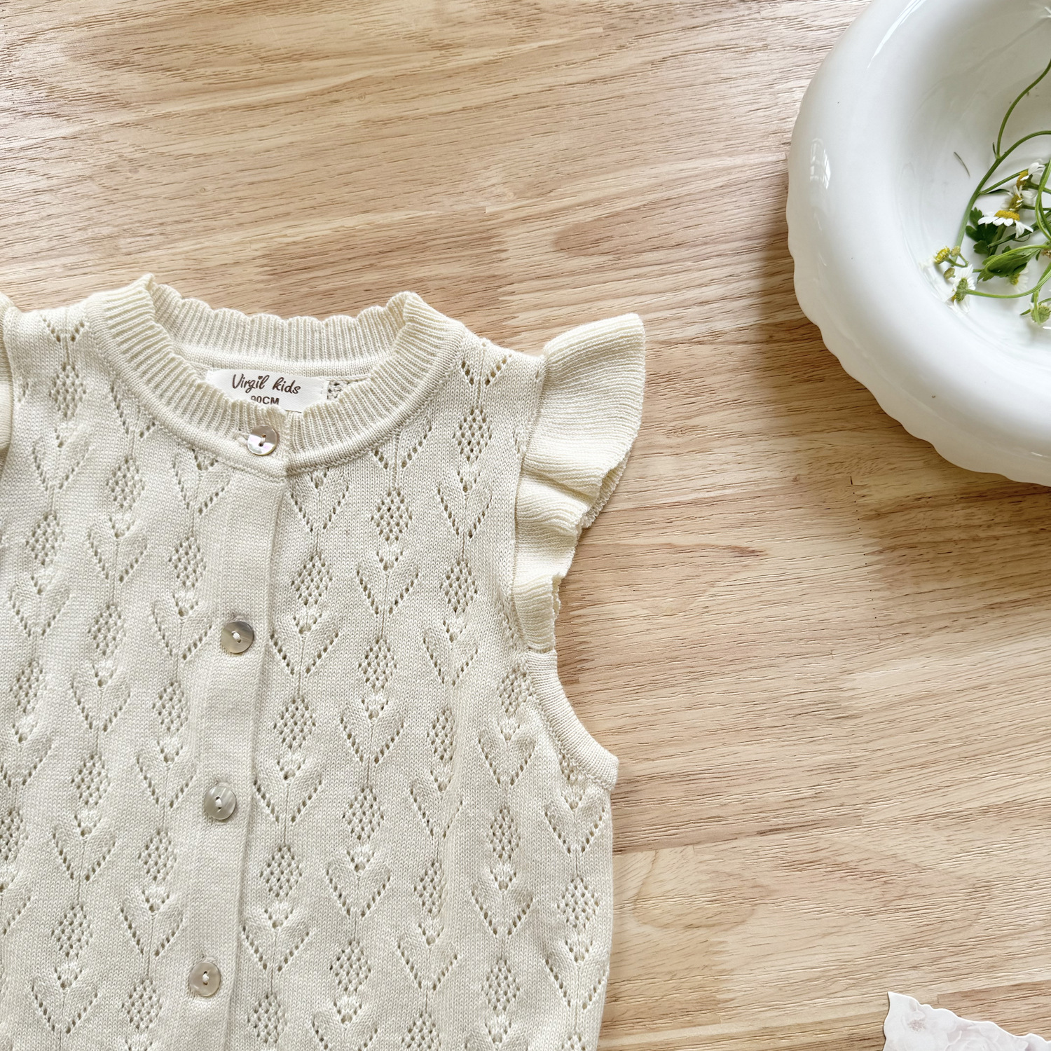2026 봄 신상품 크로스보더 여아용 펀칭 니트 조끼 면 모직 플라잉 슬리브 가디건 조끼 ins 스타일 여아 조끼스토어 가기