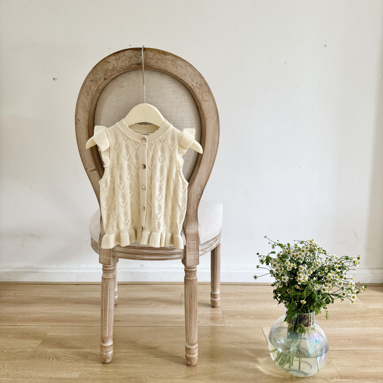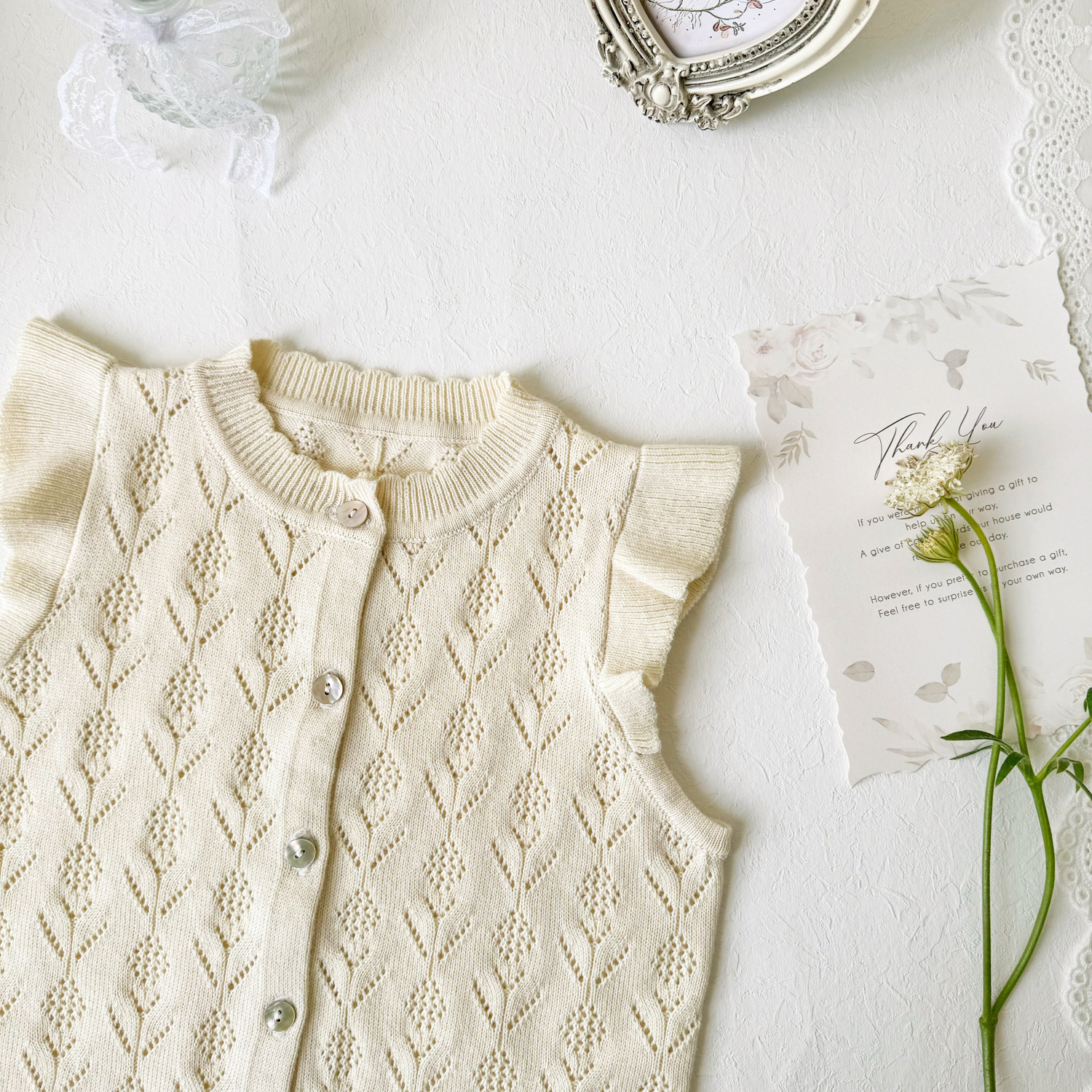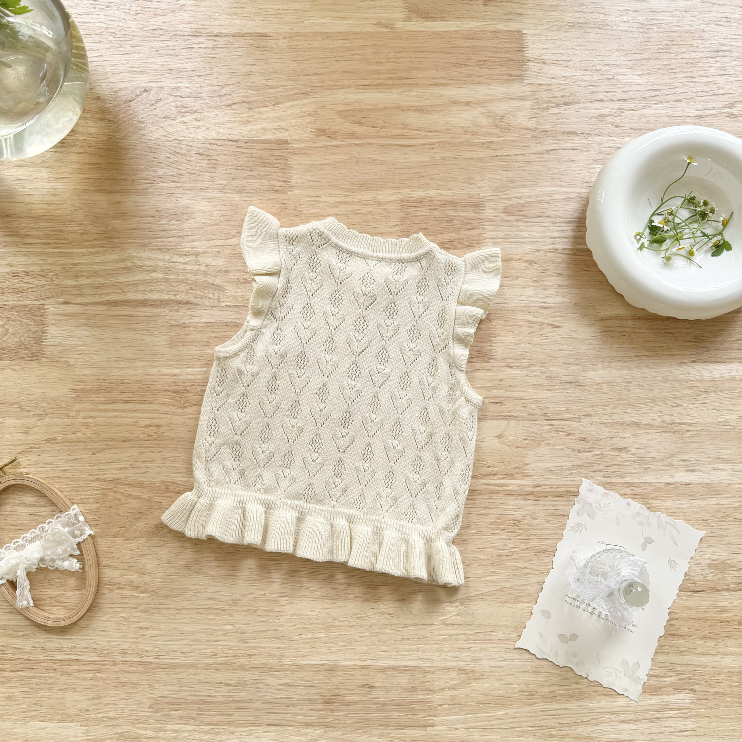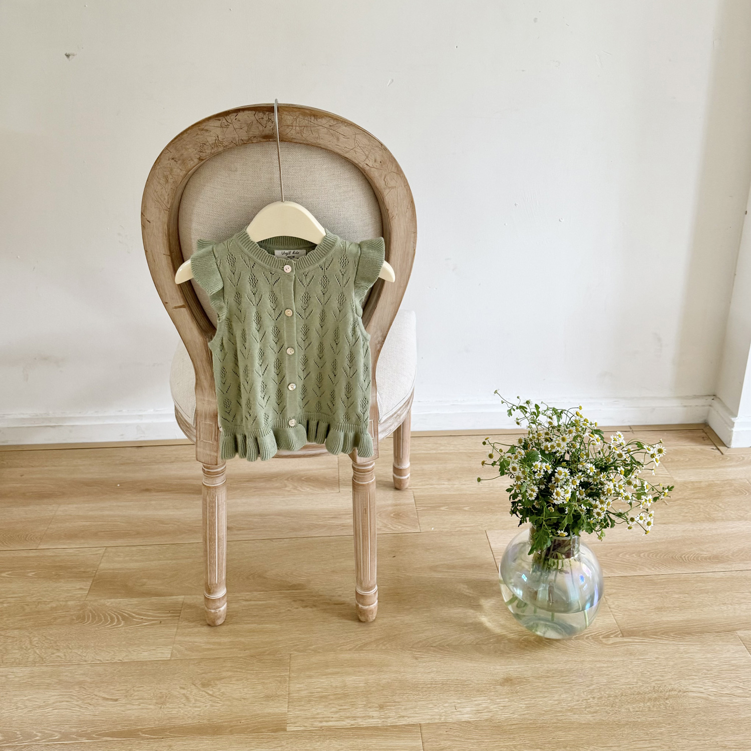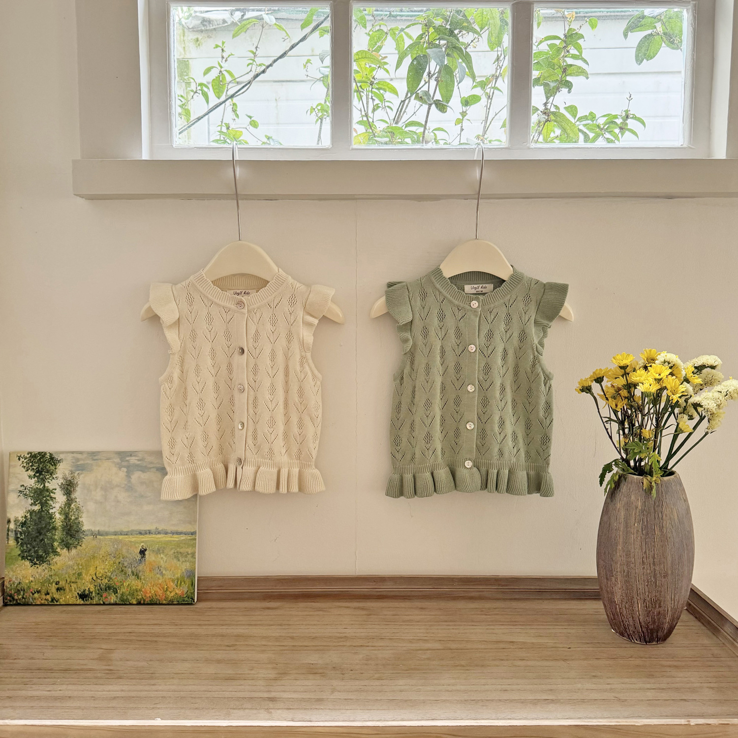 2026 봄 신상품 크로스보더 여아용 펀칭 니트 조끼 면 모직 플라잉 슬리브 가디건 조끼 ins 스타일 여아 조끼스토어 가기