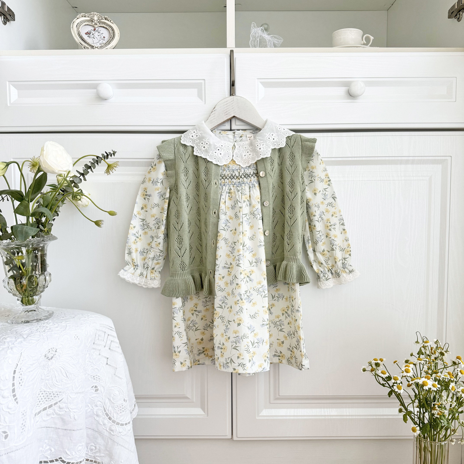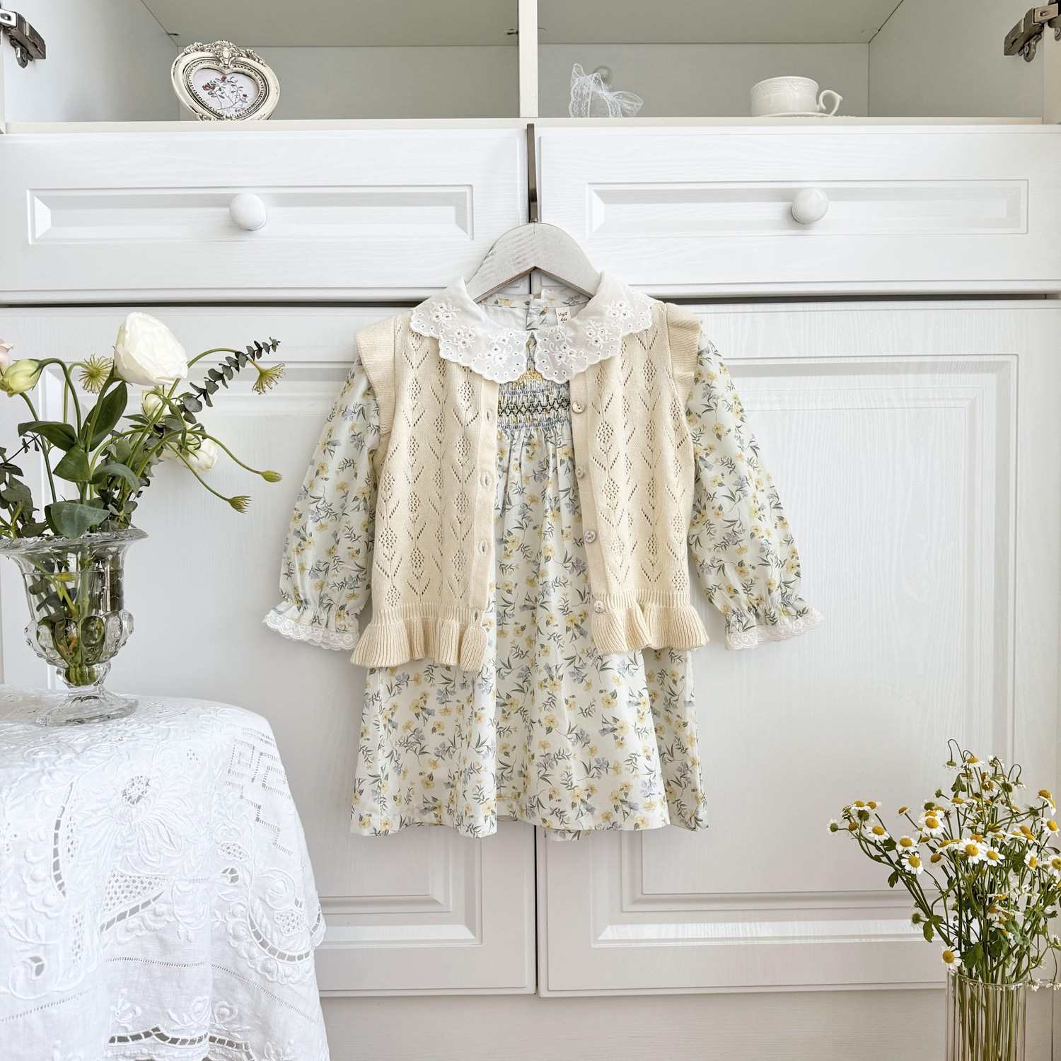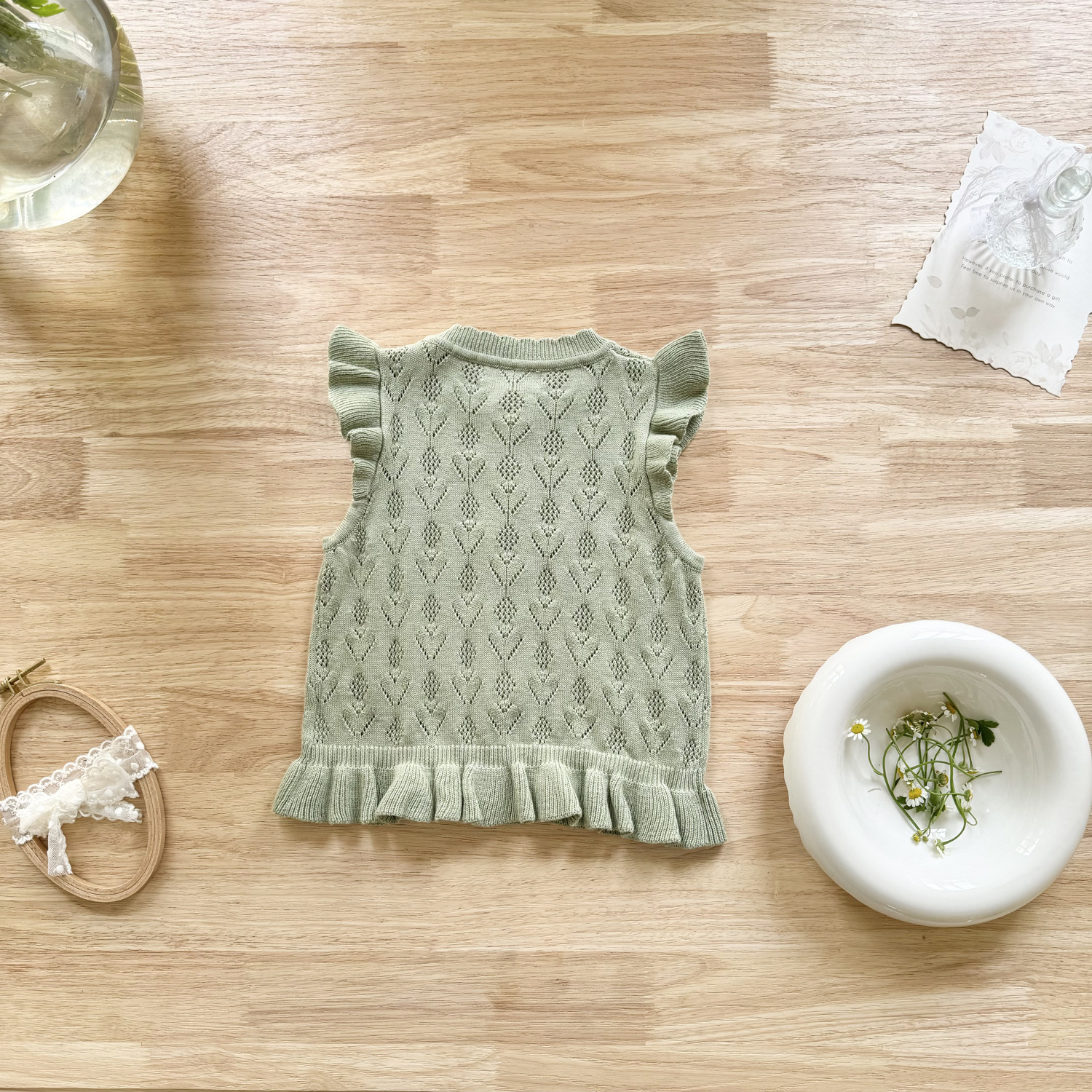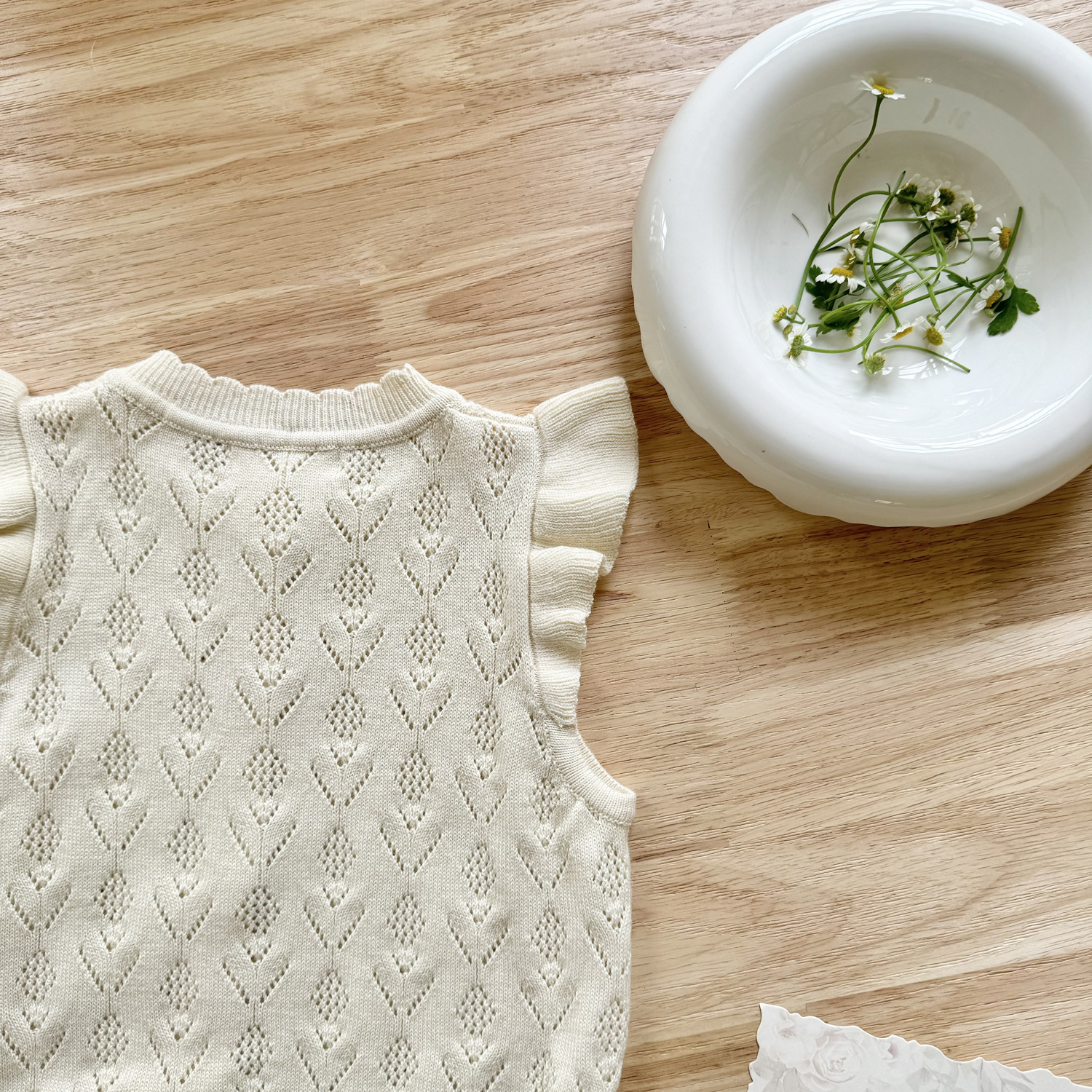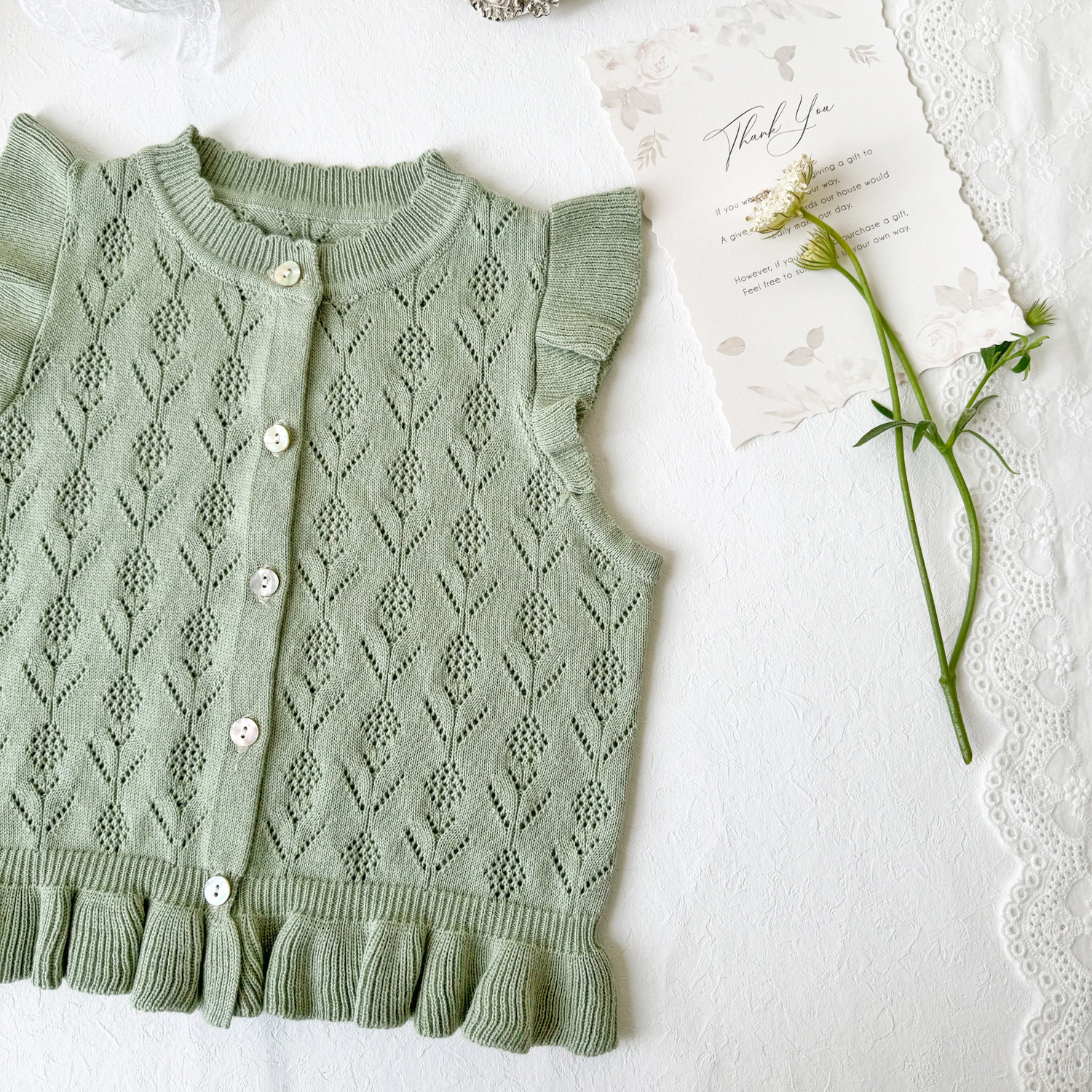 2026 봄 신상품 크로스보더 여아용 펀칭 니트 조끼 면 모직 플라잉 슬리브 가디건 조끼 ins 스타일 여아 조끼스토어 가기