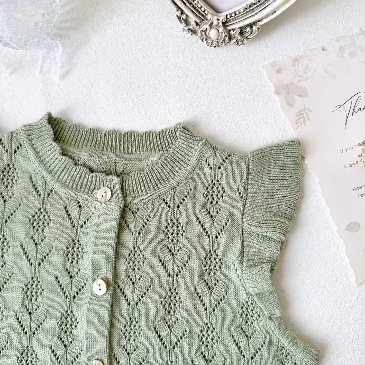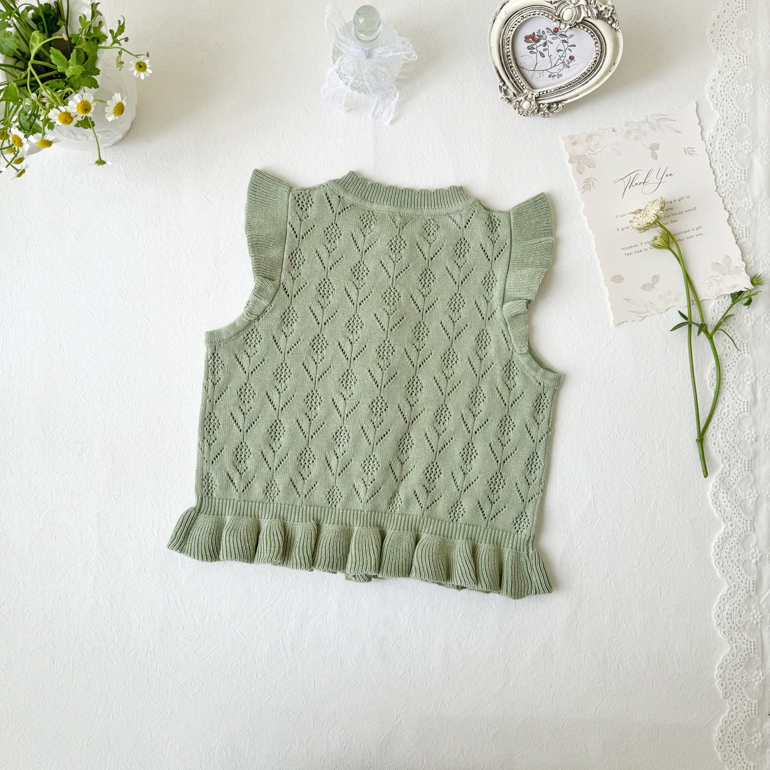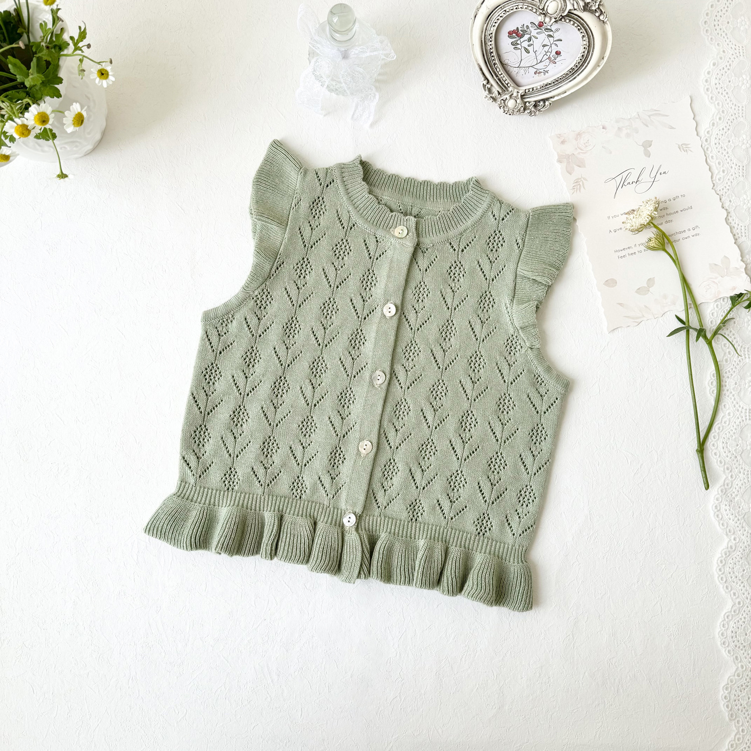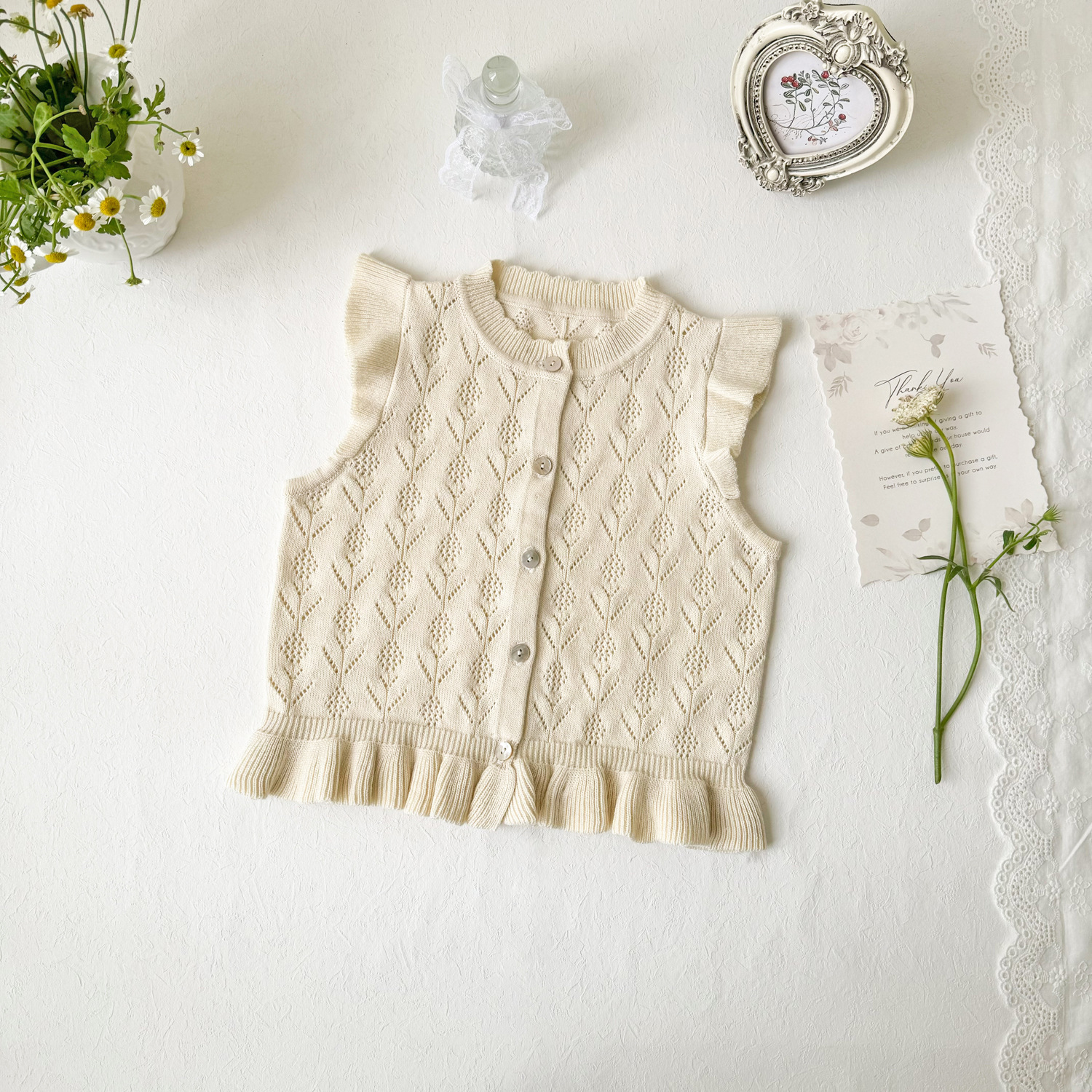 2026 봄 신상품 크로스보더 여아용 펀칭 니트 조끼 면 모직 플라잉 슬리브 가디건 조끼 ins 스타일 여아 조끼