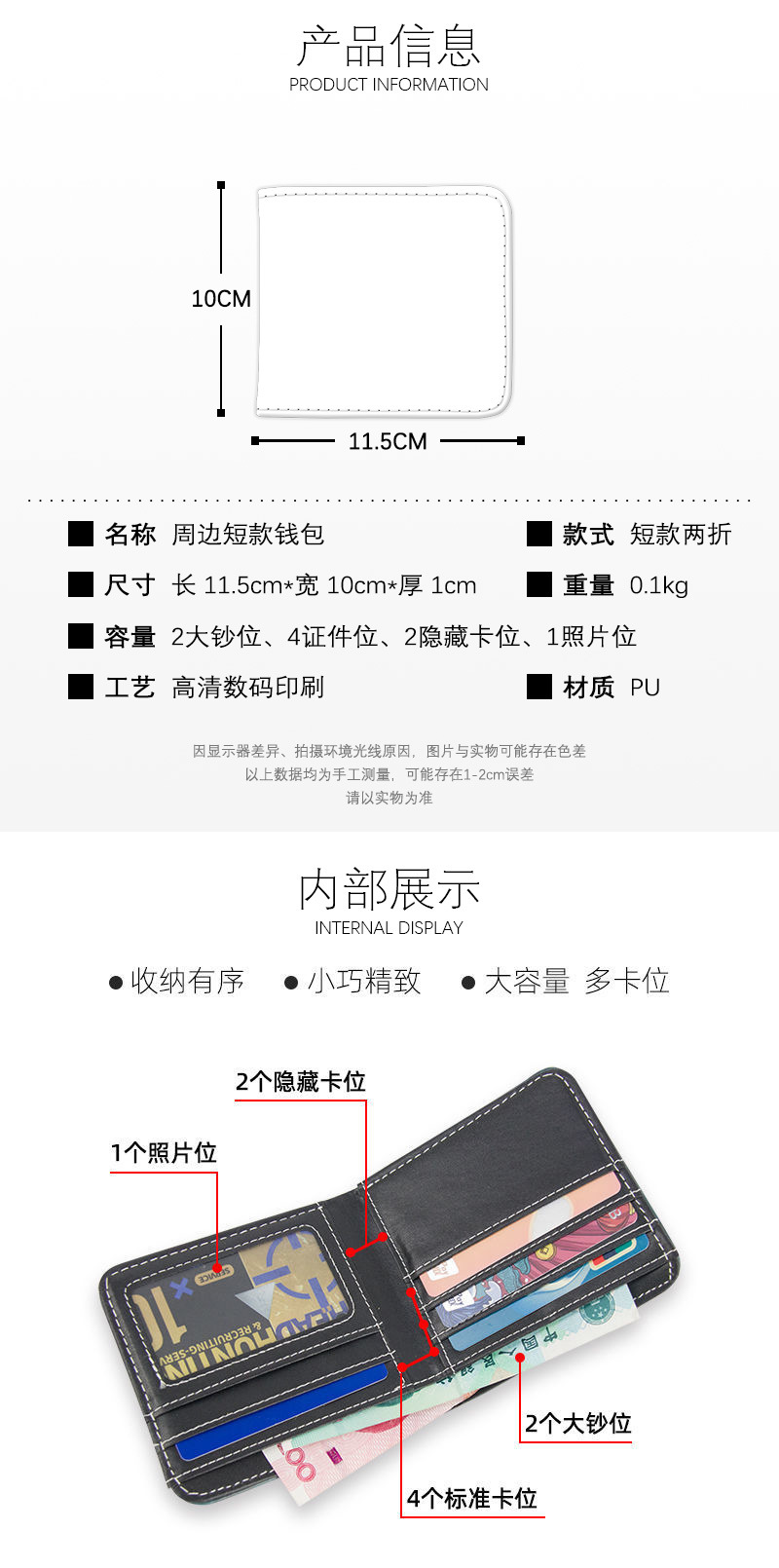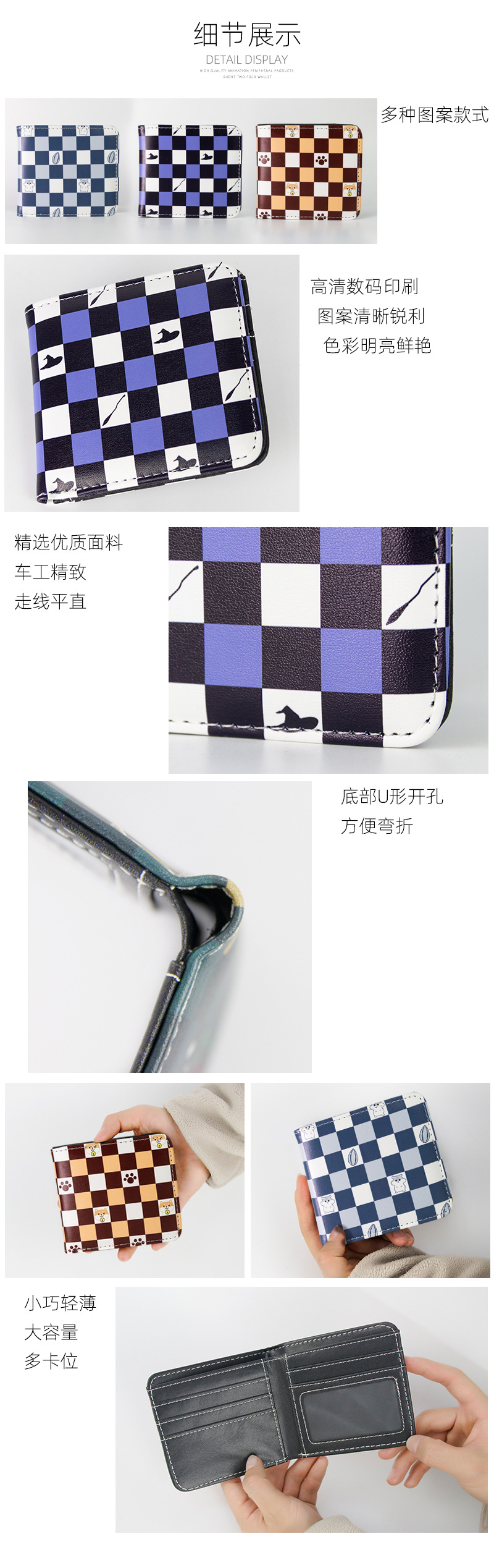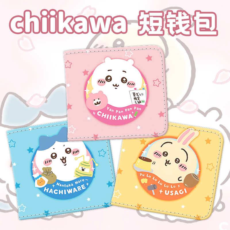 Chiikawa 작은 귀여운 Ji Yi Ka Wa Wu Saqi Haqi Xiao Ba 애니메이션 학생 주변 pu 가죽 짧은 지갑