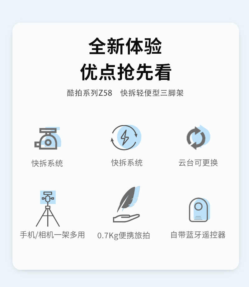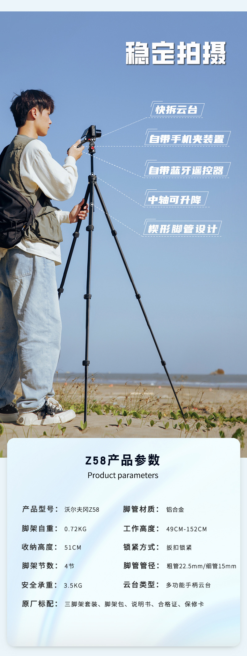 WOLFGANG WOLFGANG Z58 삼각대 카메라 휴대 전화 브래킷 라이브 셀카 스틱 삼각대 유니버설 촬영스토어 가기