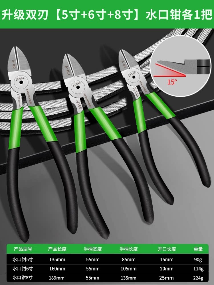 배올 리안 워터 플라이어 절단 펜치 대각선 펜치 비스듬한 입 산업 등급 절단 플라이어 전기 기술자는 강철 와이어 슈퍼 하드 가위 뾰족한 입을 절단 할 수 있습니다.스토어 가기