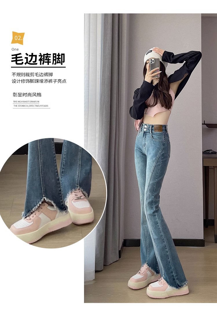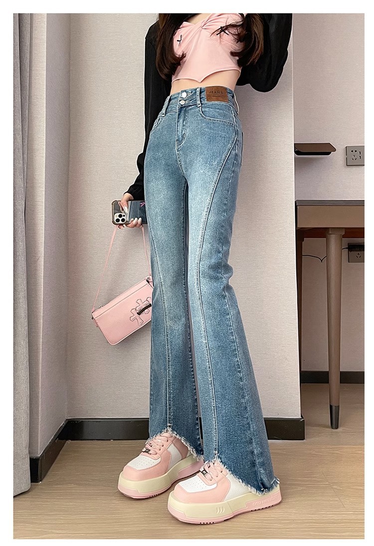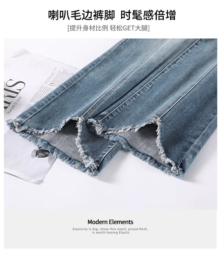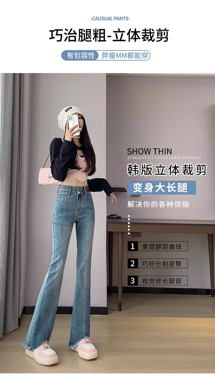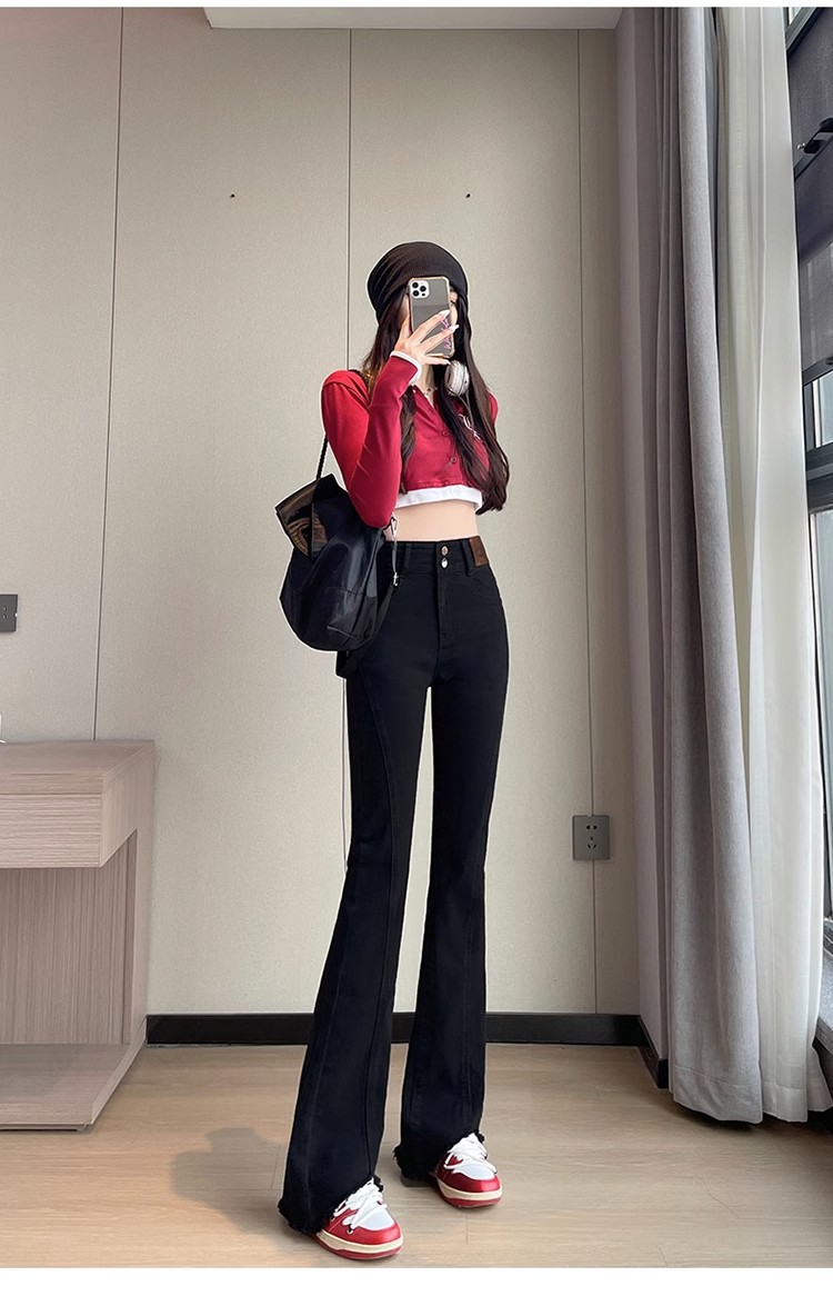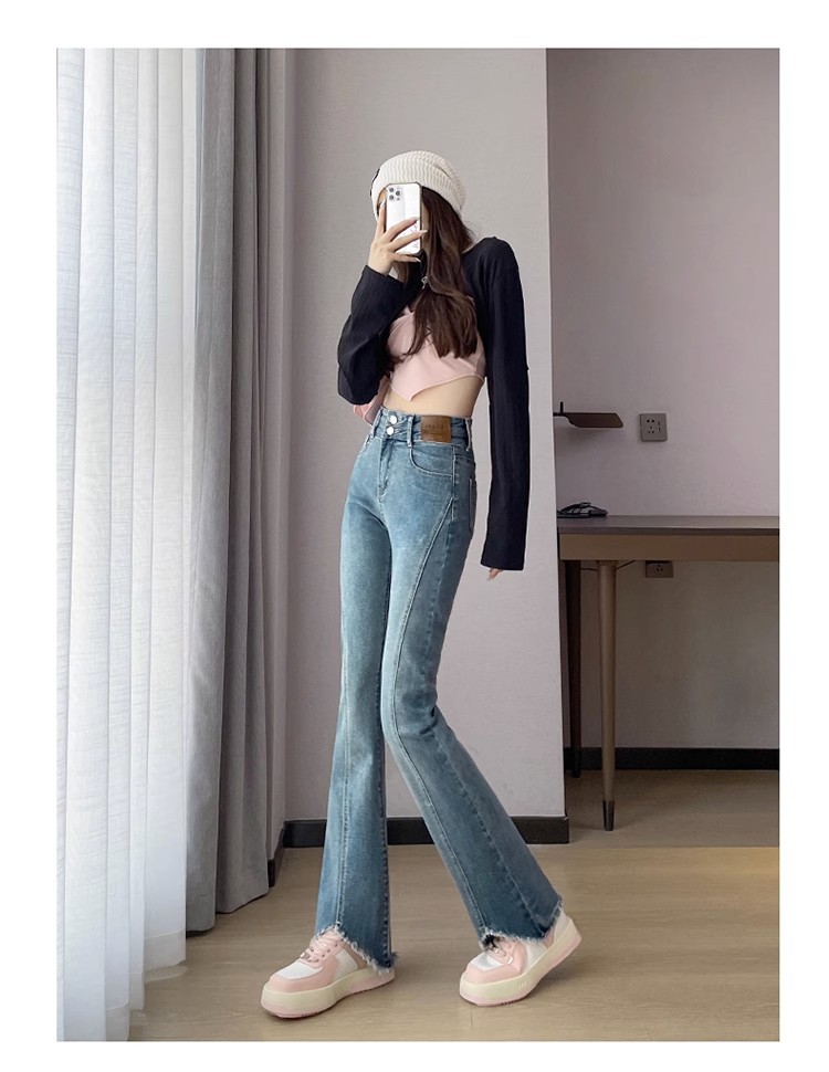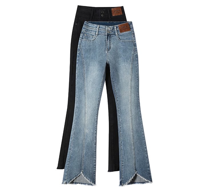 검은 거친 가장자리 청바지 여성용 슬림 핏 봄 2024 새로운 높은 허리 슬리밍 말굽 걸레 마이크로 혼 바지스토어 가기