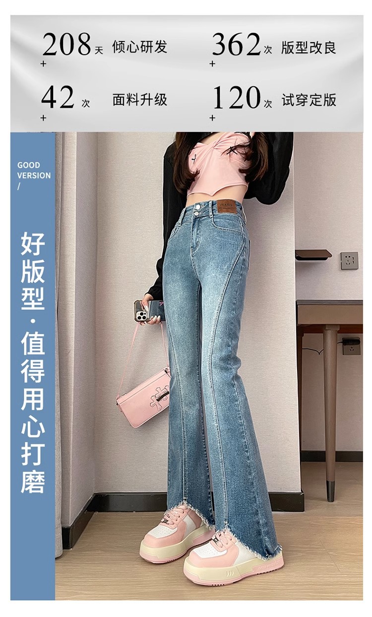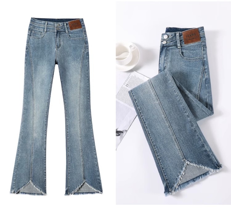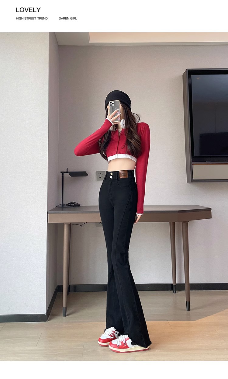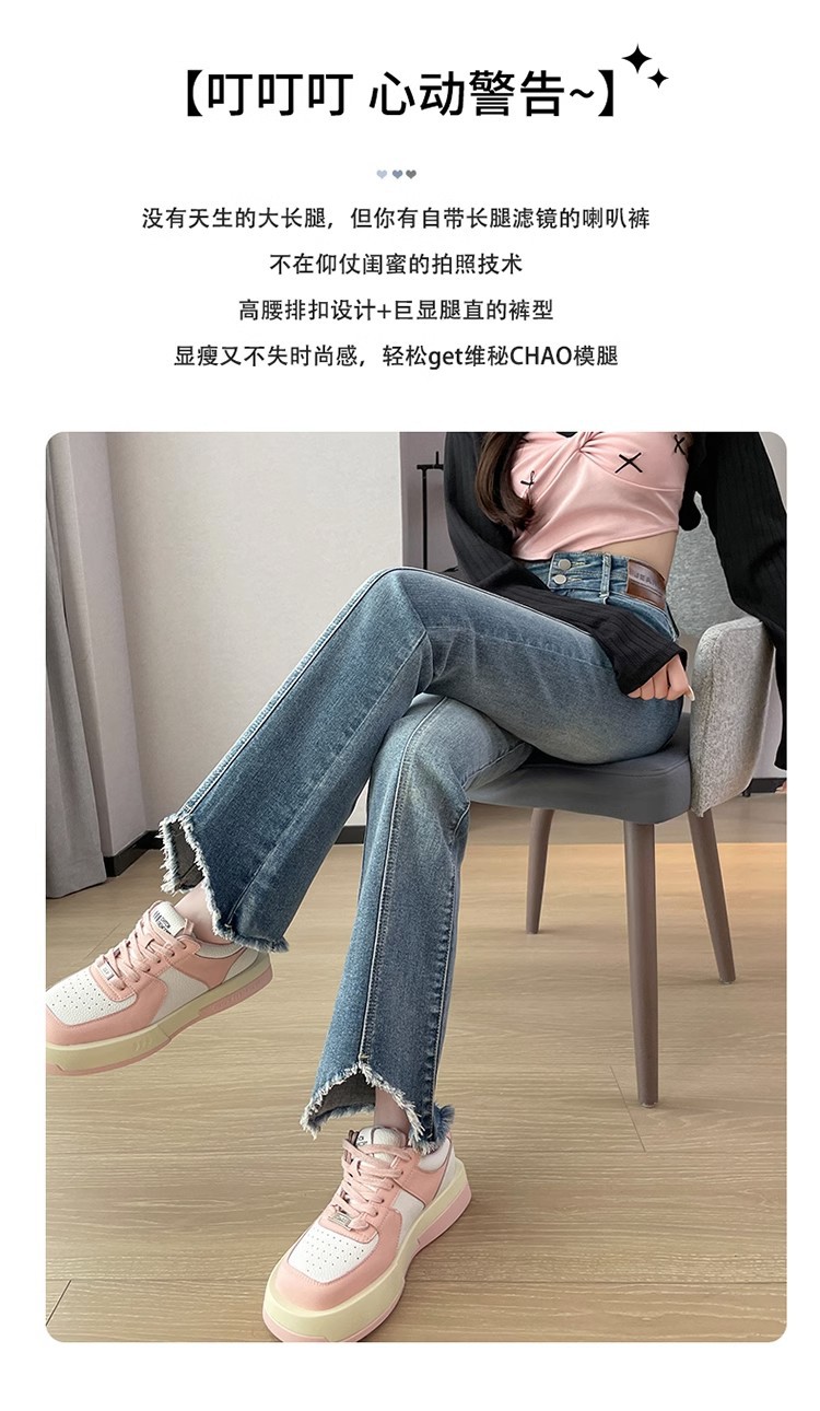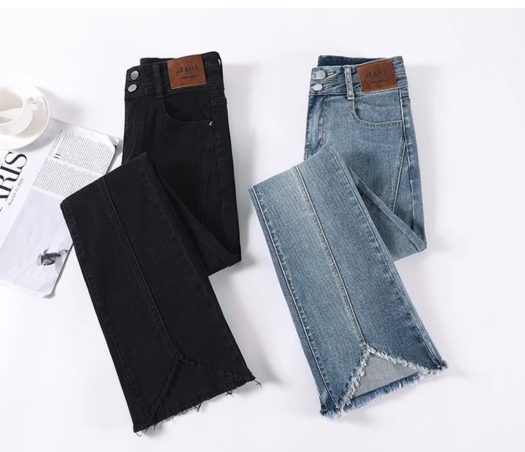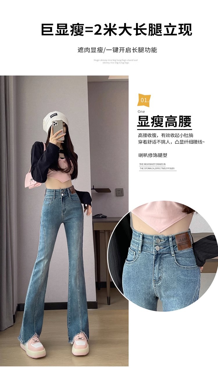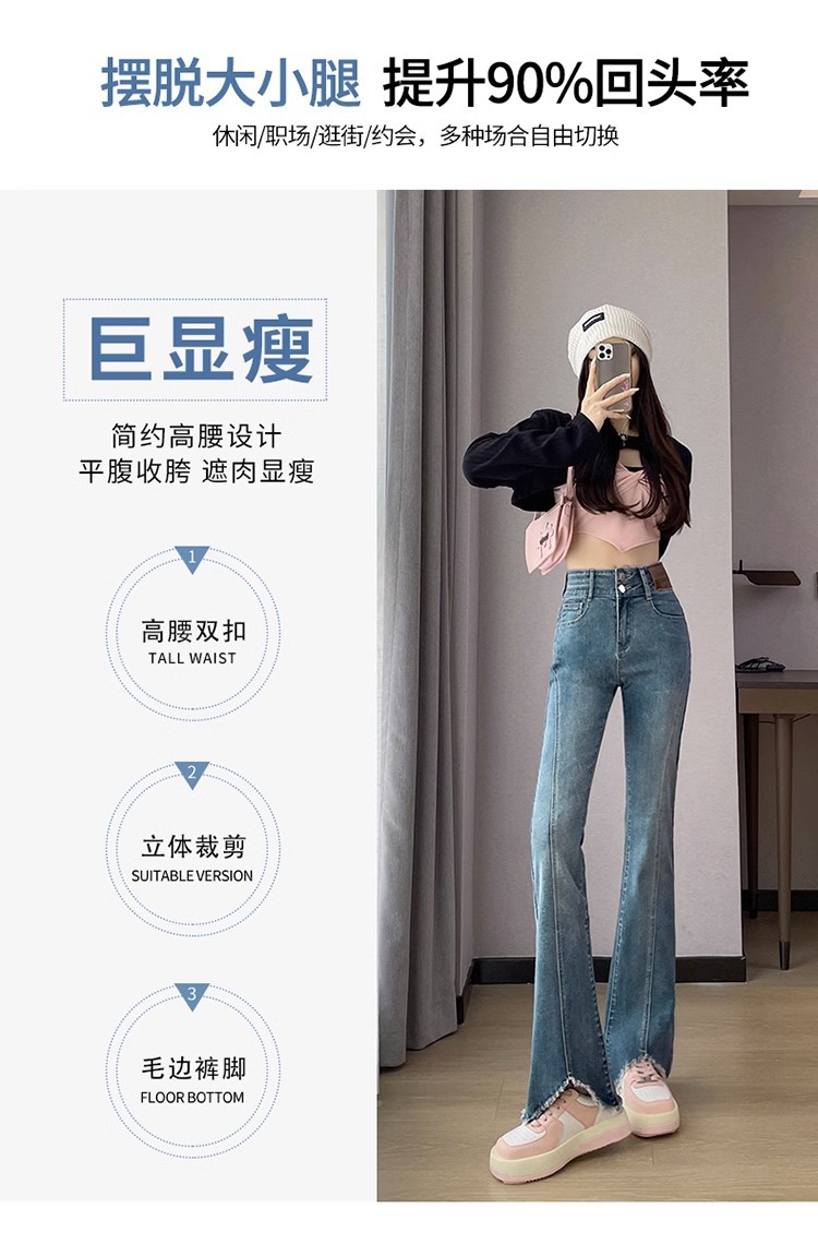 검은 거친 가장자리 청바지 여성용 슬림 핏 봄 2024 새로운 높은 허리 슬리밍 말굽 걸레 마이크로 혼 바지스토어 가기