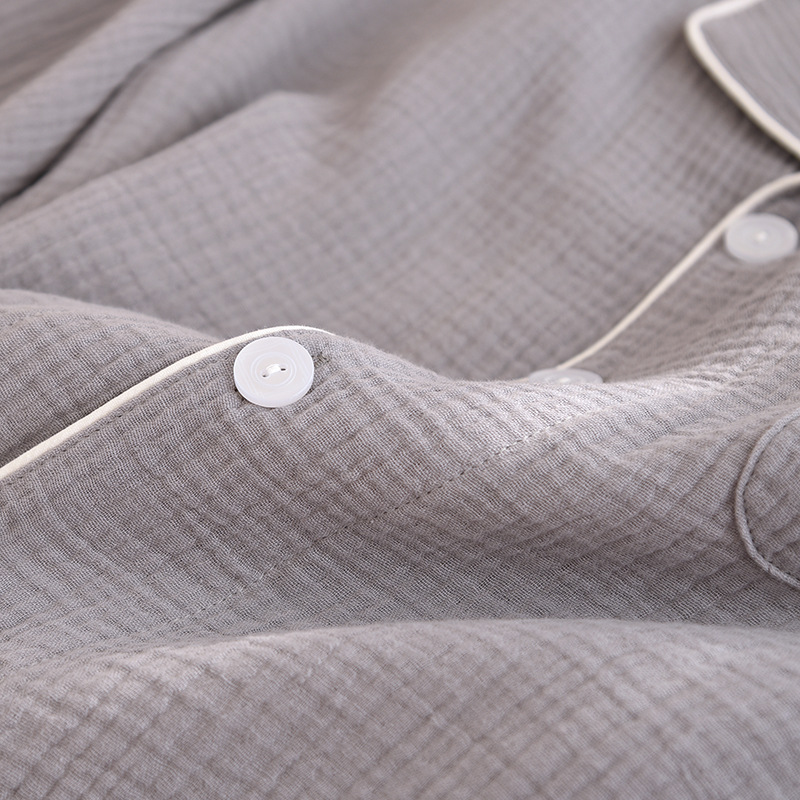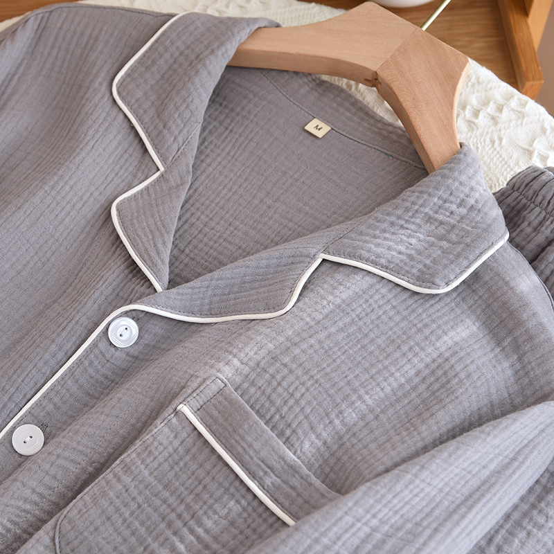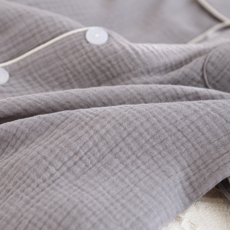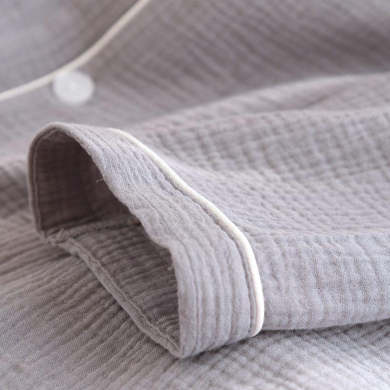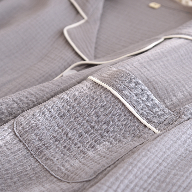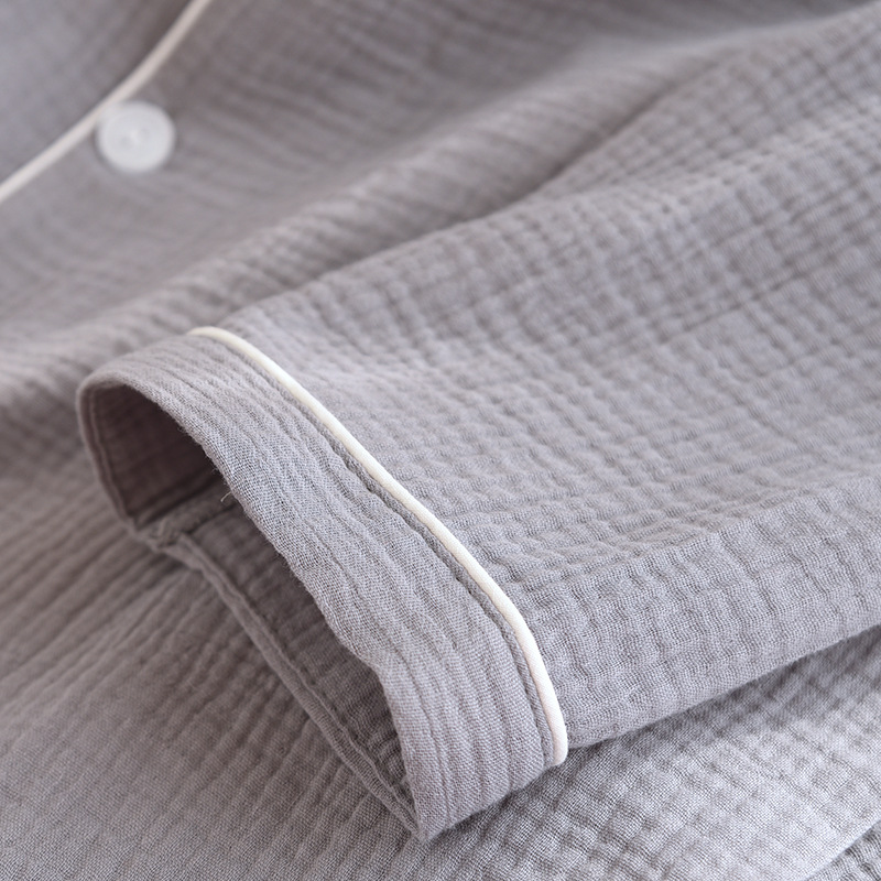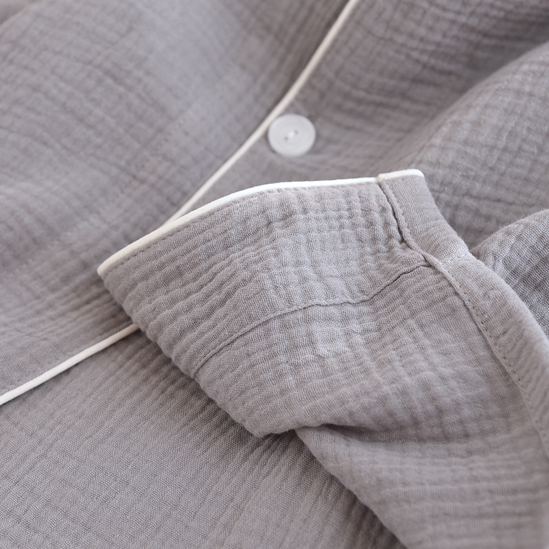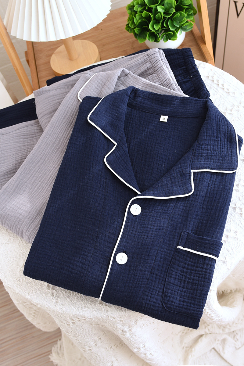 간단한 단색 남성 잠옷 면 거즈 긴 소매 얇은 봄과 가을 여름 중년 아빠 플러스 사이즈 홈 웨어스토어 가기
