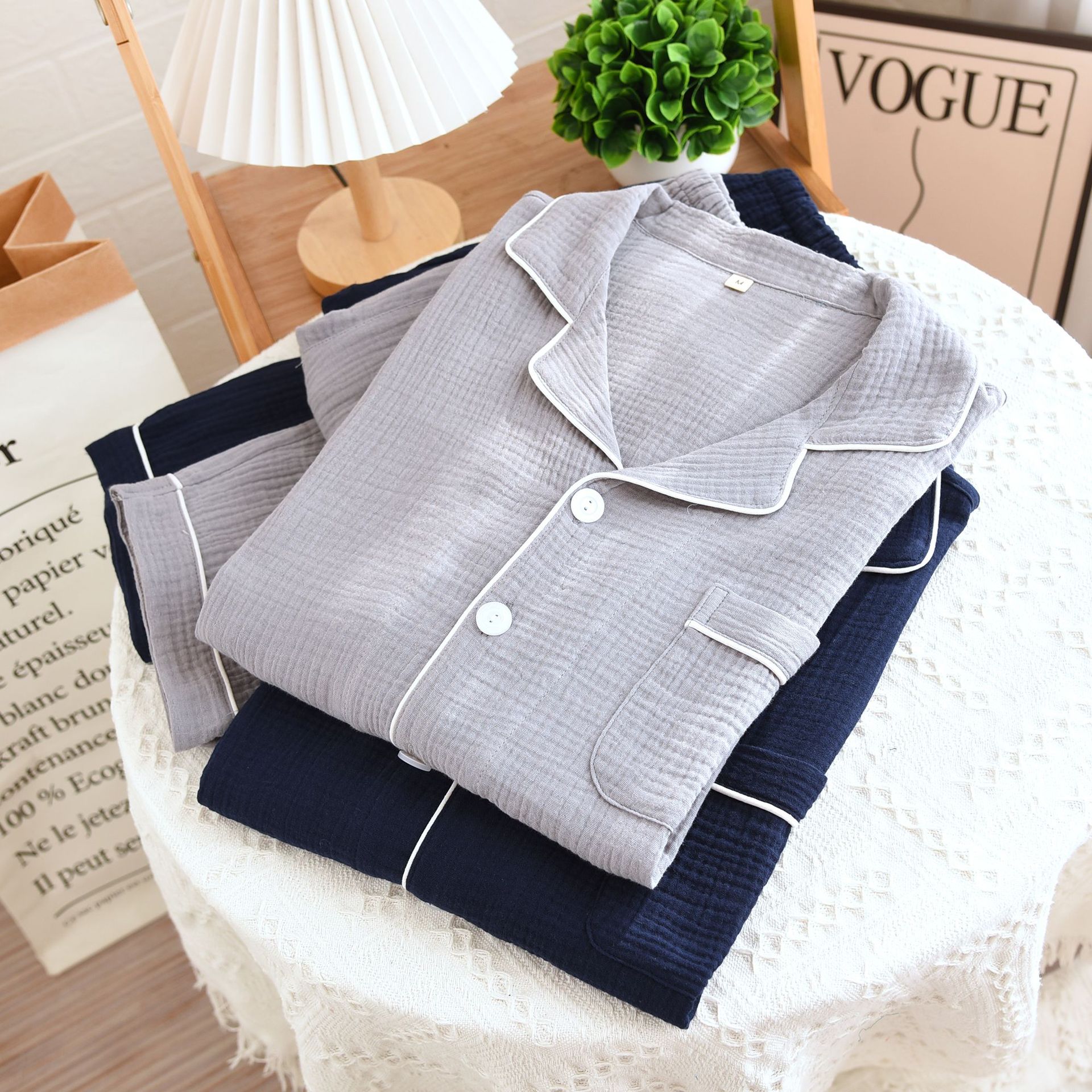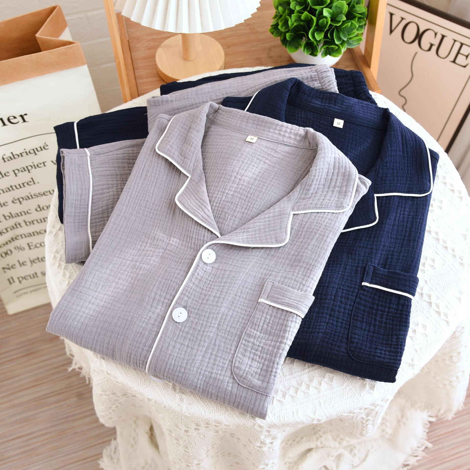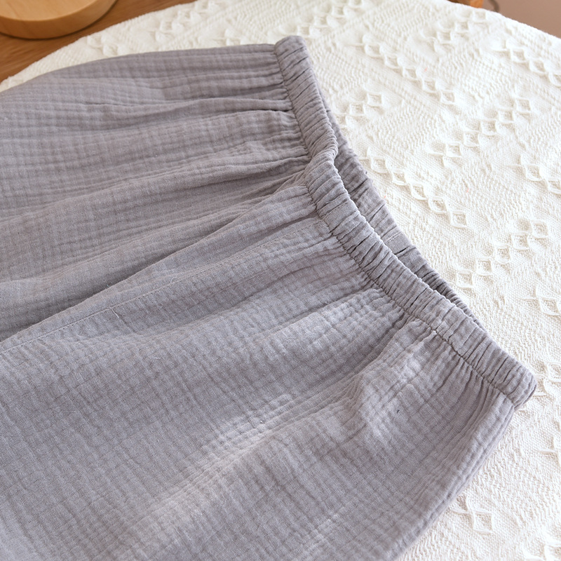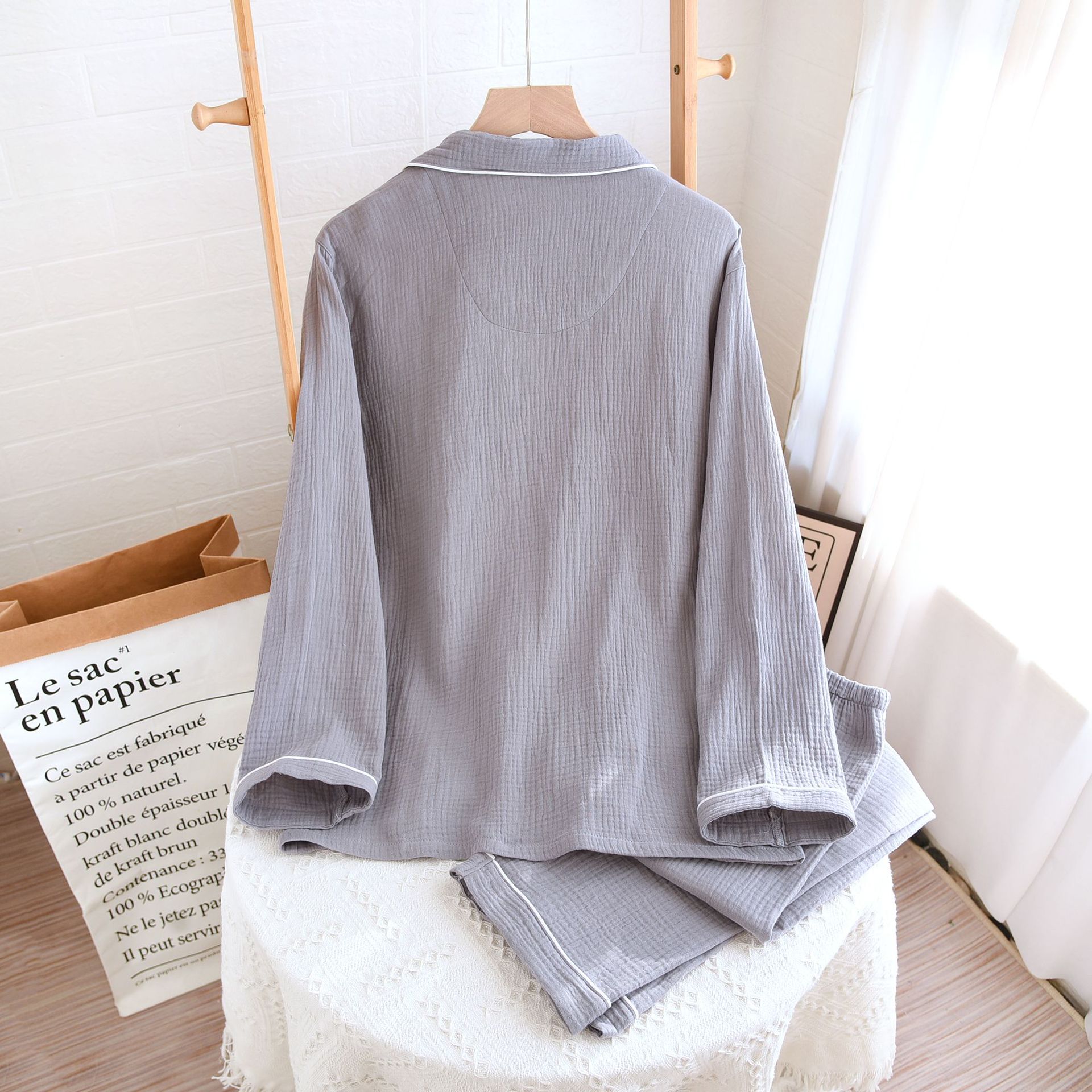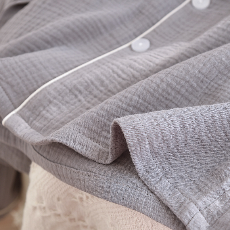 간단한 단색 남성 잠옷 면 거즈 긴 소매 얇은 봄과 가을 여름 중년 아빠 플러스 사이즈 홈 웨어스토어 가기