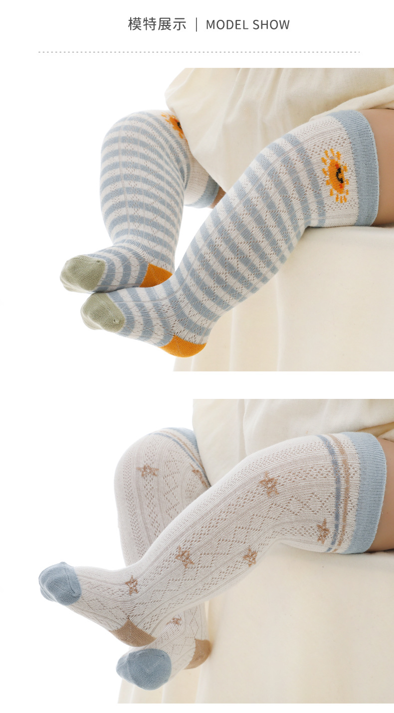 아기 긴 양말 여름 얇은 신생아 어린이의 느슨한 무릎 면화 양말 남성과 여성 아기 에어컨 모기 방지 양말스토어 가기