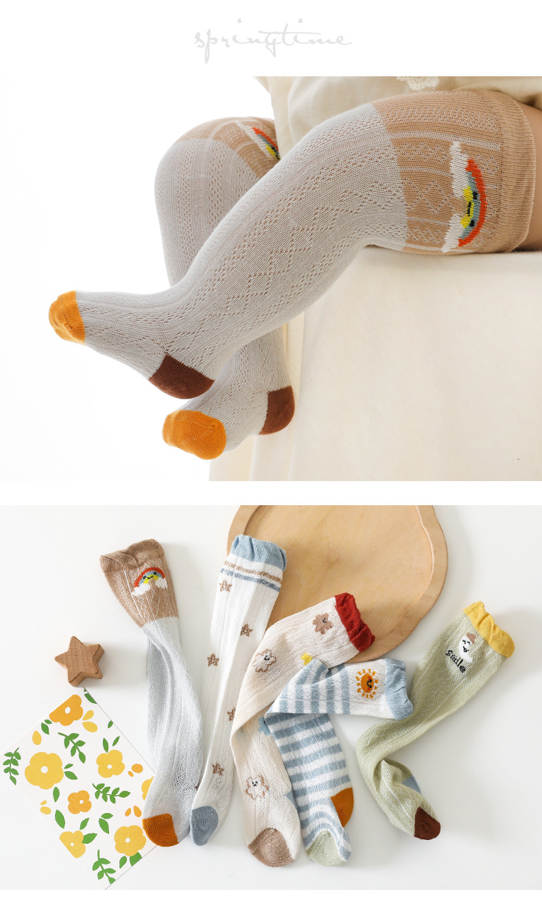 아기 긴 양말 여름 얇은 신생아 어린이의 느슨한 무릎 면화 양말 남성과 여성 아기 에어컨 모기 방지 양말