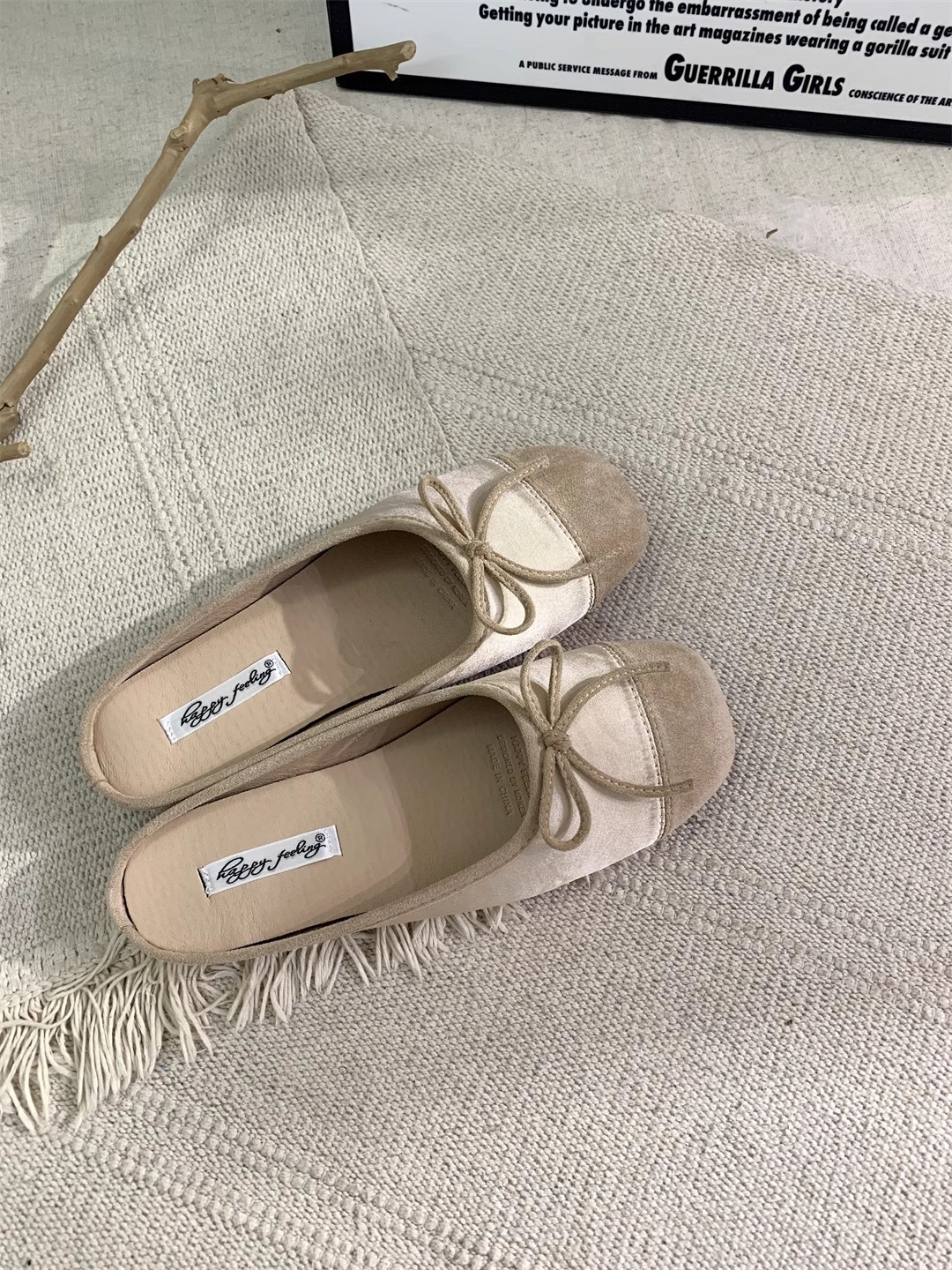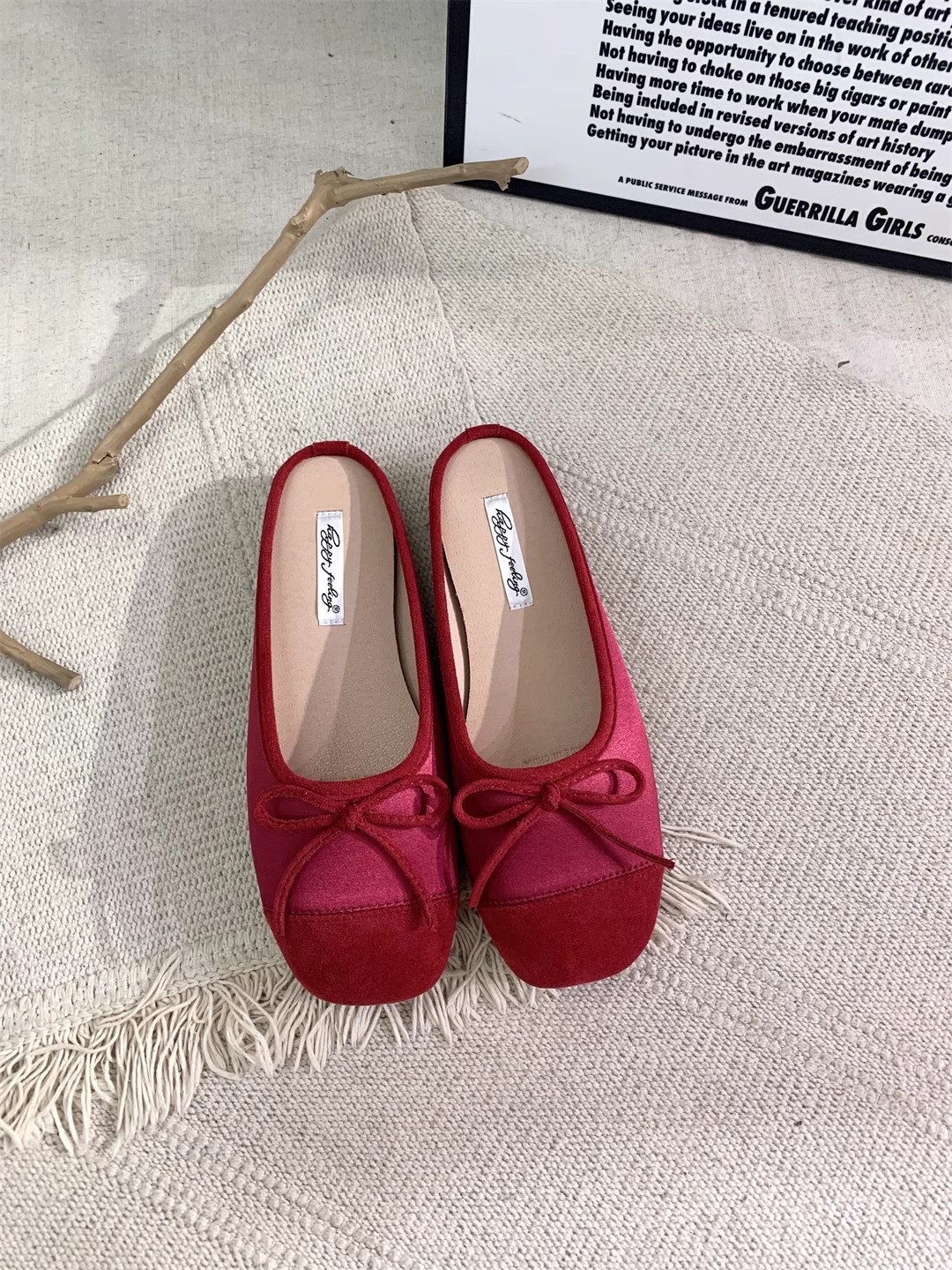 2026년 봄 신상 프렌치 스타일 이브닝 슈즈, 얕은 굽의 리본 장식, 부드러운 플랫 솔, 슬립온, 다용도 여성용 플랫 슈즈