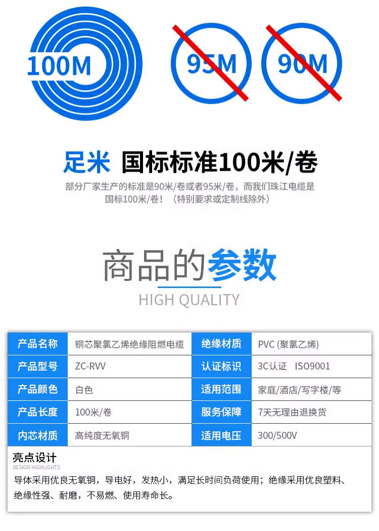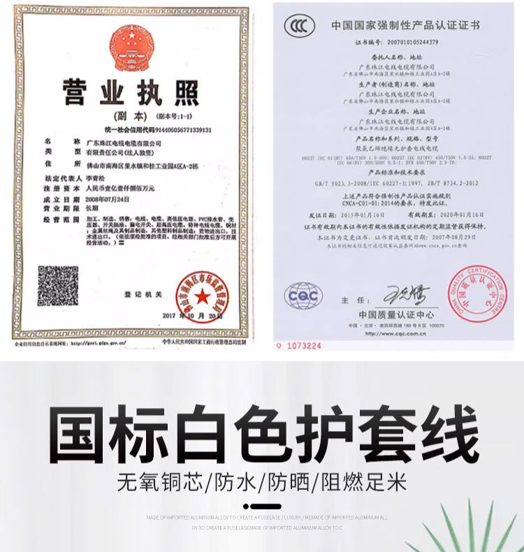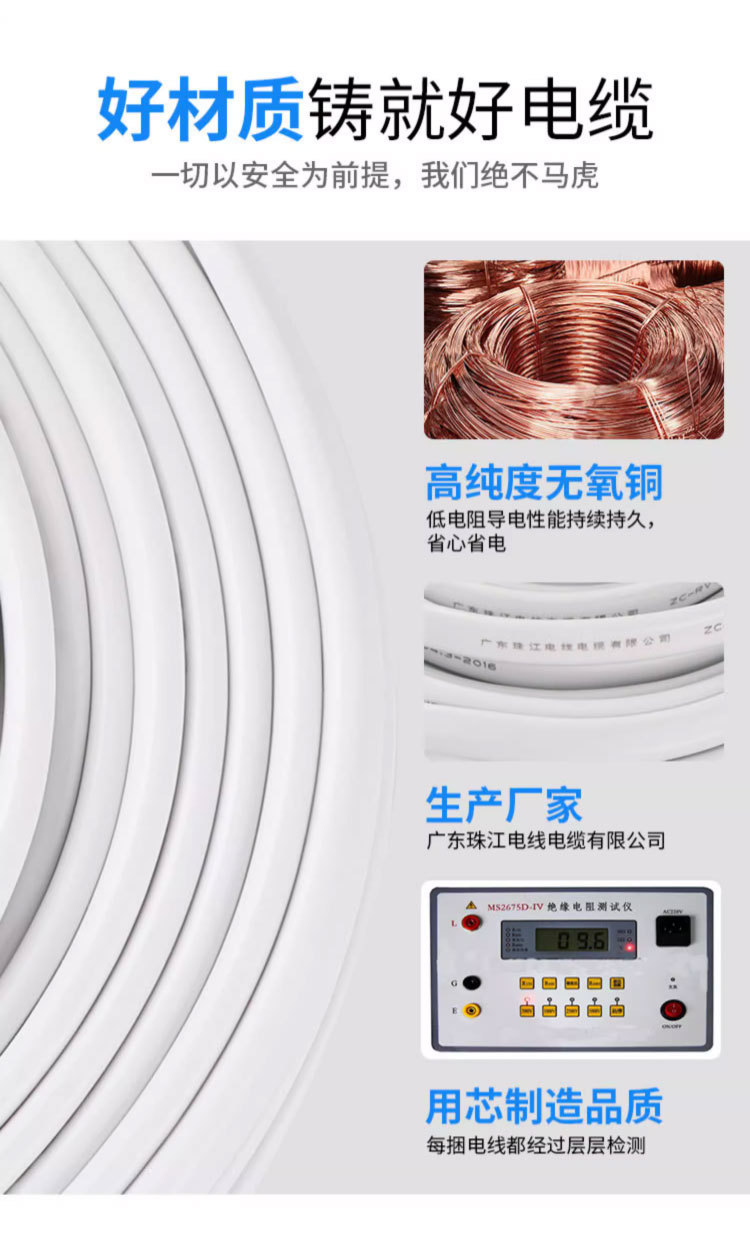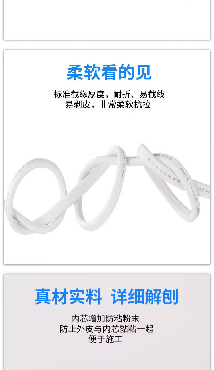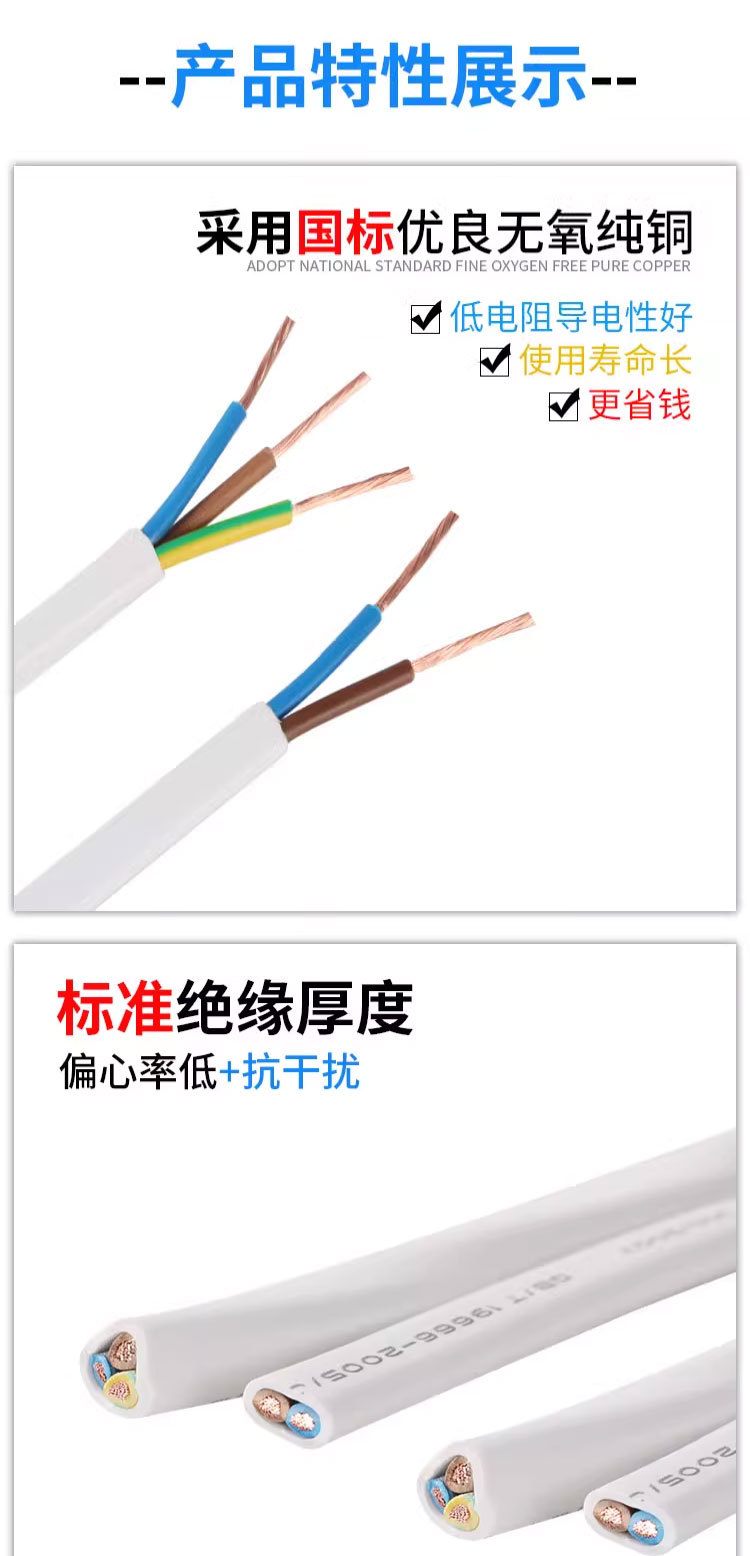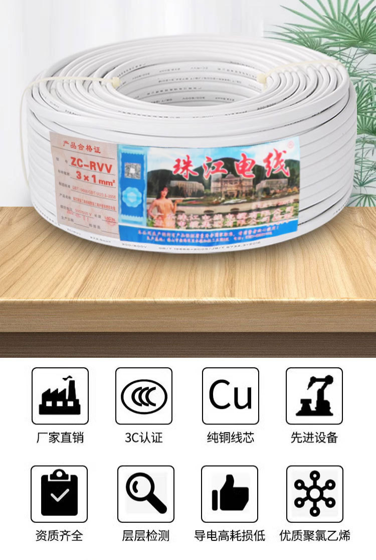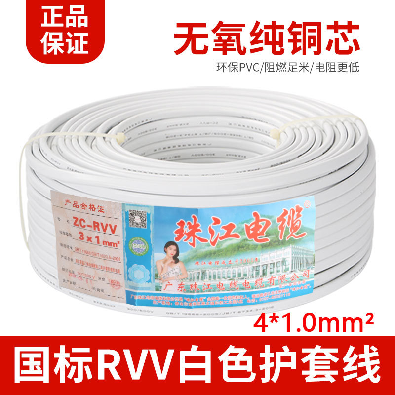 주강 케이블 국가 표준 순수 구리 RVV2 3 4 코어 0.75 1 1.5 2.5 4 사각형 흰색 시스 전원 코드스토어 가기