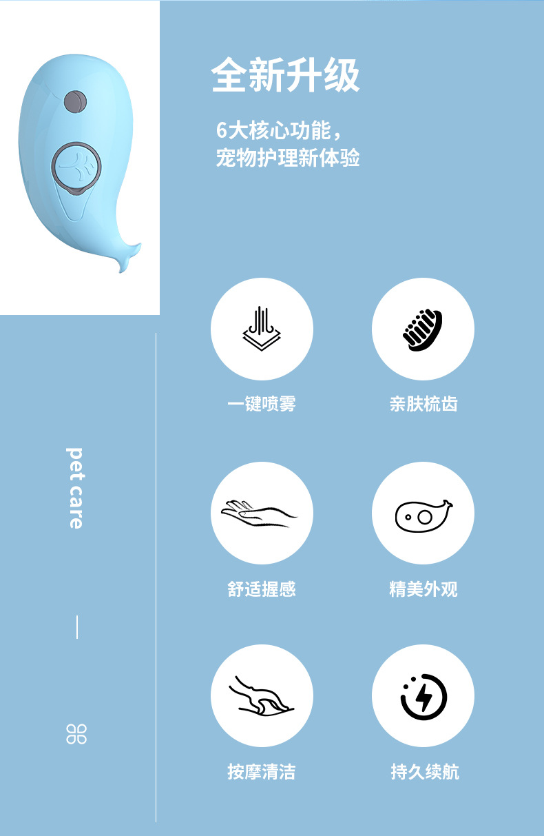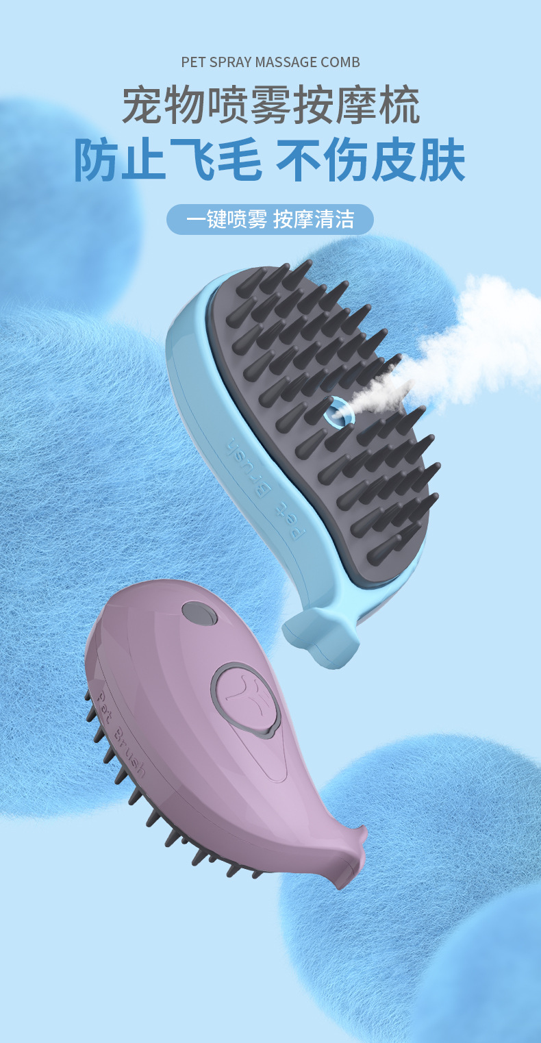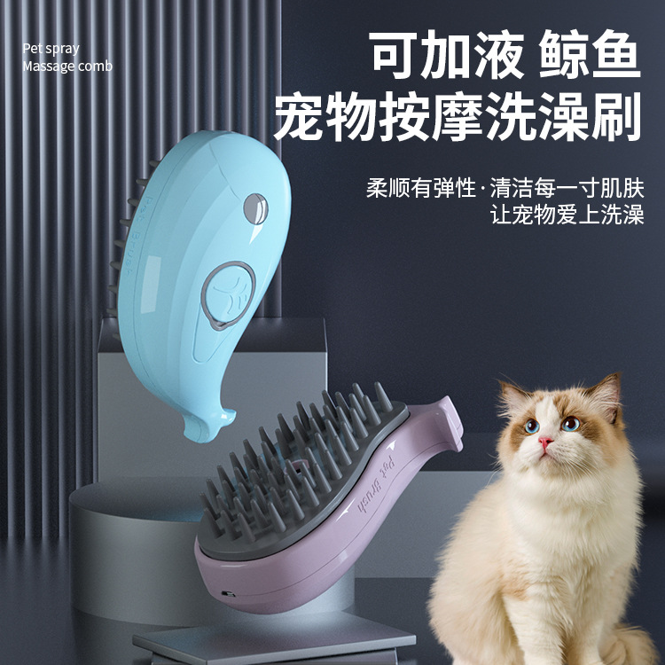고래 애완동물 스프레이 마사지 빗, 원터치 털날림 방지 빗, 목욕 브러쉬, 제모용품, 빗, 청소 및 털 제거스토어 가기