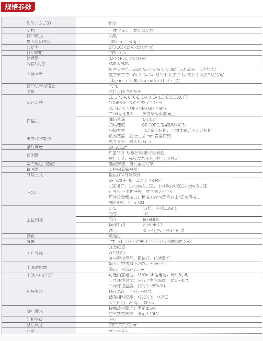 Hanyin HC-L380 안드로이드 스마트 터치 프린터 셀프 서비스 단말기 장치 식별 등록 인쇄