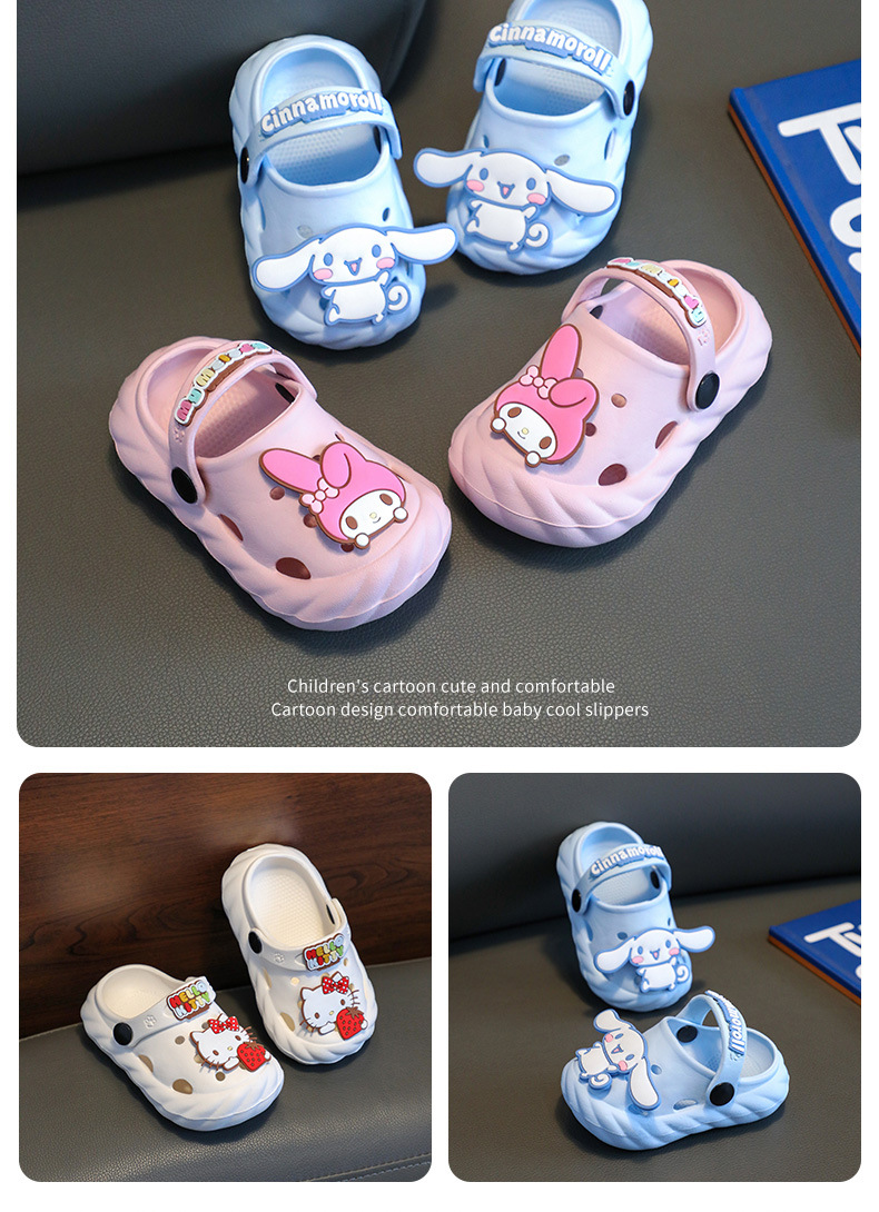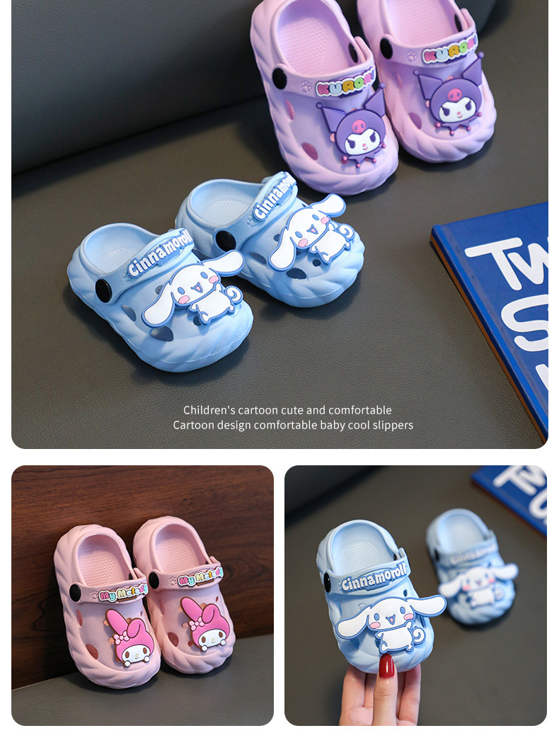 산리오 어린이 슬리퍼 여름 아기 구멍 신발 부드러운 바닥 소녀 귀여운 만화 목욕 유아 실내 집