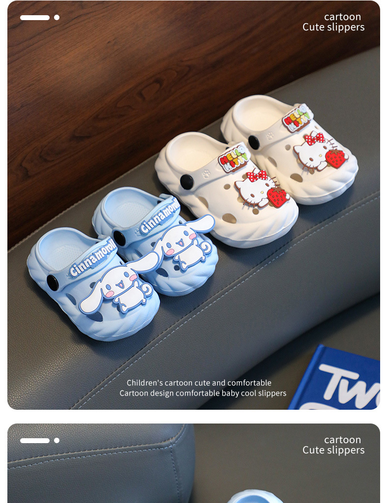 산리오 어린이 슬리퍼 여름 아기 구멍 신발 부드러운 바닥 소녀 귀여운 만화 목욕 유아 실내 집스토어 가기