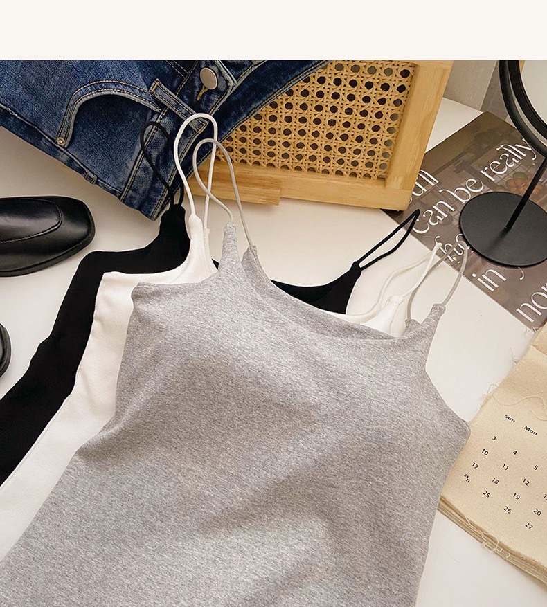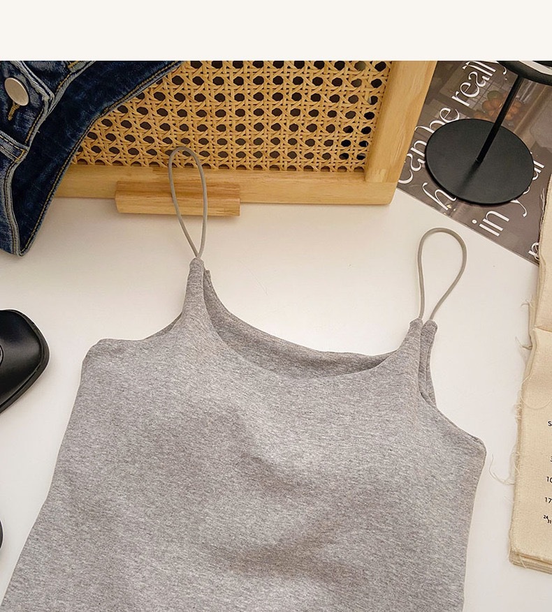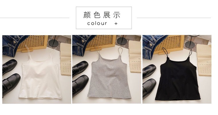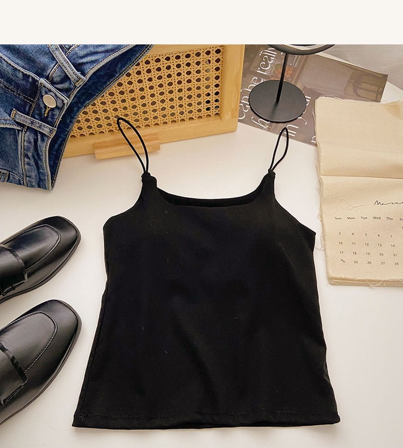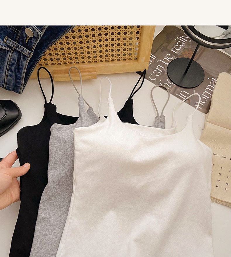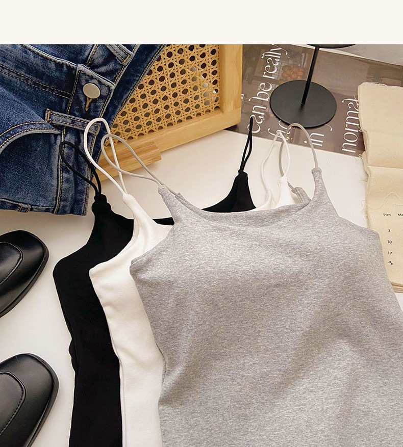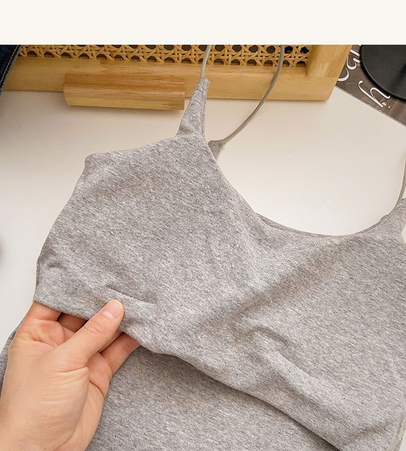 민소매 단색 한국 스타일의 무선 캐미솔 슬림 핏 간단한 가슴 패드 뷰티 백 바닥 겉옷 순수 탑스토어 가기